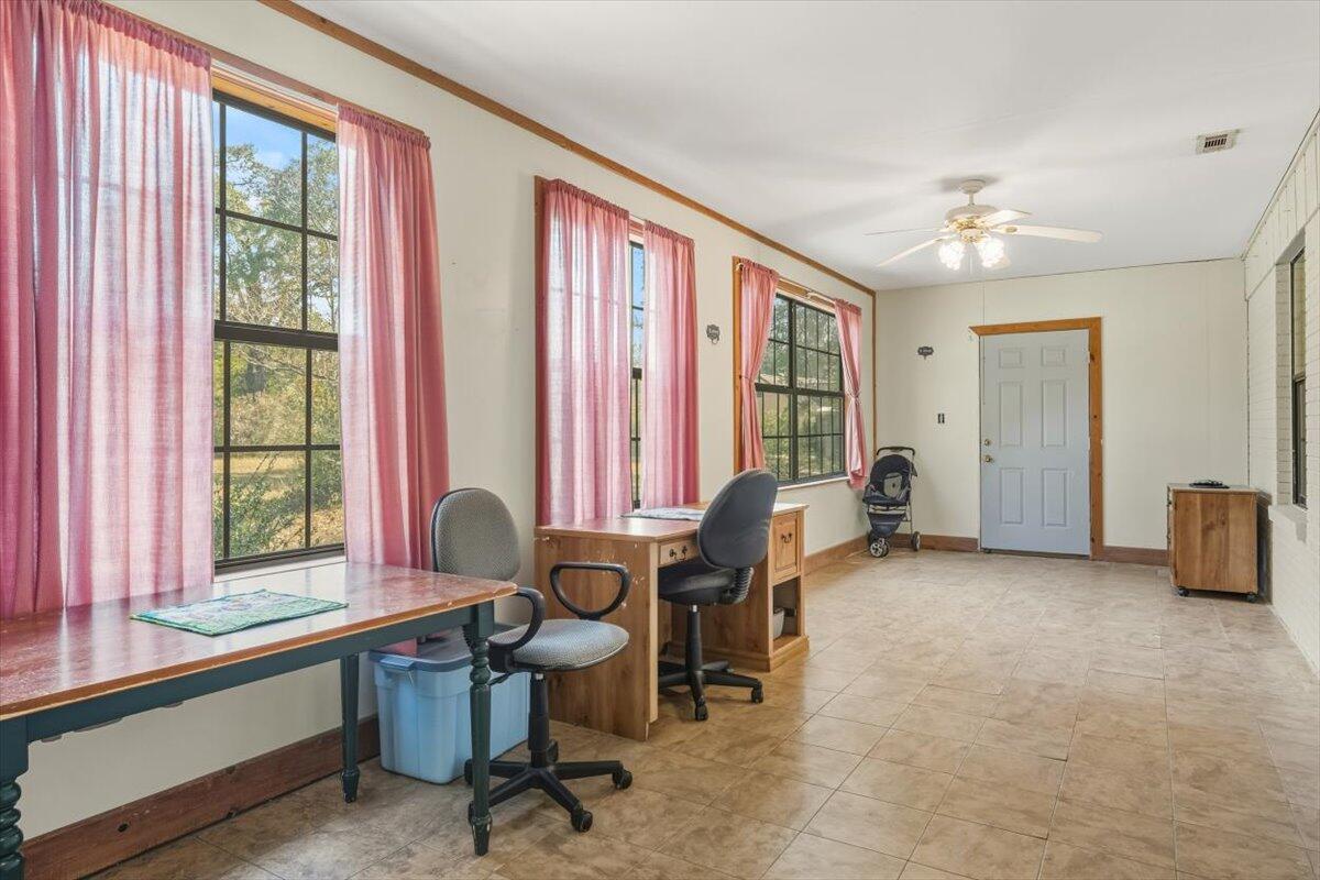 Peaceful country living on 3.33 wooded acres. Escape the city and discover your own private sanctuary among gorgeous, mature Oaks and Pines, this lovely 3bedroom 2bath country home offers the perfect blend of potential and tranquility. Situated on 150 feet of hwy frontage, this property provides ample room to breathe and grow. The home features spacious layout, enhanced in 2000 with the enclosure of the front porch, adding approx. 500 sq ft, of heated and cooled living space-perfect for a sunroom or family gathering spot. Outside the possibilities are endless and include a pole barn and 3 horse stable ready for restoration. Inside you will find a bonus room suitable for an office or easily converted into a 3rd bath (plumbed). This is your canvas to create your dream estate.