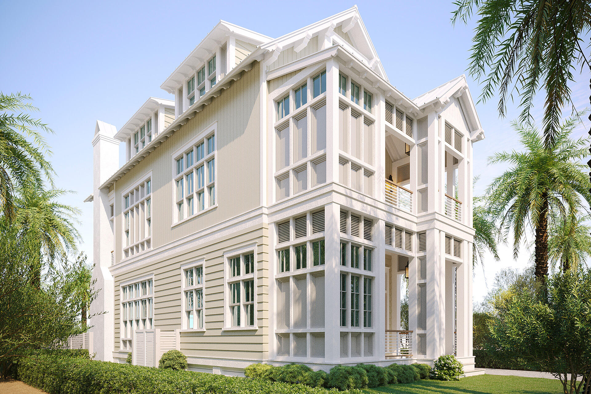 Introducing Lot 35, an exceptional new construction offering in the highly coveted Phase V of WaterColor. Set on a premier homesite along String Lily Cove, this custom residence delivers rare privacy while placing you moments from the WaterColor Beach Club, multiple resort-style pools, and the iconic sugar-white sands of 30A.Encompassing 4,000+ sq ft of refined living space, the three-story design features 4 bedrooms, 4 full baths, 2 half baths, a dramatic great room with exposed beams, and expansive indoor-outdoor living. A private infinity-edge pool with fire bowls, lower-level custom fire pit, and fully equipped outdoor kitchen with dining area create a true resort experience at home. Crafted by Borges Brooks Builders, the home showcases exceptional detail throughout. The second level hosts a luxurious primary suite with a spa-inspired bathroom, oversized walk-in closet, and private balcony overlooking the pool. This floor also includes an office and a covered walkover connecting to the carriage house suite with its own full bath. The third floor offers two additional guest suites, 2.5 baths, and a generous bonus living area. A private elevator services all levels for ultimate convenience. Exterior cedar siding elevates the home's timeless coastal aesthetic.