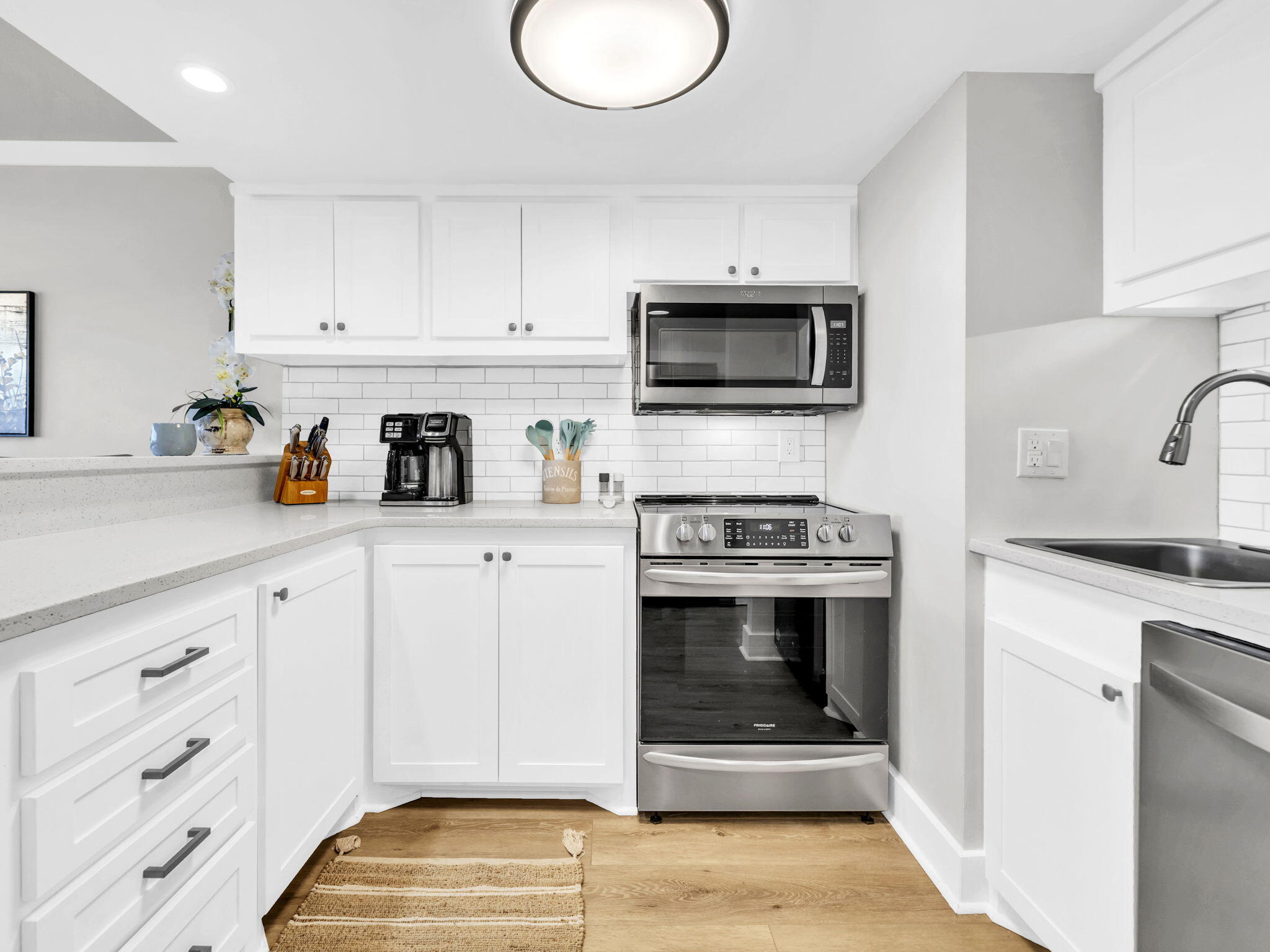 The main living area is bright and welcoming, opening out to a tiled balcony that offers unobstructed Gulf views along with a clear sightline to one of the community's pools. It's the perfect spot to relax, dine outdoors, or simply enjoy the coastal breeze. With its numerous upgrades, thoughtful layout, and stunning views from both levels, this fully renovated Pinnacle Port unit offers the ideal blend of comfort, style, and coastal living.