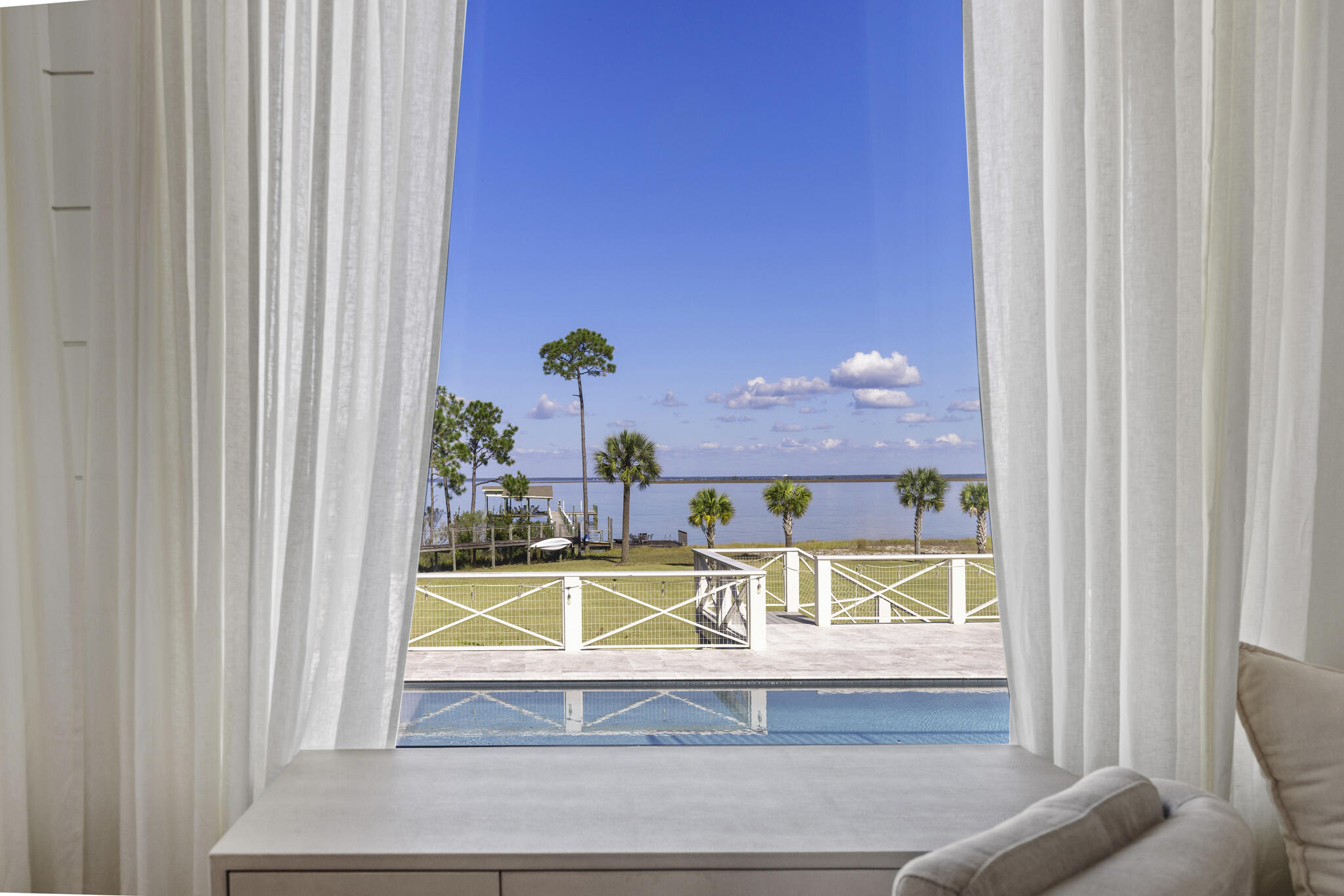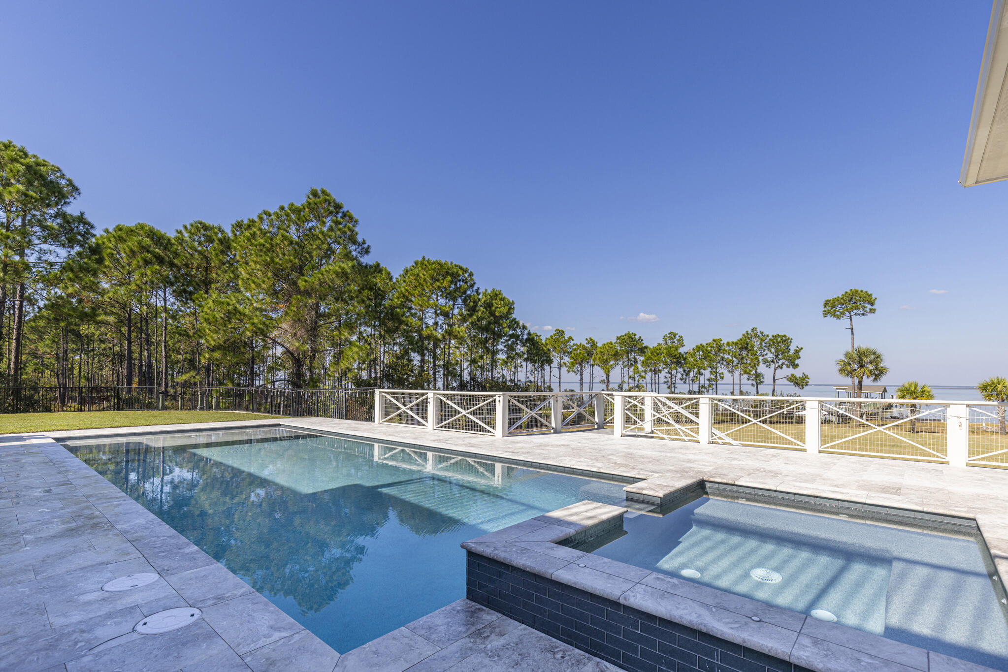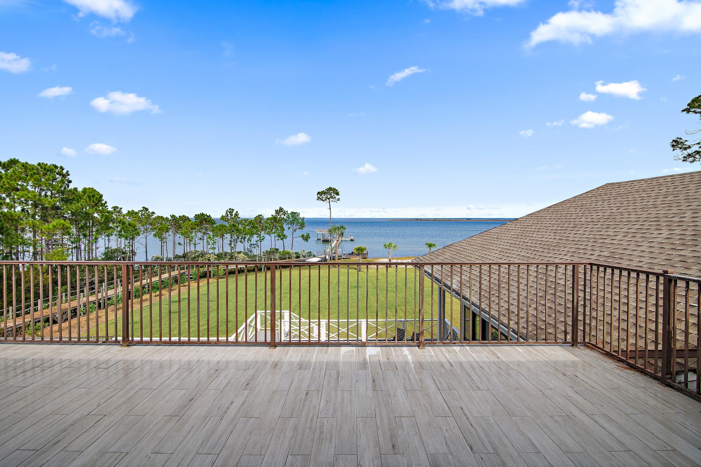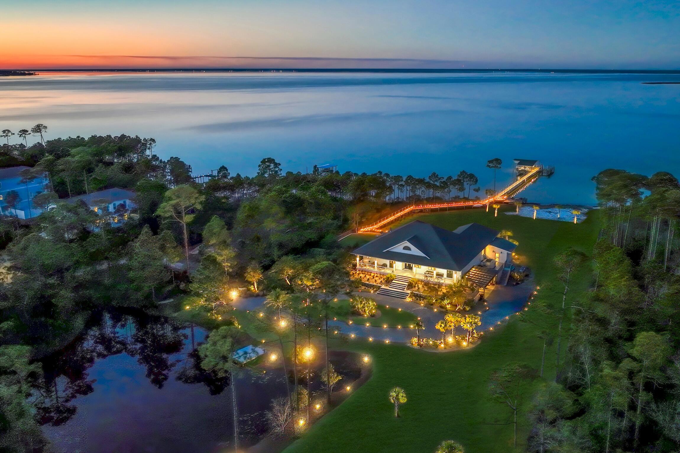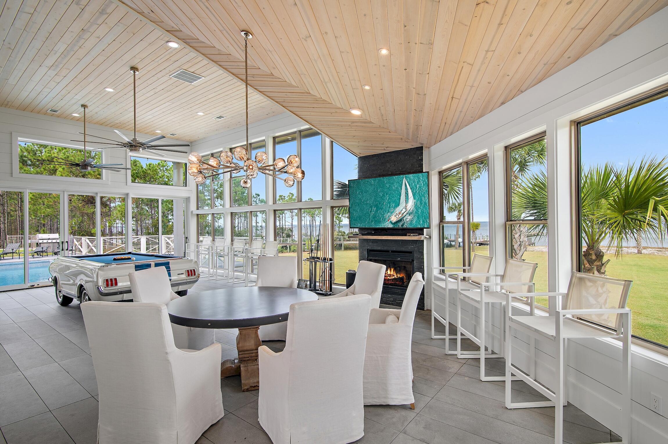 Rare Find! Incredible Estate on the Bay perched on 3.38 acres with 240 feet of Choctawhatchee Bay frontage, this fully renovated 6-bedroom estate offers over 5,700 sq. ft. of luxurious living space and unparalleled privacy. Outdoor living is a true highlight, featuring a brand-new heated pool, spa, and pool deck, plus a 250-foot dock with two boat slips, tropical landscaping, and even a stocked pond with bass and brim for fishing and relaxation. Enjoy complete seclusion with this gated home surrounded by nature while still being just one light away from Scenic 30A and Gulf-front Topsail State Park. The home's Florida room is an enclosed entertainment haven with raised wood ceilings, glass surrounds with panoramic views, added pool bath and seamless access to the new pool deck. Inside, thoughtful renovations and elegant finishes abound. The main level features solid wood cabinets, new porcelain tile floors, shiplap, 10' ceilings, and stone accents. Glass sliders and large Pella windows bring the serene outdoors inside. A chef's kitchen with state-of-the-art Viking appliances, Quartz countertops, wet bar, prep kitchen, and temperature-controlled wine room (holds ~1,200 bottles) is ideal for entertaining. A formal dining area overlooks the Bay with sliders to the Florida room, while a spacious living room features a modern electric fireplace paired with abundant natural light, picturesque views and cozy atmosphere. The first-floor master suite is a coastal retreat, boasting shiplap accents, a sitting area, private lanai with an electric fireplace, two walk-in closets, and a spa-like bath with a clawfoot tub, walk-in shower with four shower heads, and herringbone tile floors. The east side 1st floor bedroom provides a second master essentially with a separate French door entry to the front patio. This room is large enough for two queen beds and offers a beautiful ensuite bath. There is an additional room by the entry with double doors and wood walls that is an ideal office or can be a true bedroom with a bathroom right across. The oak staircase, highlighted by an elegant chandelier, leads upstairs to three additional bedrooms, each with an ensuite bathroom. Two of the bedrooms are Bayfront, each opening onto a spacious balcony with breathtaking views. Ample storage, two laundry areas, and a two-car garage complete the home.