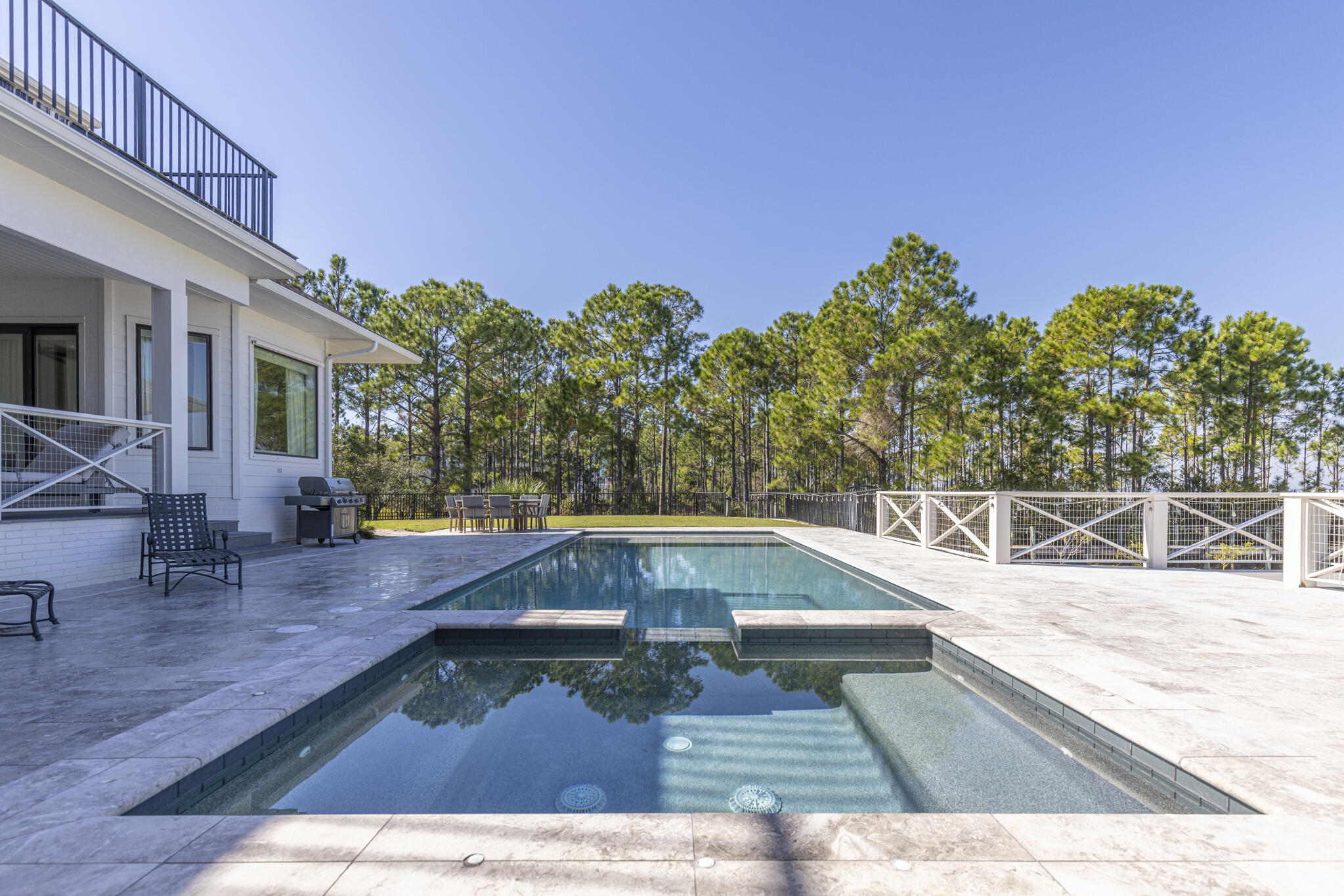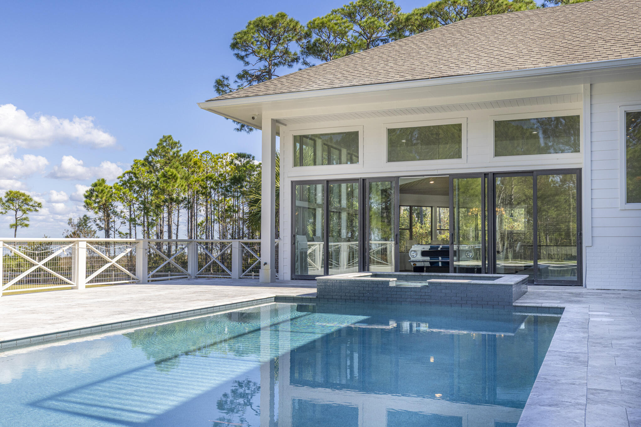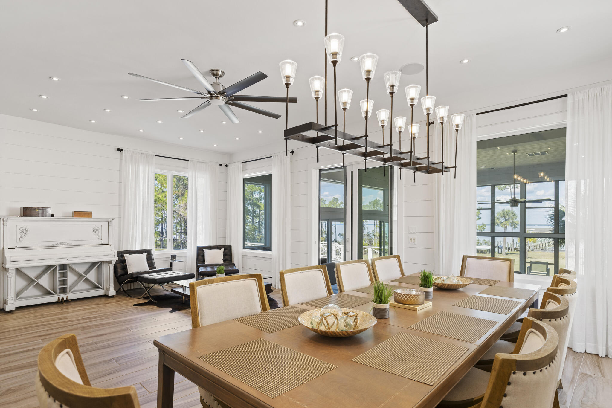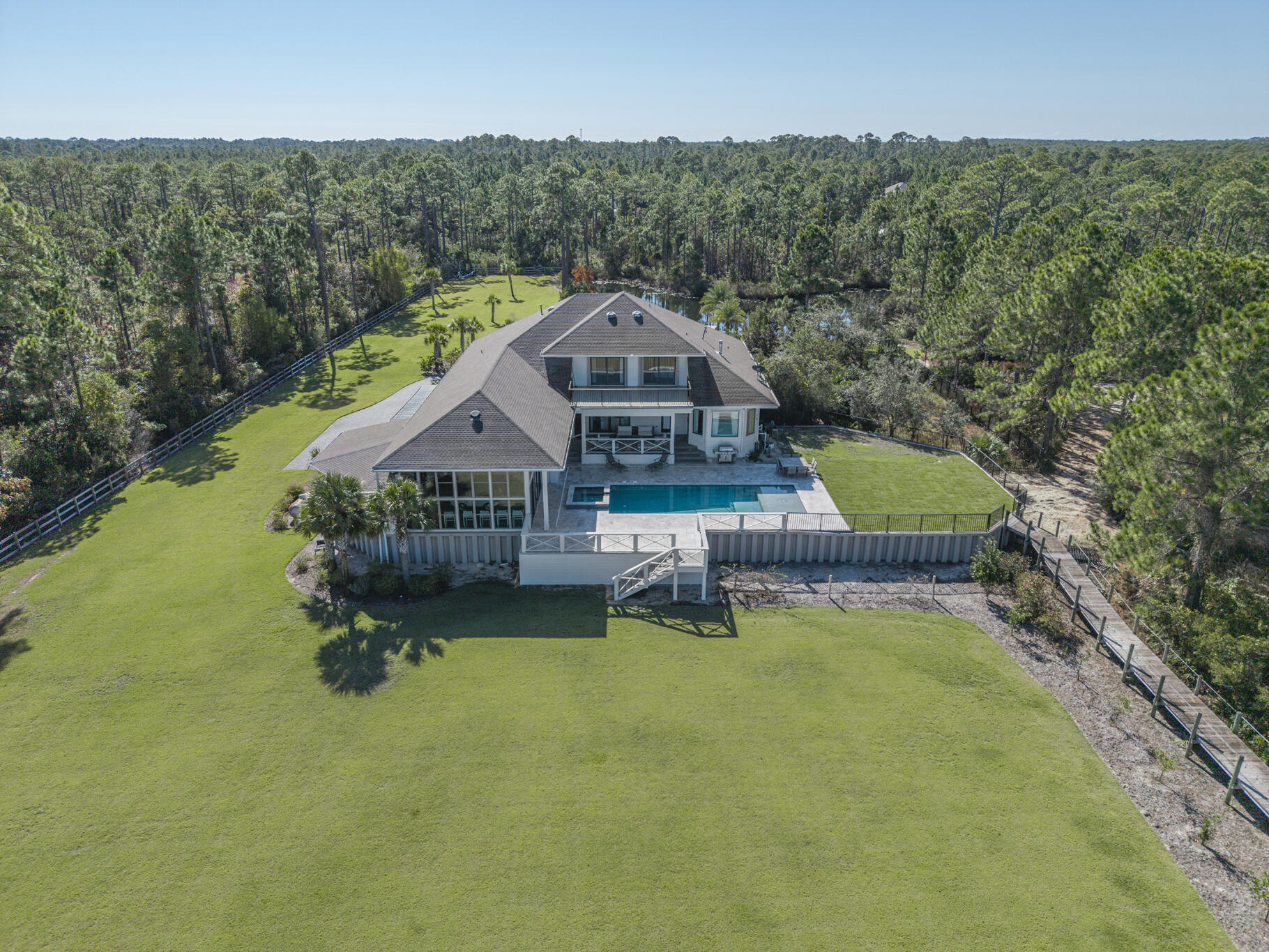 Rare Find! Incredible Estate on the Bay perched on 3.38 acres with 240 feet of Choctawhatchee Bay frontage, this fully renovated 6-bedroom estate offers over 5,700 sq. ft. of luxurious living space and unparalleled privacy. Outdoor living is a true highlight, featuring a brand-new heated pool, spa, and pool deck, plus a 250-foot dock with two boat slips, tropical landscaping, and even a stocked pond with bass and brim for fishing and relaxation. Enjoy complete seclusion with this gated home surrounded by nature while still being just one light away from Scenic 30A and Gulf-front Topsail State Park. The home's Florida room is an enclosed entertainment haven with raised wood ceilings, glass surrounds with panoramic views, added pool bath and seamless access to the new pool deck. Inside, thoughtful renovations and elegant finishes abound. The main level features solid wood cabinets, new porcelain tile floors, shiplap, 10' ceilings, and stone accents. Glass sliders and large Pella windows bring the serene outdoors inside. A chef's kitchen with state-of-the-art Viking appliances, Quartz countertops, wet bar, prep kitchen, and temperature-controlled wine room (holds ~1,200 bottles) is ideal for entertaining. A formal dining area overlooks the Bay with sliders to the Florida room, while a spacious living room features a modern electric fireplace paired with abundant natural light, picturesque views and cozy atmosphere. The first-floor master suite is a coastal retreat, boasting shiplap accents, a sitting area, private lanai with an electric fireplace, two walk-in closets, and a spa-like bath with a clawfoot tub, walk-in shower with four shower heads, and herringbone tile floors. The east side 1st floor bedroom provides a second master essentially with a separate French door entry to the front patio. This room is large enough for two queen beds and offers a beautiful ensuite bath. There is an additional room by the entry with double doors and wood walls that is an ideal office or can be a true bedroom with a bathroom right across. The oak staircase, highlighted by an elegant chandelier, leads upstairs to three additional bedrooms, each with an ensuite bathroom. Two of the bedrooms are Bayfront, each opening onto a spacious balcony with breathtaking views. Ample storage, two laundry areas, and a two-car garage complete the home.