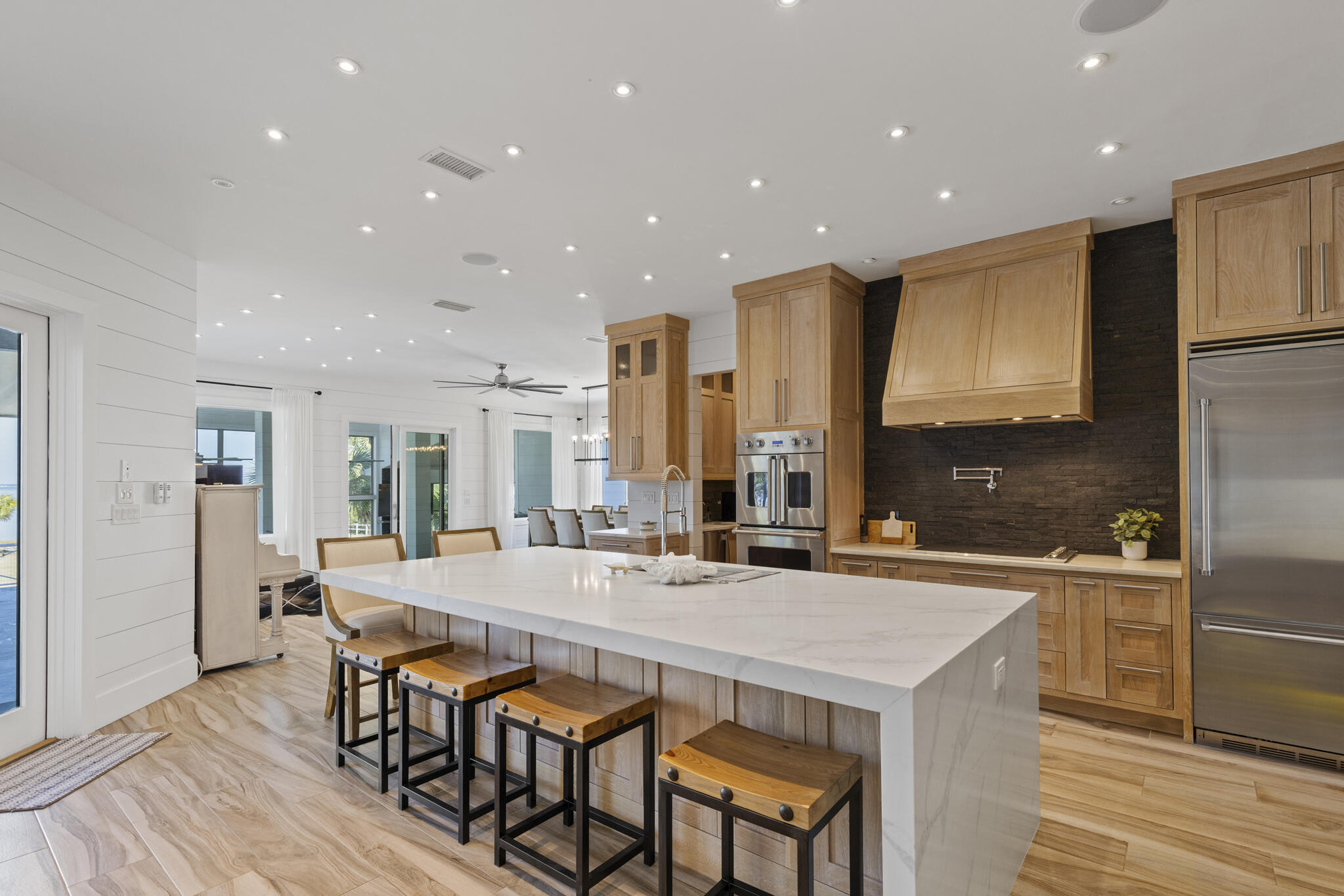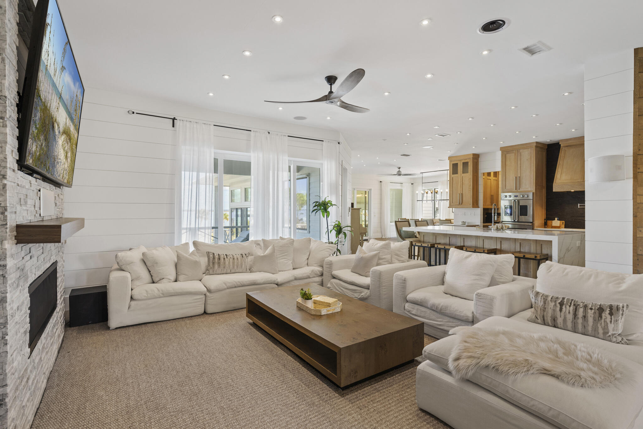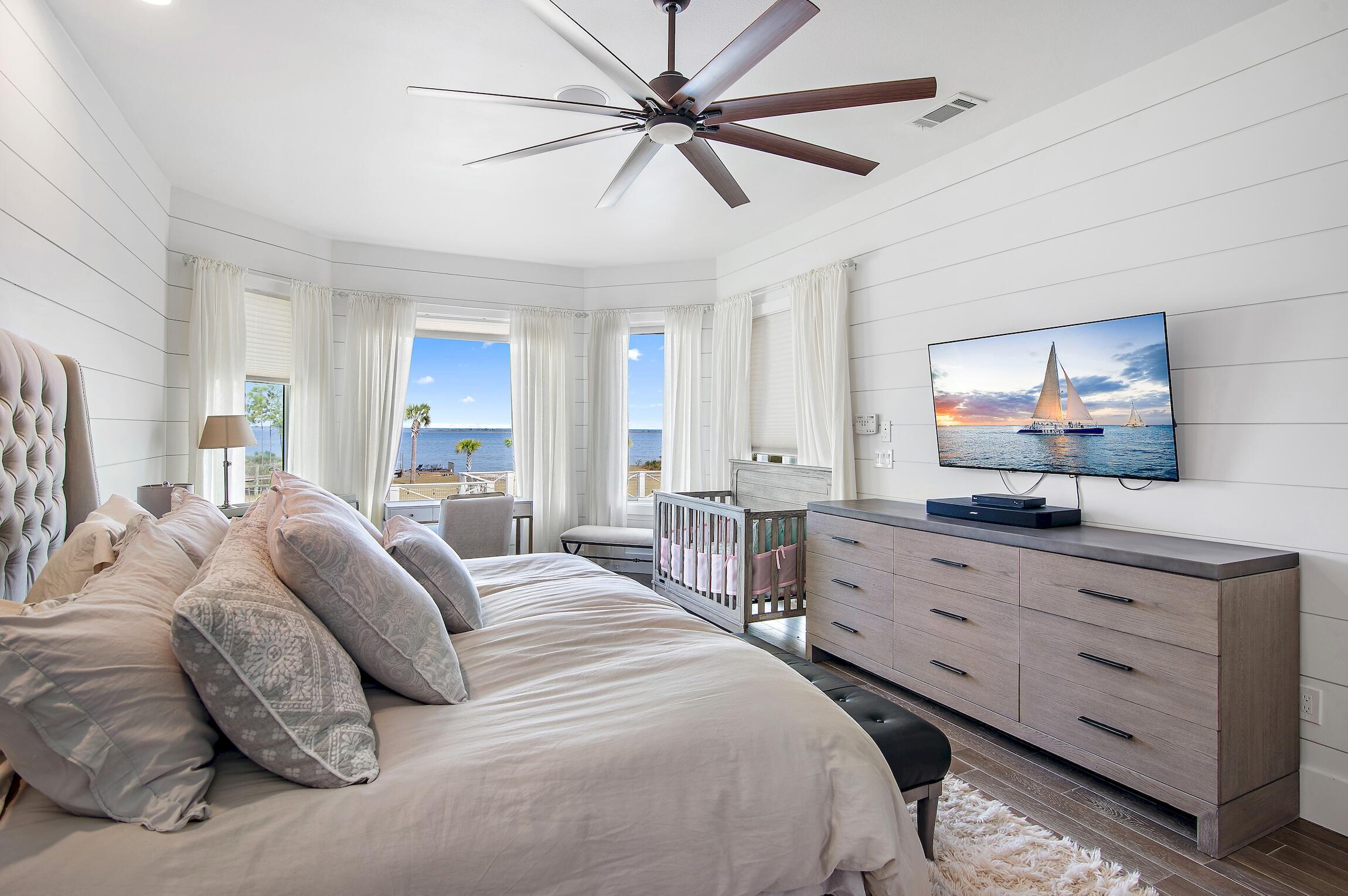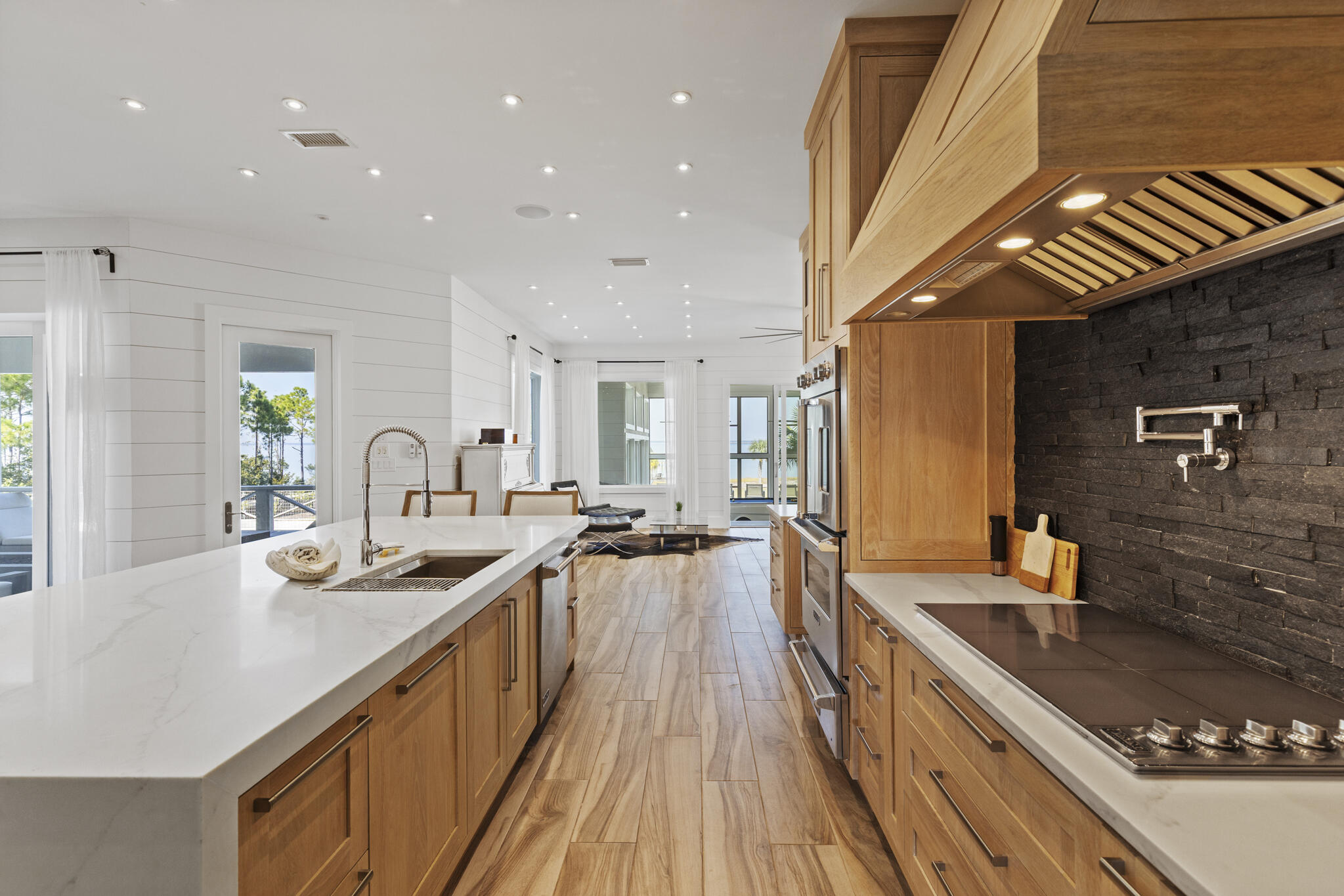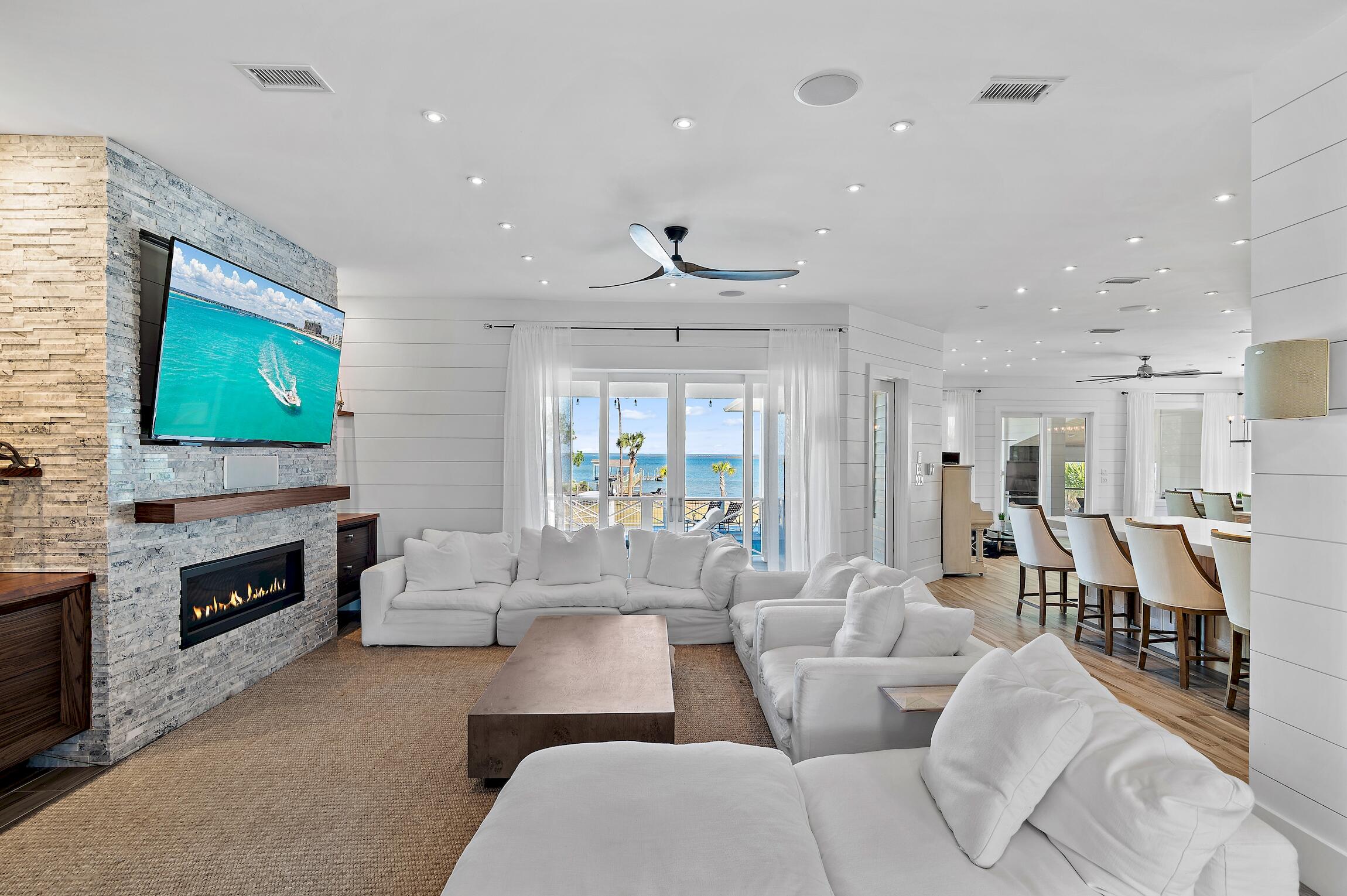 Rare Find! Incredible Estate on the Bay perched on 3.38 acres with 240 feet of Choctawhatchee Bay frontage, this fully renovated 6-bedroom estate offers over 5,700 sq. ft. of luxurious living space and unparalleled privacy. Outdoor living is a true highlight, featuring a brand-new heated pool, spa, and pool deck, plus a 250-foot dock with two boat slips, tropical landscaping, and even a stocked pond with bass and brim for fishing and relaxation. Enjoy complete seclusion with this gated home surrounded by nature while still being just one light away from Scenic 30A and Gulf-front Topsail State Park. The home's Florida room is an enclosed entertainment haven with raised wood ceilings, glass surrounds with panoramic views, added pool bath and seamless access to the new pool deck. Inside, thoughtful renovations and elegant finishes abound. The main level features solid wood cabinets, new porcelain tile floors, shiplap, 10' ceilings, and stone accents. Glass sliders and large Pella windows bring the serene outdoors inside. A chef's kitchen with state-of-the-art Viking appliances, Quartz countertops, wet bar, prep kitchen, and temperature-controlled wine room (holds ~1,200 bottles) is ideal for entertaining. A formal dining area overlooks the Bay with sliders to the Florida room, while a spacious living room features a modern electric fireplace paired with abundant natural light, picturesque views and cozy atmosphere. The first-floor master suite is a coastal retreat, boasting shiplap accents, a sitting area, private lanai with an electric fireplace, two walk-in closets, and a spa-like bath with a clawfoot tub, walk-in shower with four shower heads, and herringbone tile floors. The east side 1st floor bedroom provides a second master essentially with a separate French door entry to the front patio. This room is large enough for two queen beds and offers a beautiful ensuite bath. There is an additional room by the entry with double doors and wood walls that is an ideal office or can be a true bedroom with a bathroom right across. The oak staircase, highlighted by an elegant chandelier, leads upstairs to three additional bedrooms, each with an ensuite bathroom. Two of the bedrooms are Bayfront, each opening onto a spacious balcony with breathtaking views. Ample storage, two laundry areas, and a two-car garage complete the home.