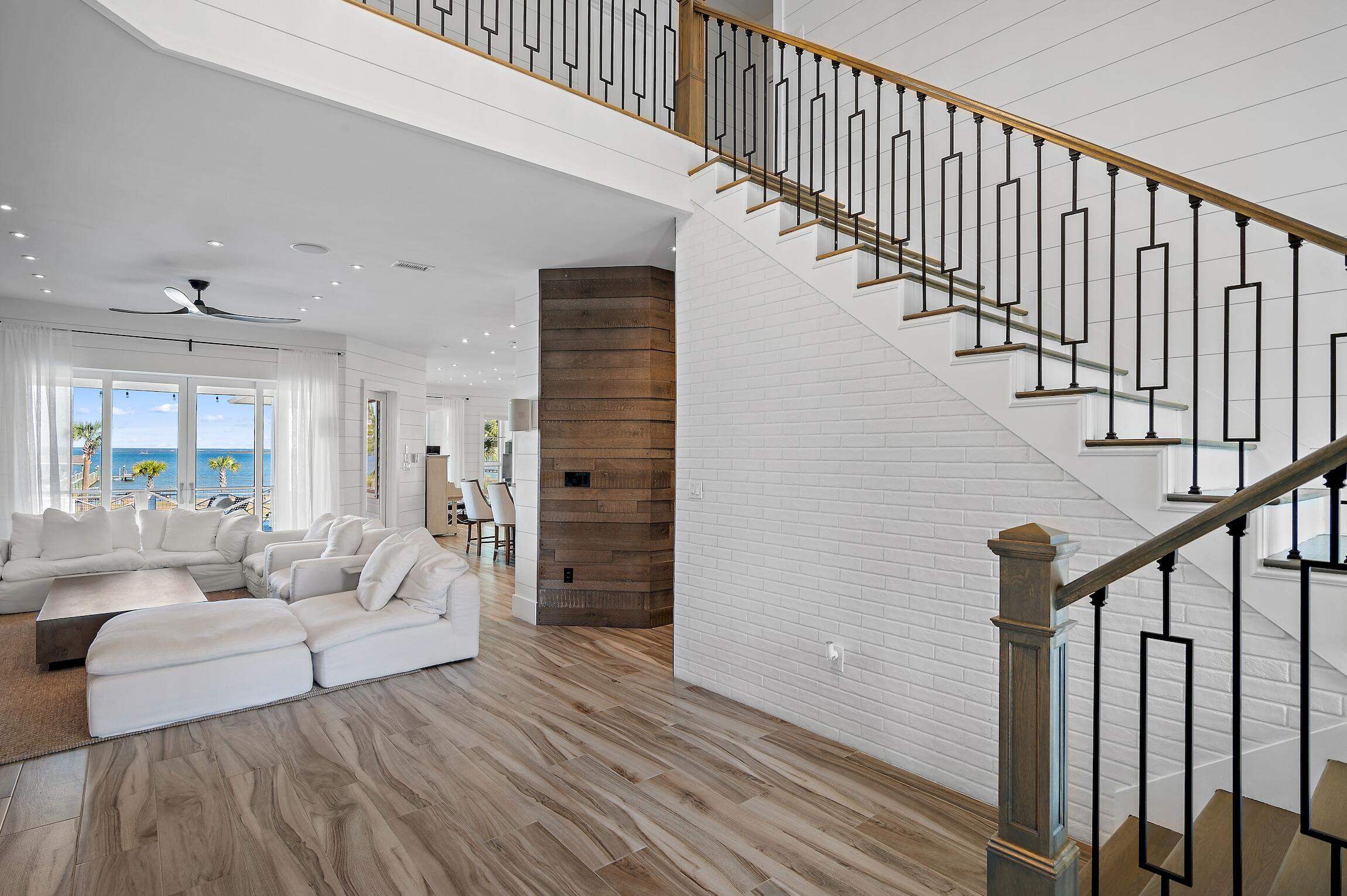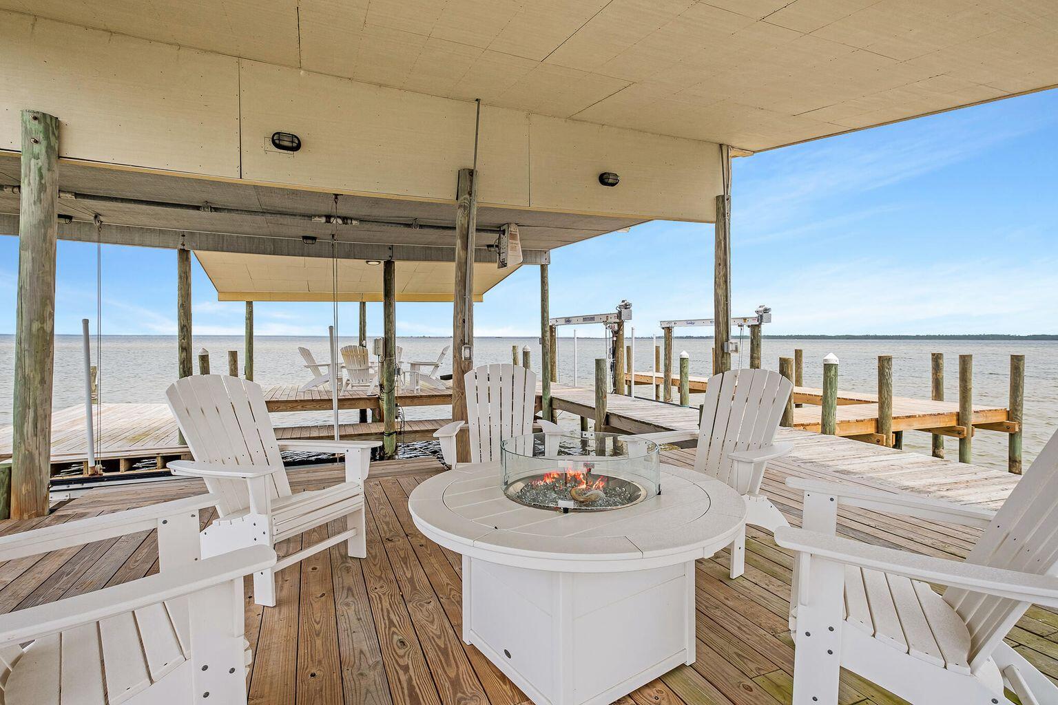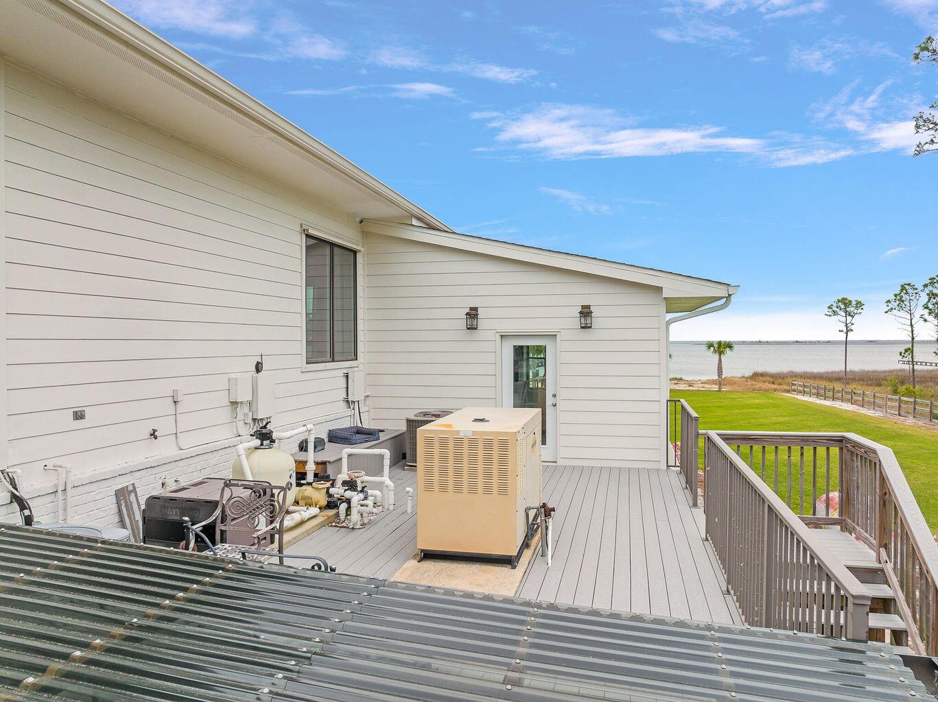 This home is uniquely perched on a high elevation with a marine grade seawall below the home surrounding the entire property for added protection. Additional features include hurricane protection, two new HVAC systems, a whole-house generator, zoned irrigation, two new commercial tankless hot water heaters, an alarm system, surround sound, new exterior lighting, expansive backyard, and new deck boards for the 250-foot boardwalk and dock. With no HOA, this is a truly one-of-a-kind private oasis offering ideal coastal living.
