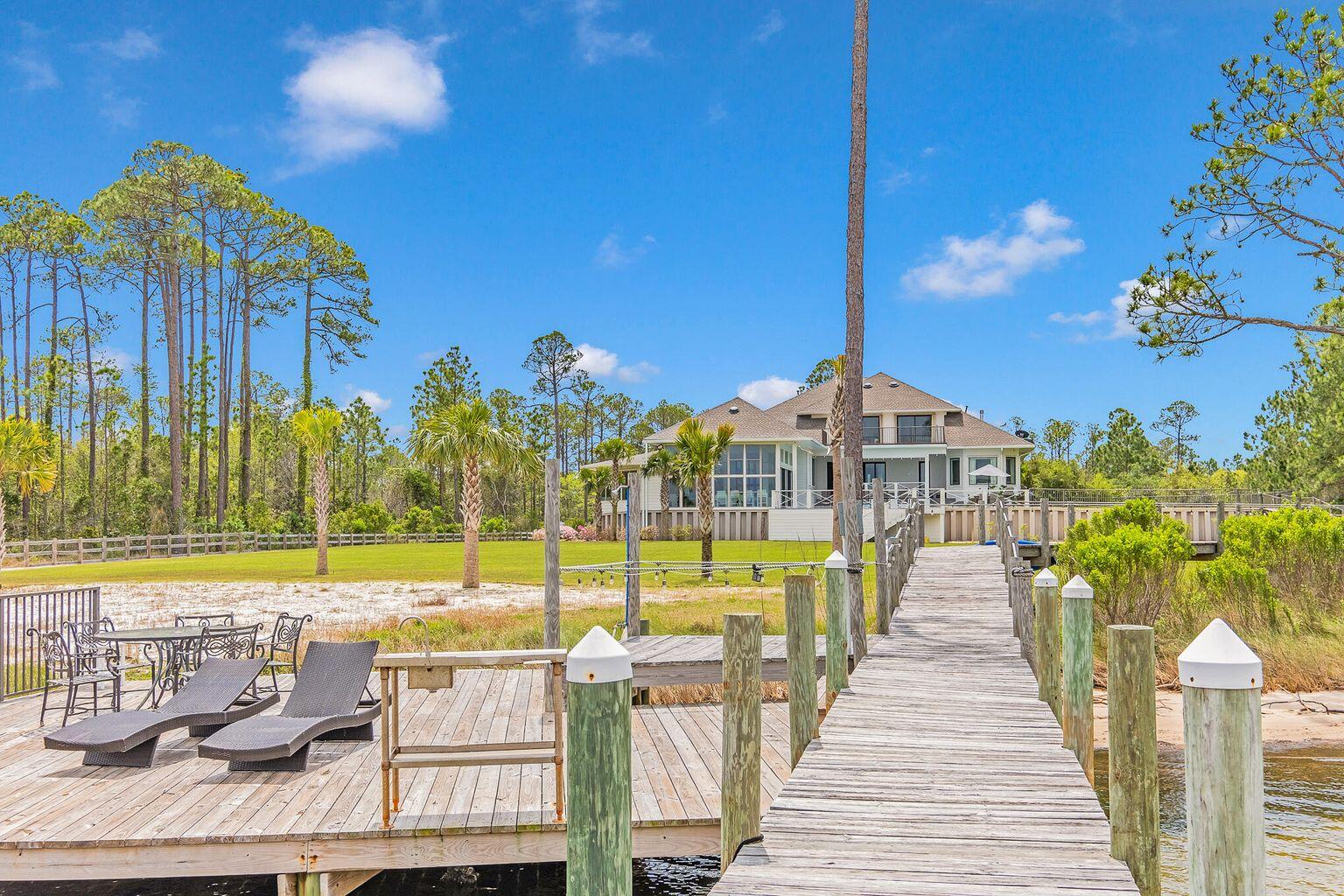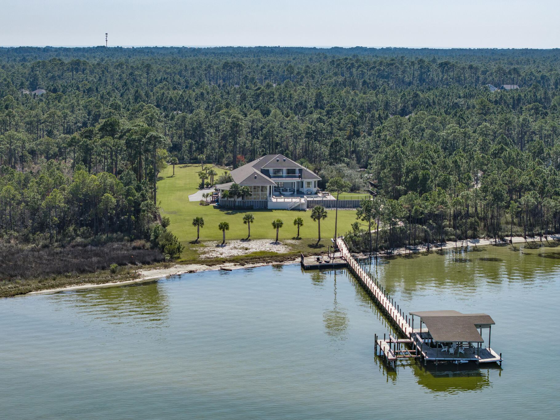 From Hwy 98, head North on East Hewitt Rd. Travel 1 mile then take a right on Alderberry Rd and continue straight onto Eagle Haven Dr to the bay, then turn right on Kali Lane down a short gravel road and it will dead end into the property, call for gate codes.