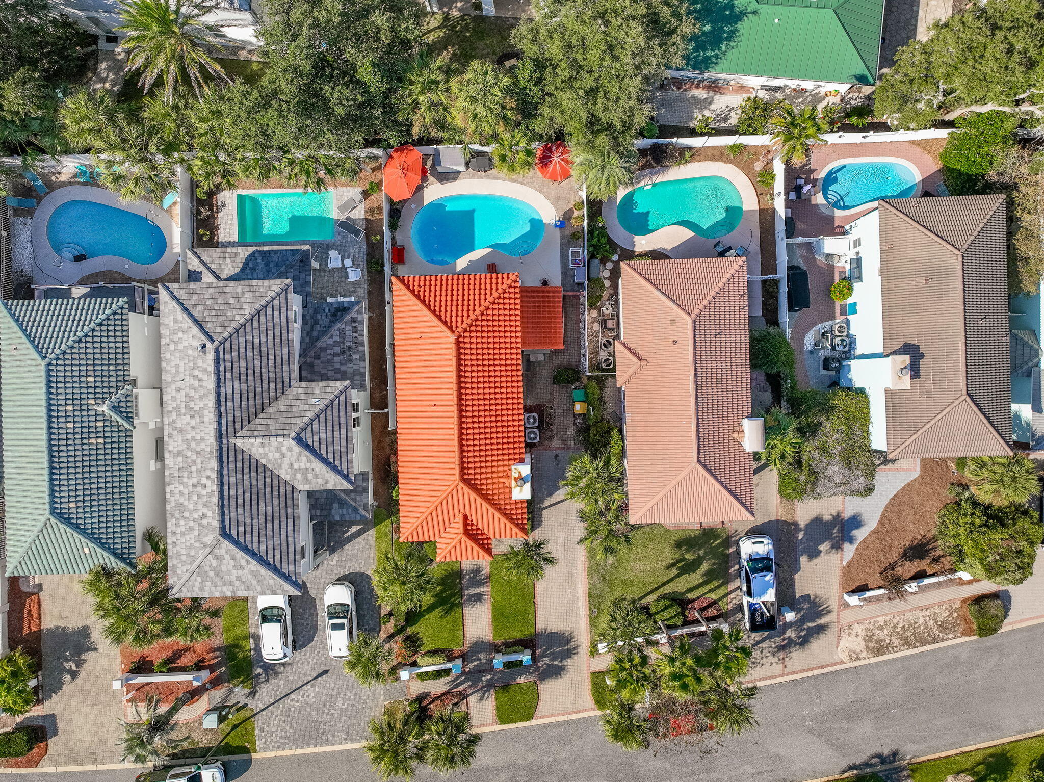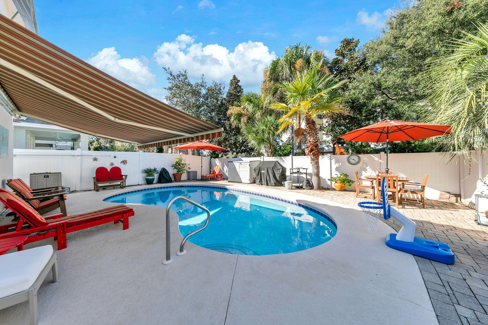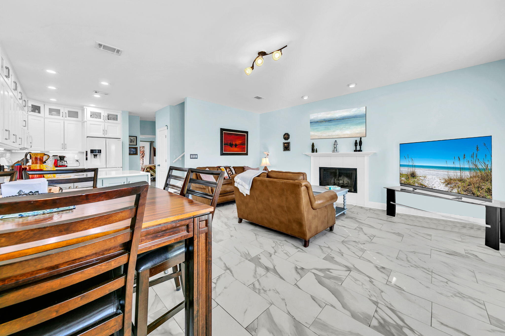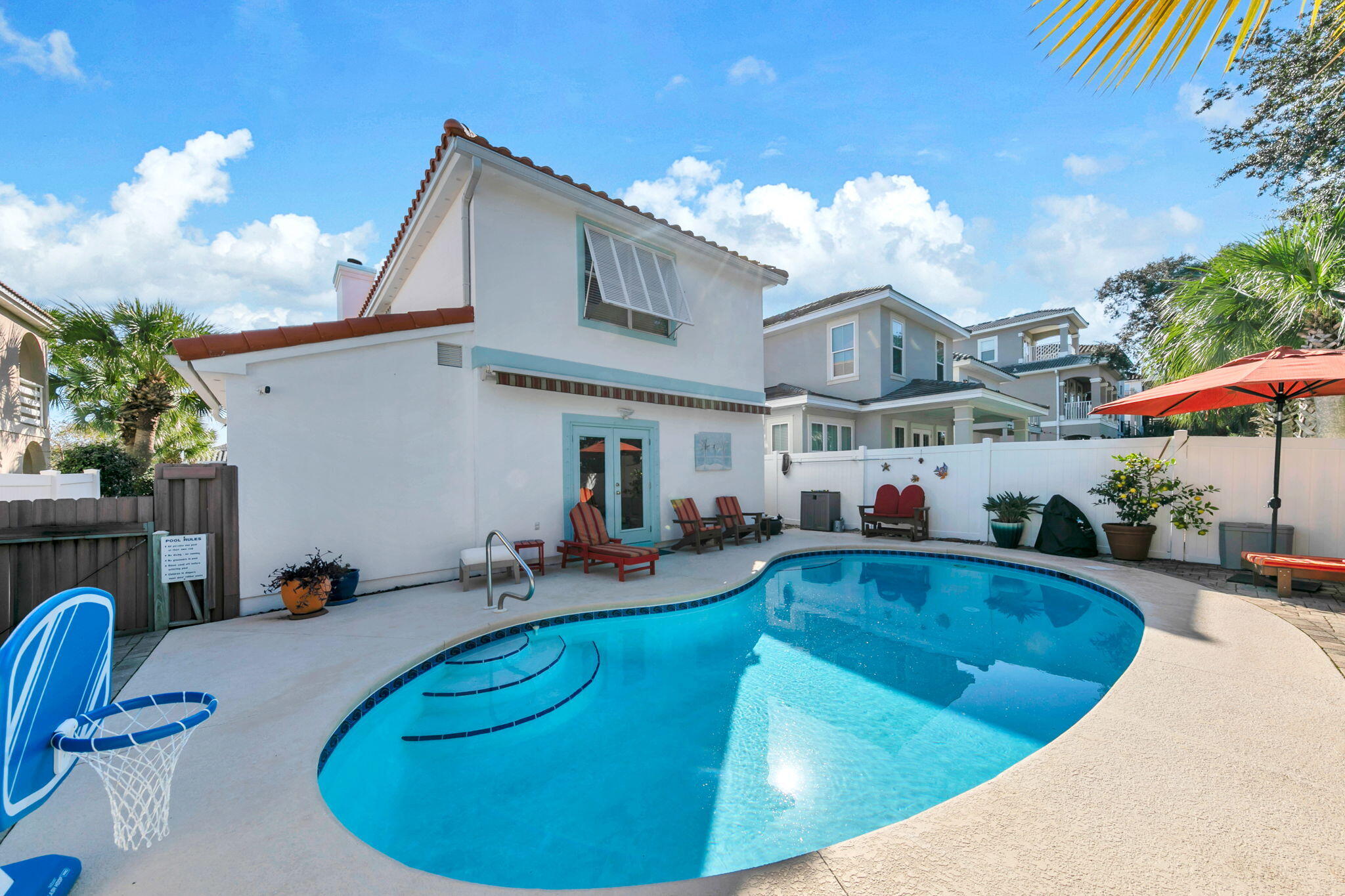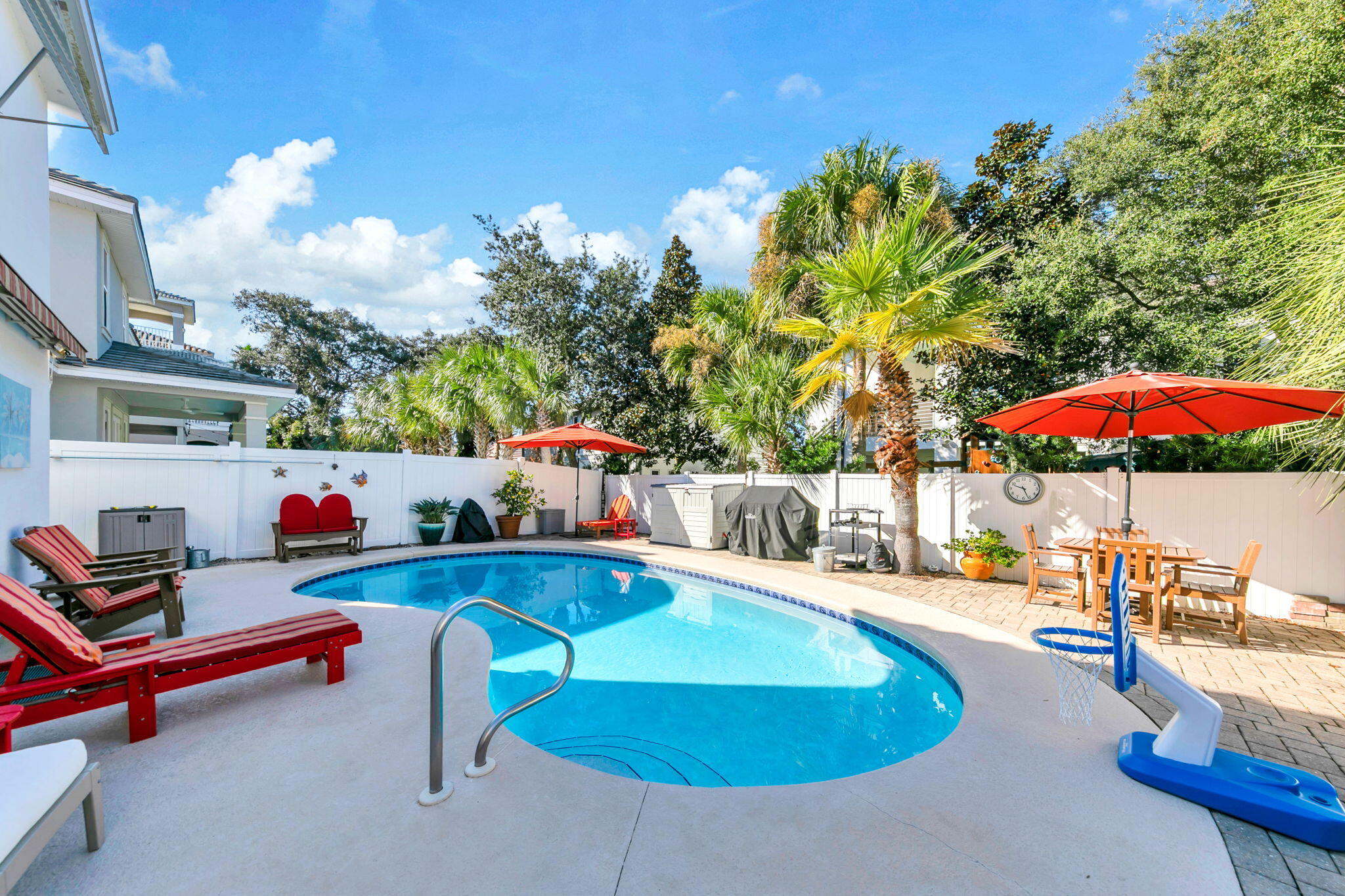 A Luxuriously Remodeled Beach Retreat Featuring a Private Heated Saltwater Pool and Exclusive Beach Access awaits! 78 Terra Cotta Way, an exquisitely reimagined 3-bedroom + office/bunk room, 3-bath luxury beach home featuring a private heated saltwater pool and exclusive deeded, gated beach access, perfectly situated in the prestigious Terra Cotta Terrace community. This remodeled coastal haven welcomes you with a new roof, tropical landscaping, a brick paver driveway, a charming covered front porch, fresh 2021 exterior paint with completed stucco inspection, and additional outdoor storage added to the exterior of the home. Inside, the open-concept layout is elevated by Calacatta Gold tile flooring, crisp white trim, an elegant real wood-burning fireplace, and designer finishes throughout The totally remodeled chef's kitchen showcases breathtaking Misterio Vico Subra quartz waterfall countertops, Storybook greige lower cabinetry, Charlotte Beach upper cabinetry, champagne hardware, a gas range with double oven, and a stunning glass subway tile backsplash, all hand-crafted to create a luxurious statement for your friends, family and vacationing guests. The spacious bedrooms and spa-like bathrooms offer comfort and serenity, while the flexible office/bunk room provides the perfect space for guests/bunk room or remote work. The second-floor master suite invites you onto a serene private balcony facing east, where each morning greets you with Destin's breathtaking sunrise - an intimate moment that we all need. The first-floor primary suite provides effortless luxury as well, offering elegant French-door access to the sparkling pool. Outside, the pool area features a remarkable motorized shade system that extends from the home to cover the water, creating a blissfully cool retreat during the warm summer months.