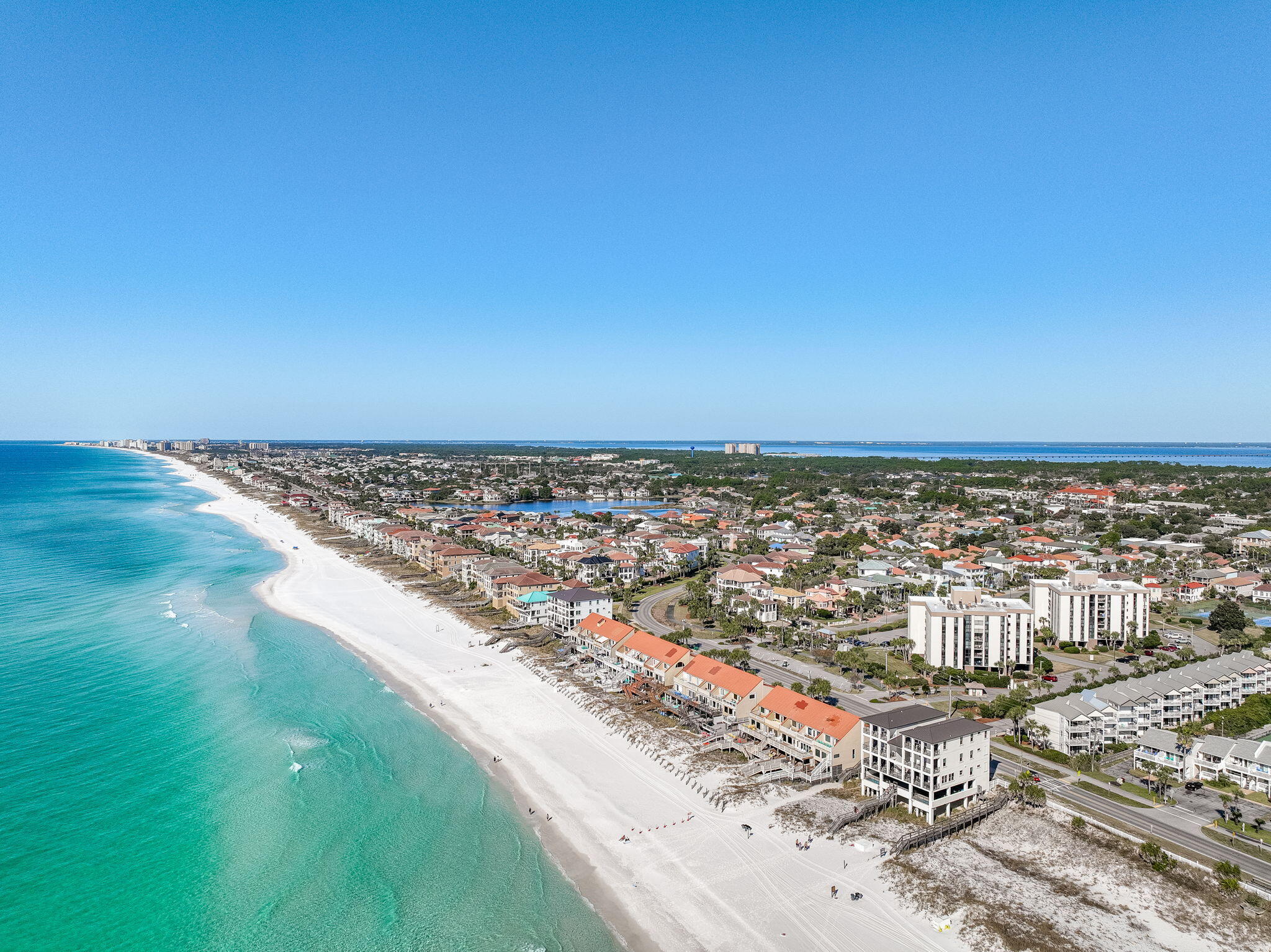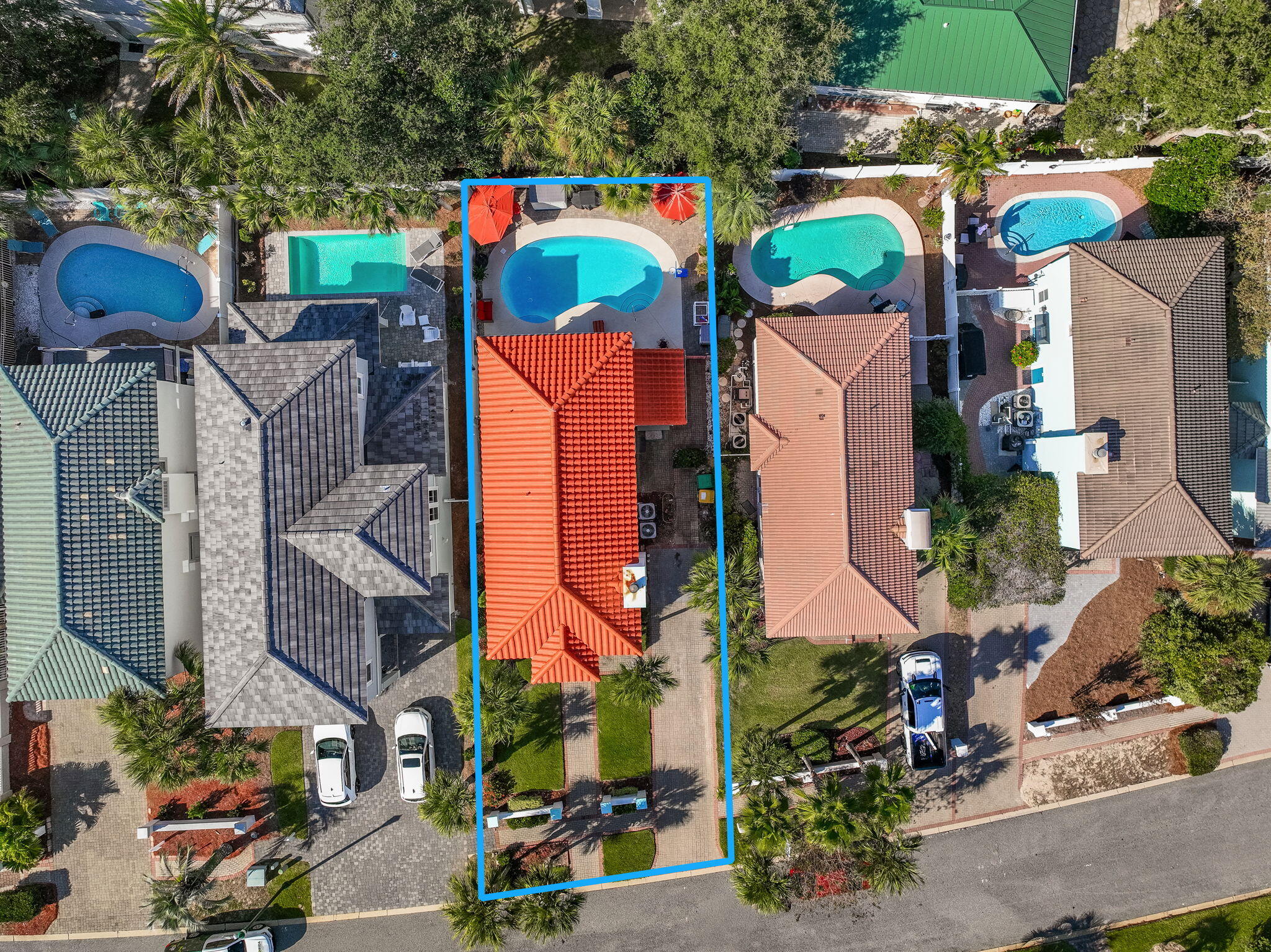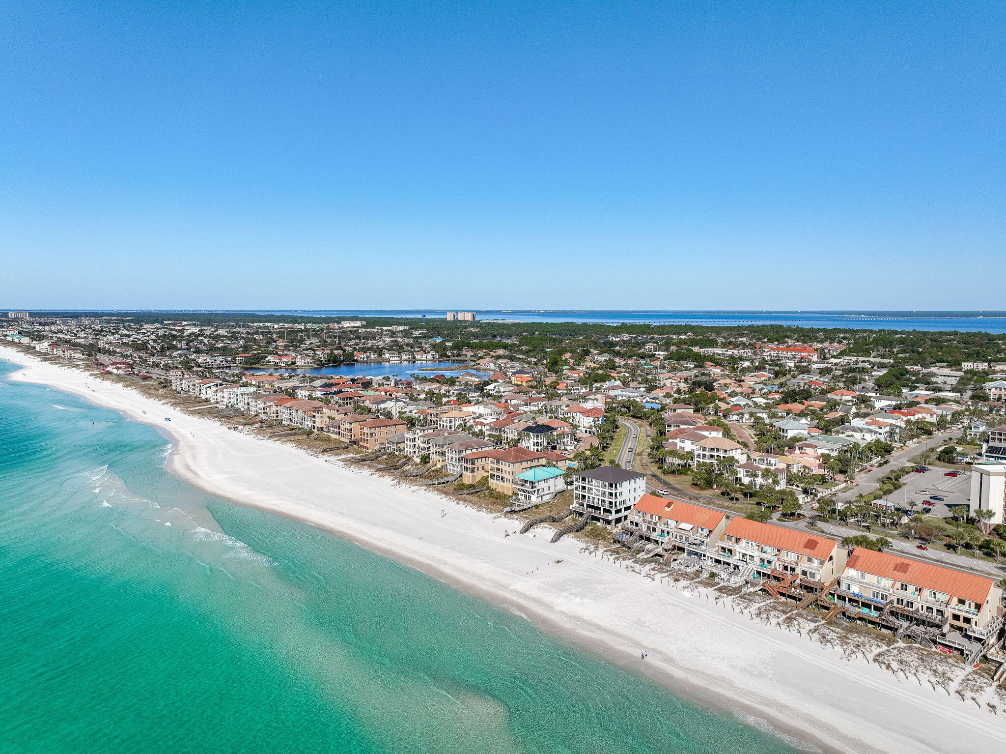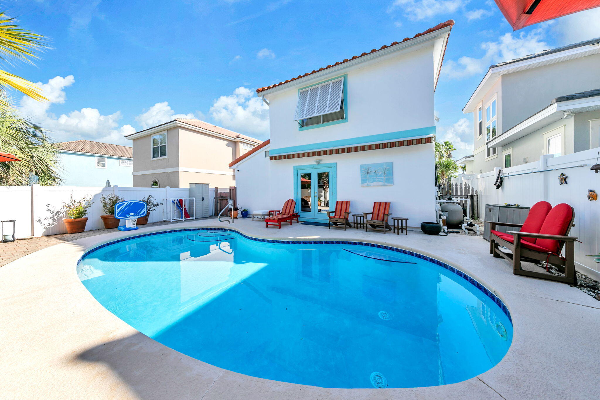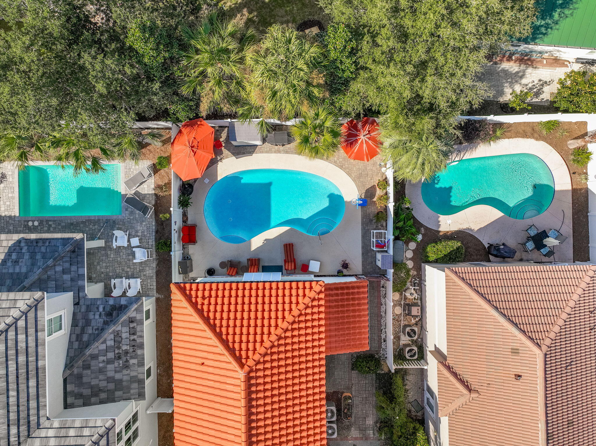 A Luxuriously Remodeled Beach Retreat Featuring a Private Heated Saltwater Pool and Exclusive Beach Access awaits! 78 Terra Cotta Way, an exquisitely reimagined 3-bedroom + office/bunk room, 3-bath luxury beach home featuring a private heated saltwater pool and exclusive deeded, gated beach access, perfectly situated in the prestigious Terra Cotta Terrace community. This remodeled coastal haven welcomes you with a new roof, tropical landscaping, a brick paver driveway, a charming covered front porch, fresh 2021 exterior paint with completed stucco inspection, and additional outdoor storage added to the exterior of the home. Inside, the open-concept layout is elevated by Calacatta Gold tile flooring, crisp white trim, an elegant real wood-burning fireplace, and designer finishes throughout The totally remodeled chef's kitchen showcases breathtaking Misterio Vico Subra quartz waterfall countertops, Storybook greige lower cabinetry, Charlotte Beach upper cabinetry, champagne hardware, a gas range with double oven, and a stunning glass subway tile backsplash, all hand-crafted to create a luxurious statement for your friends, family and vacationing guests. The spacious bedrooms and spa-like bathrooms offer comfort and serenity, while the flexible office/bunk room provides the perfect space for guests/bunk room or remote work. The second-floor master suite invites you onto a serene private balcony facing east, where each morning greets you with Destin's breathtaking sunrise - an intimate moment that we all need. The first-floor primary suite provides effortless luxury as well, offering elegant French-door access to the sparkling pool. Outside, the pool area features a remarkable motorized shade system that extends from the home to cover the water, creating a blissfully cool retreat during the warm summer months.
