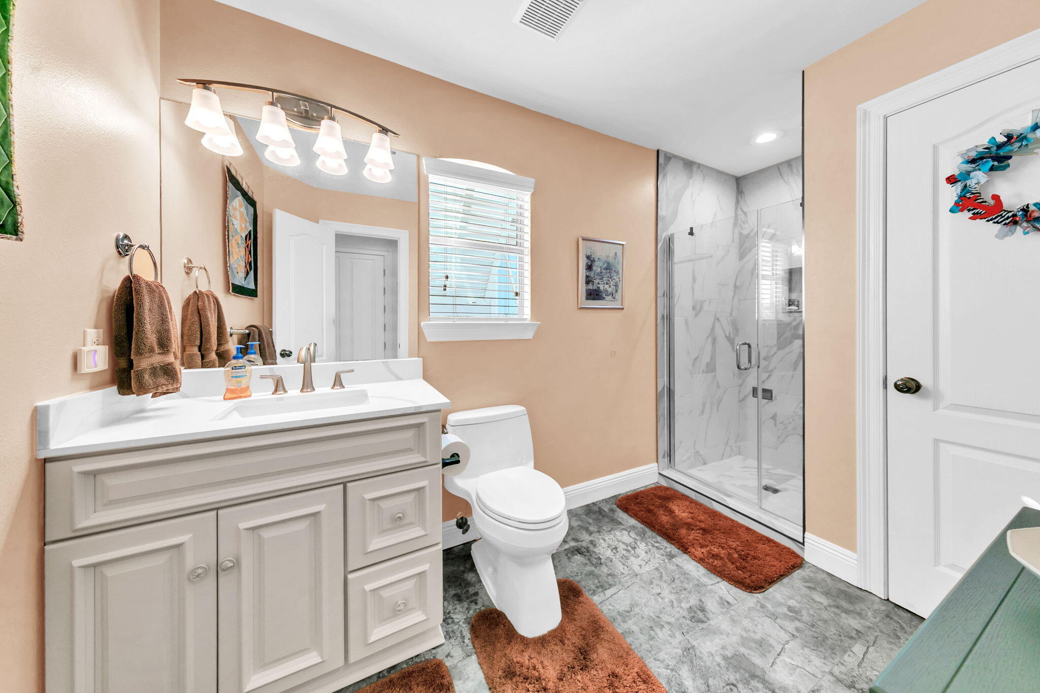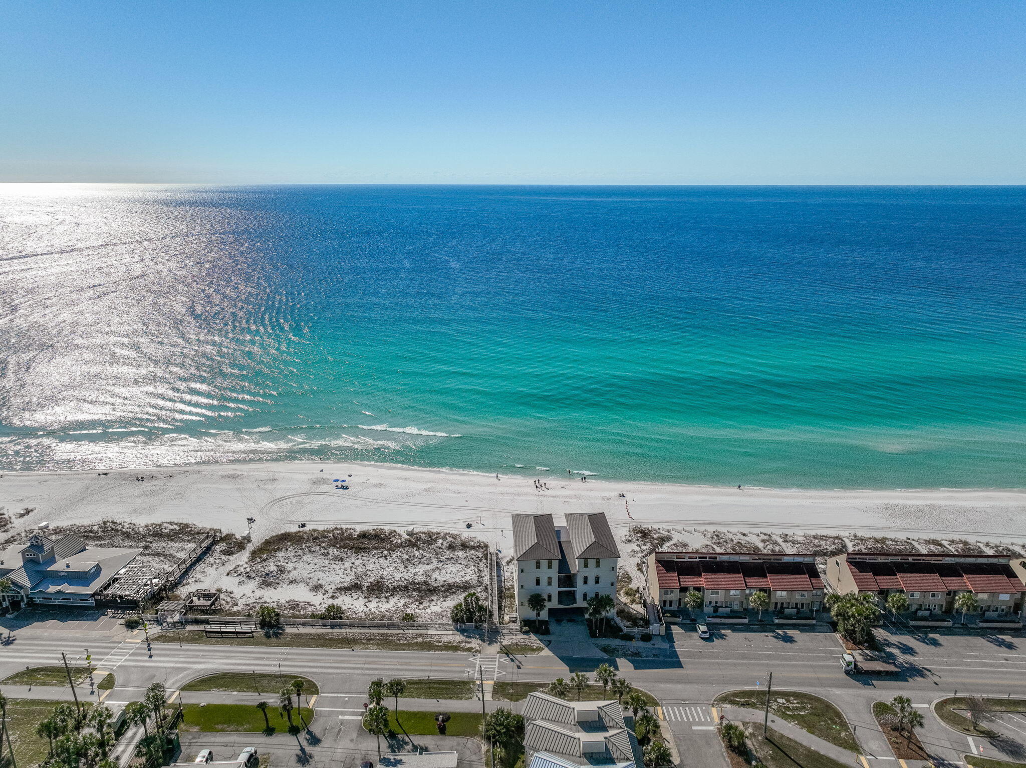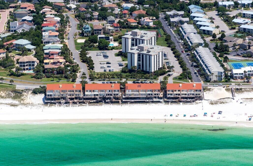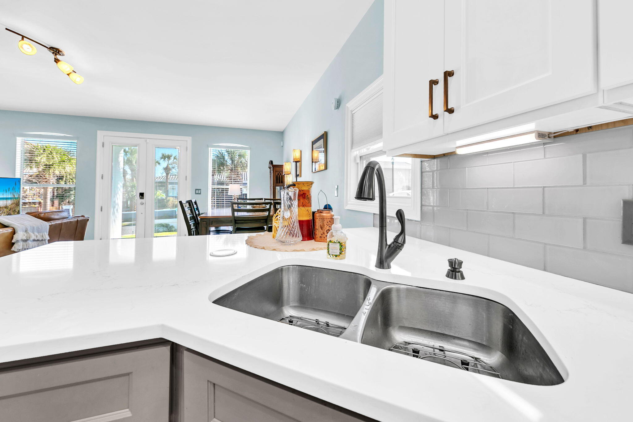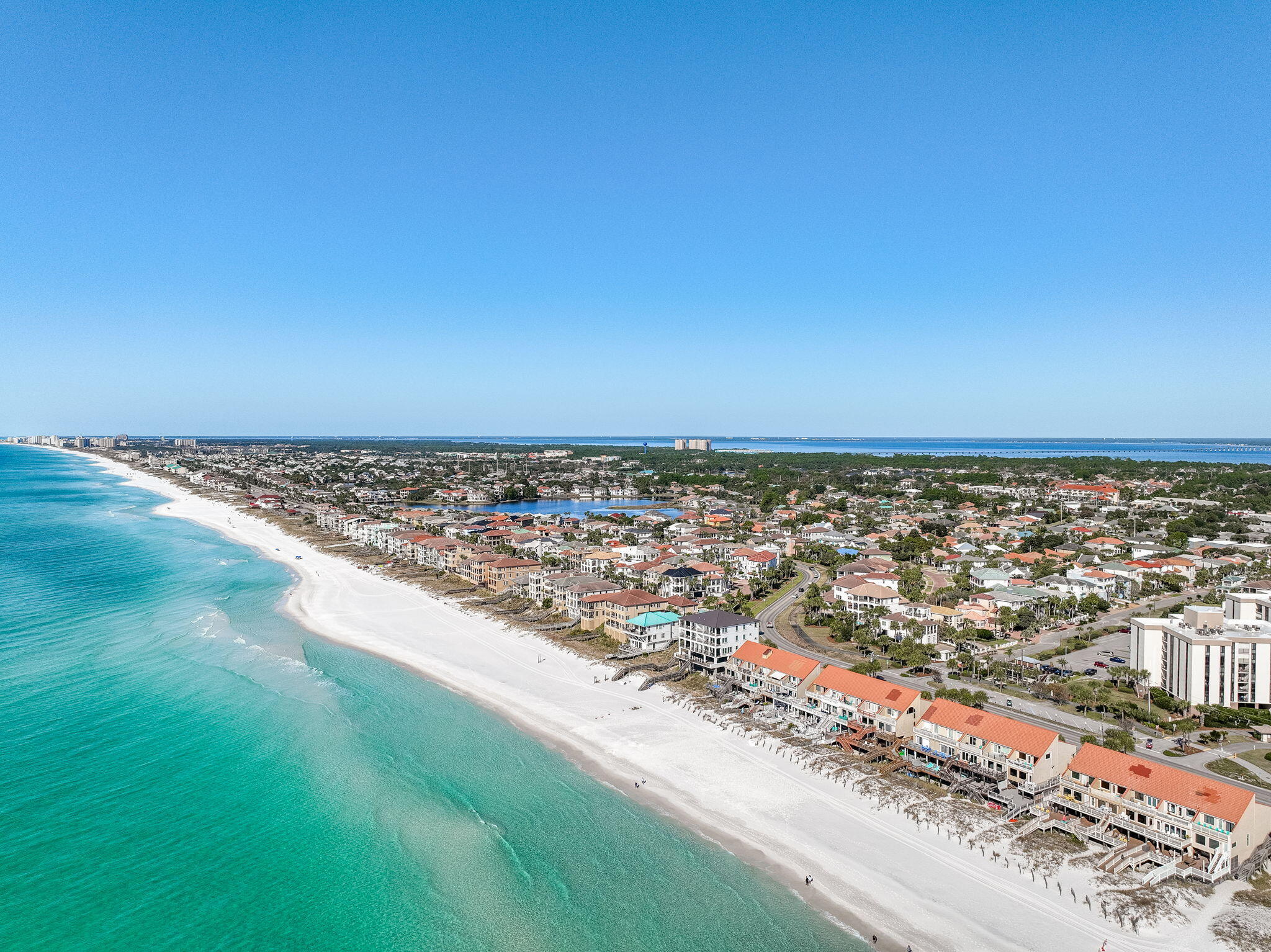 A Luxuriously Remodeled Beach Retreat Featuring a Private Heated Saltwater Pool and Exclusive Beach Access awaits! 78 Terra Cotta Way, an exquisitely reimagined 3-bedroom + office/bunk room, 3-bath luxury beach home featuring a private heated saltwater pool and exclusive deeded, gated beach access, perfectly situated in the prestigious Terra Cotta Terrace community. This remodeled coastal haven welcomes you with a new roof, tropical landscaping, a brick paver driveway, a charming covered front porch, fresh 2021 exterior paint with completed stucco inspection, and additional outdoor storage added to the exterior of the home. Inside, the open-concept layout is elevated by Calacatta Gold tile flooring, crisp white trim, an elegant real wood-burning fireplace, and designer finishes throughout The totally remodeled chef's kitchen showcases breathtaking Misterio Vico Subra quartz waterfall countertops, Storybook greige lower cabinetry, Charlotte Beach upper cabinetry, champagne hardware, a gas range with double oven, and a stunning glass subway tile backsplash, all hand-crafted to create a luxurious statement for your friends, family and vacationing guests. The spacious bedrooms and spa-like bathrooms offer comfort and serenity, while the flexible office/bunk room provides the perfect space for guests/bunk room or remote work. The second-floor master suite invites you onto a serene private balcony facing east, where each morning greets you with Destin's breathtaking sunrise - an intimate moment that we all need. The first-floor primary suite provides effortless luxury as well, offering elegant French-door access to the sparkling pool. Outside, the pool area features a remarkable motorized shade system that extends from the home to cover the water, creating a blissfully cool retreat during the warm summer months.