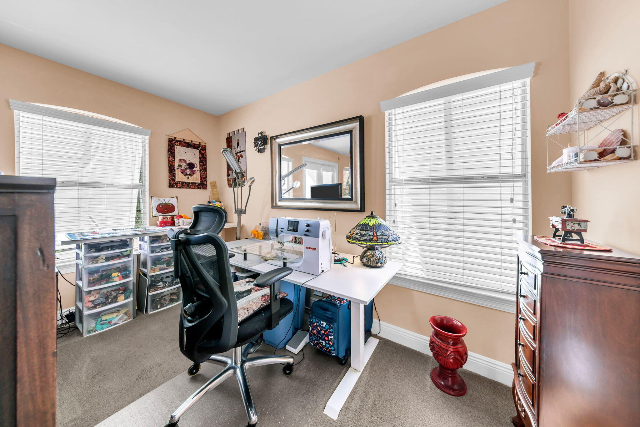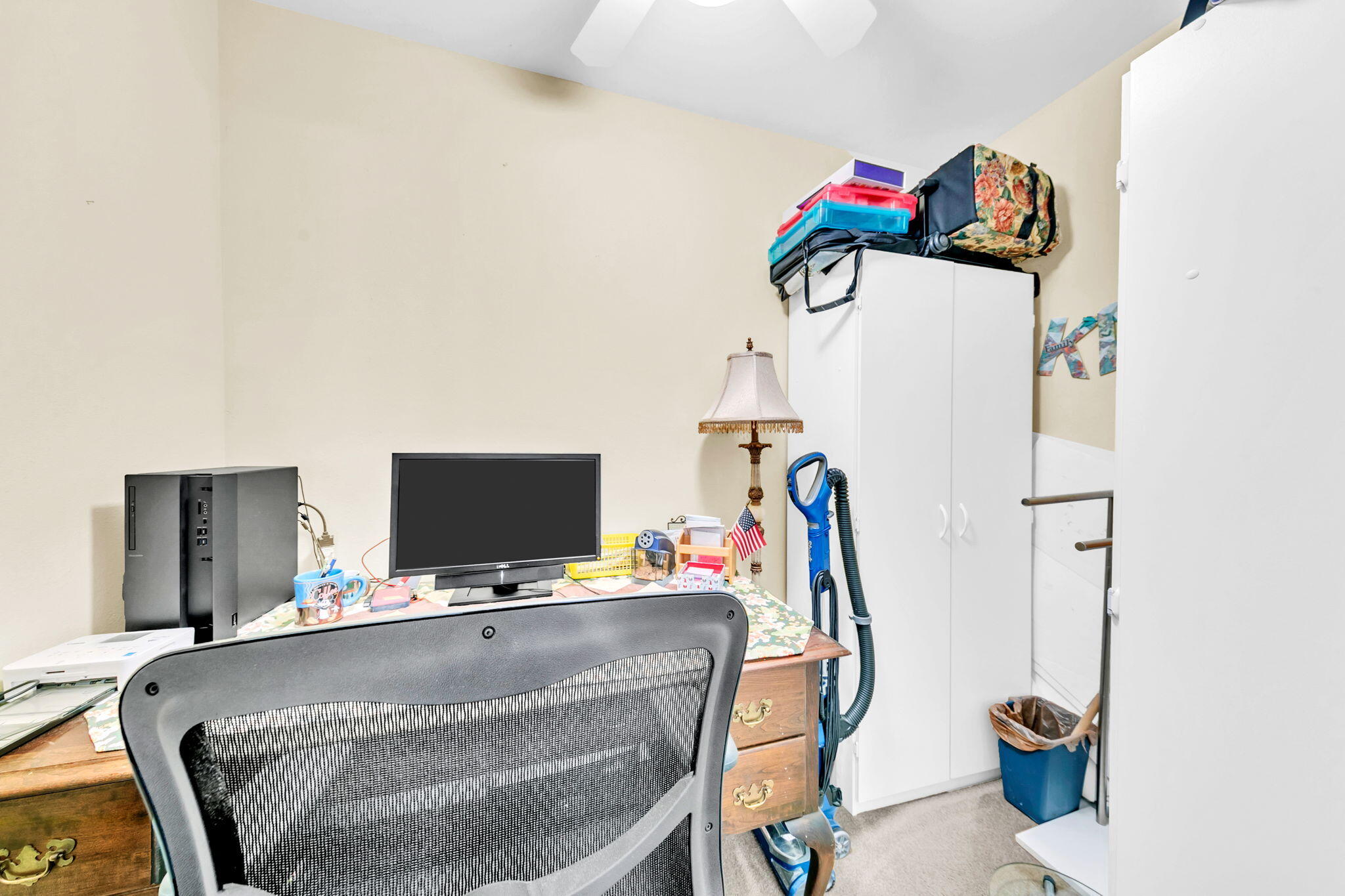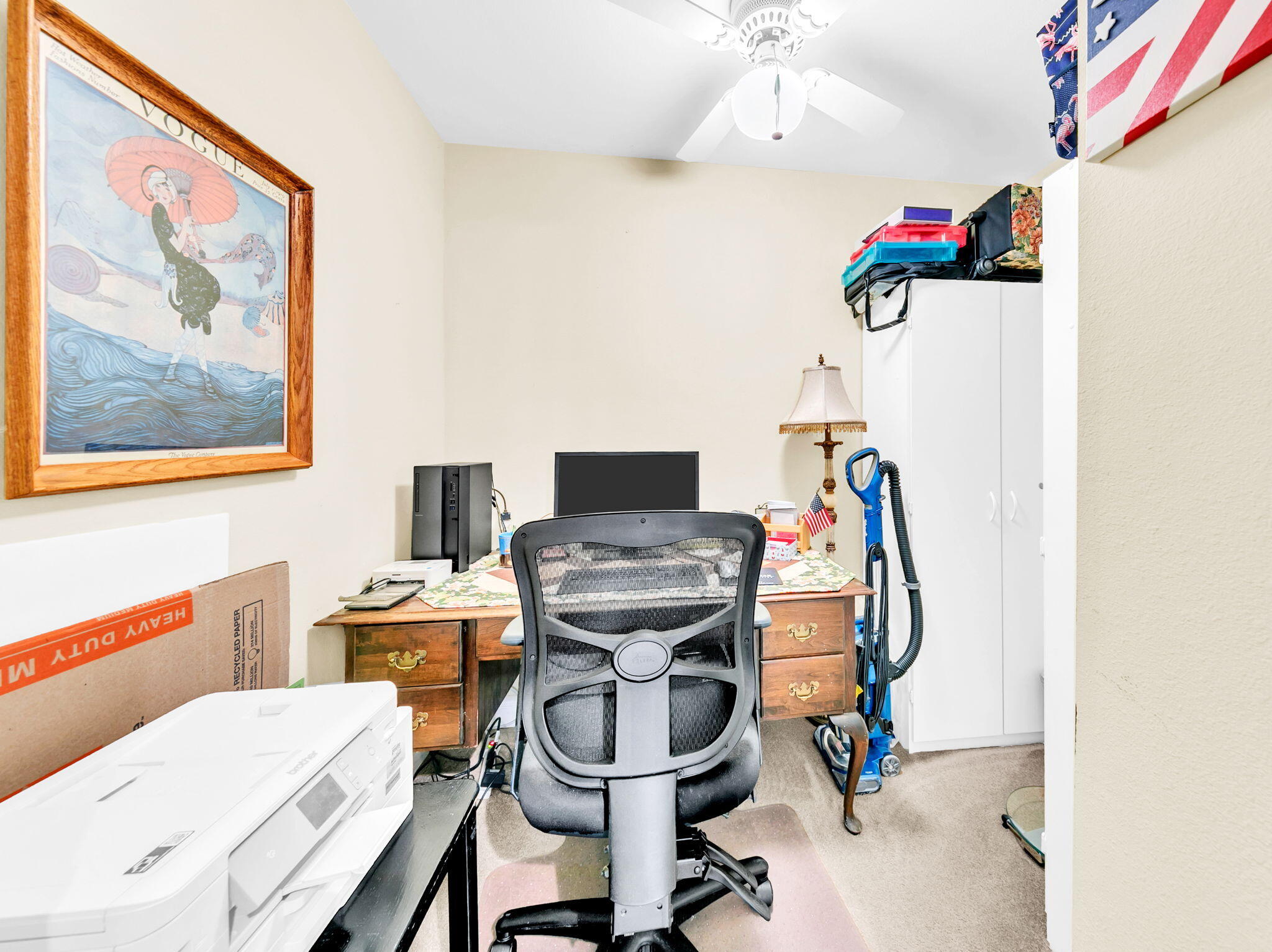 The third bedroom enjoys direct access to the third bathroom, which also opens to the hallway for added convenience. The spacious bunk room, currently utilized as an office, offers generous versatility and can easily adapt to suit your needs.