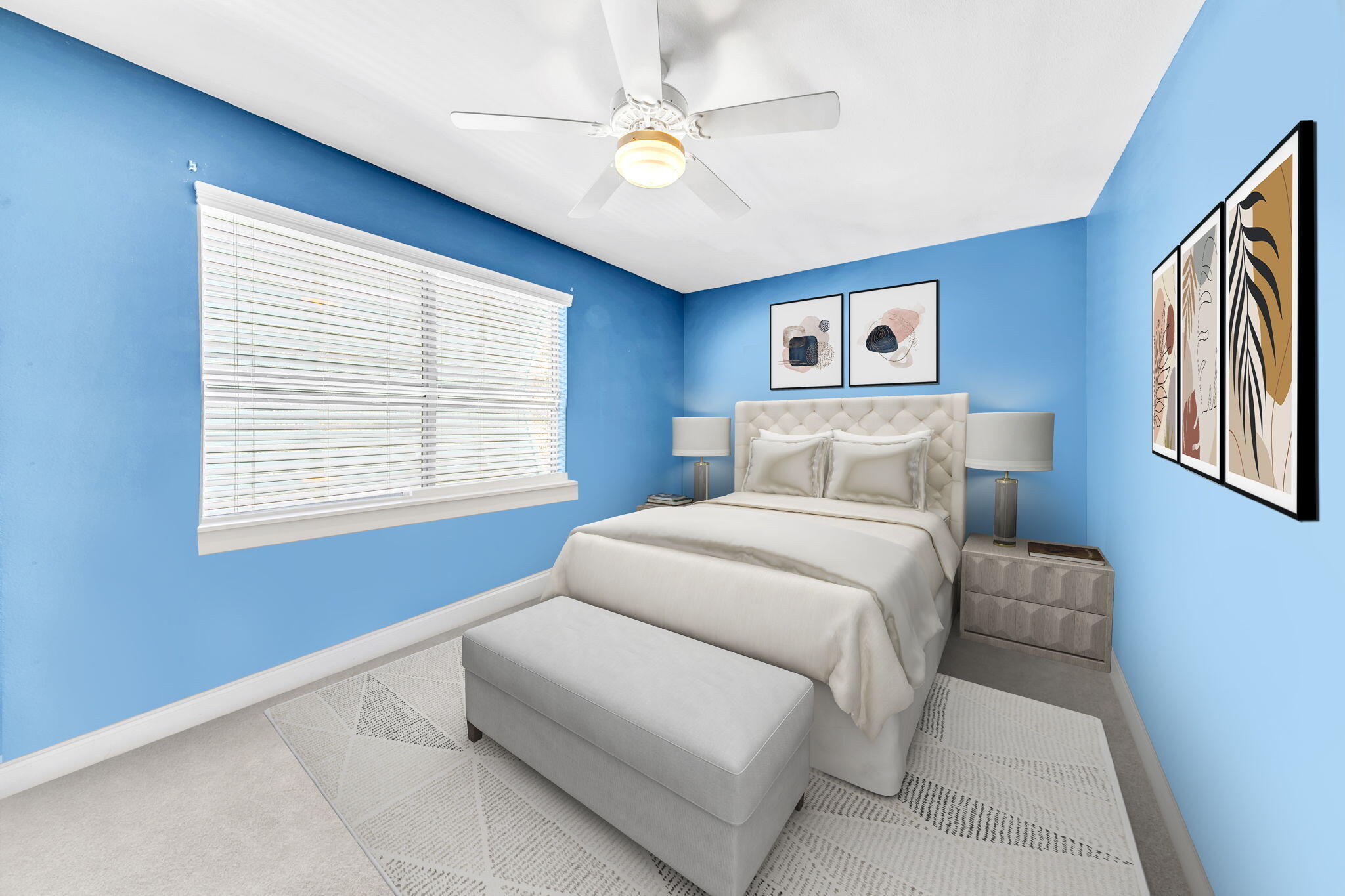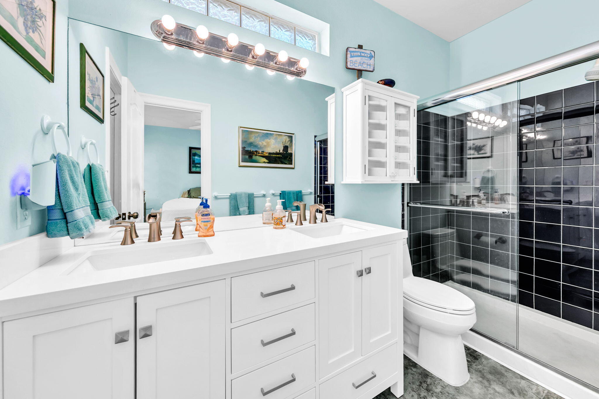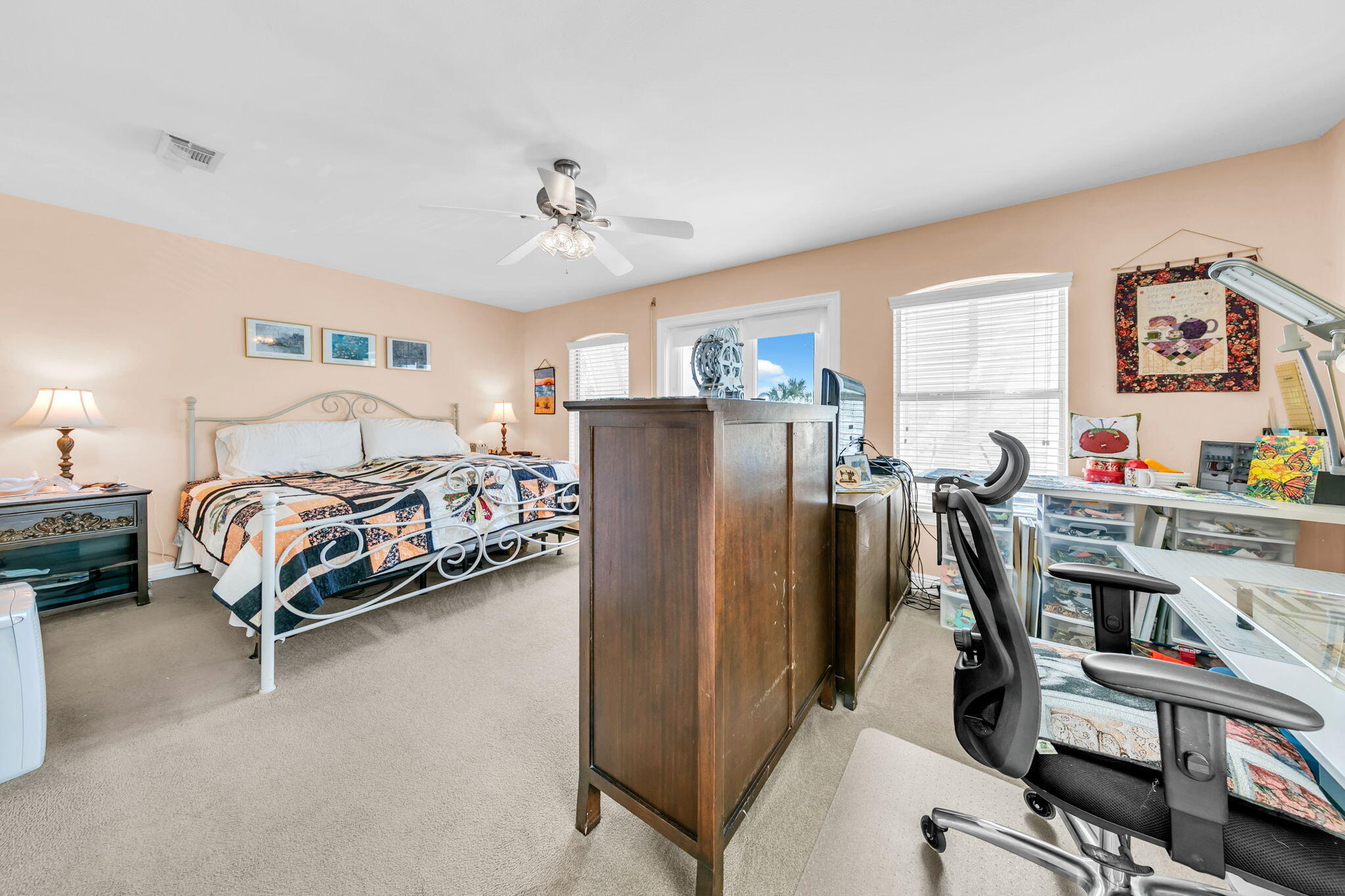 The third bedroom enjoys direct access to the third bathroom, which also opens to the hallway for added convenience. The spacious bunk room, currently utilized as an office, offers generous versatility and can easily adapt to suit your needs.