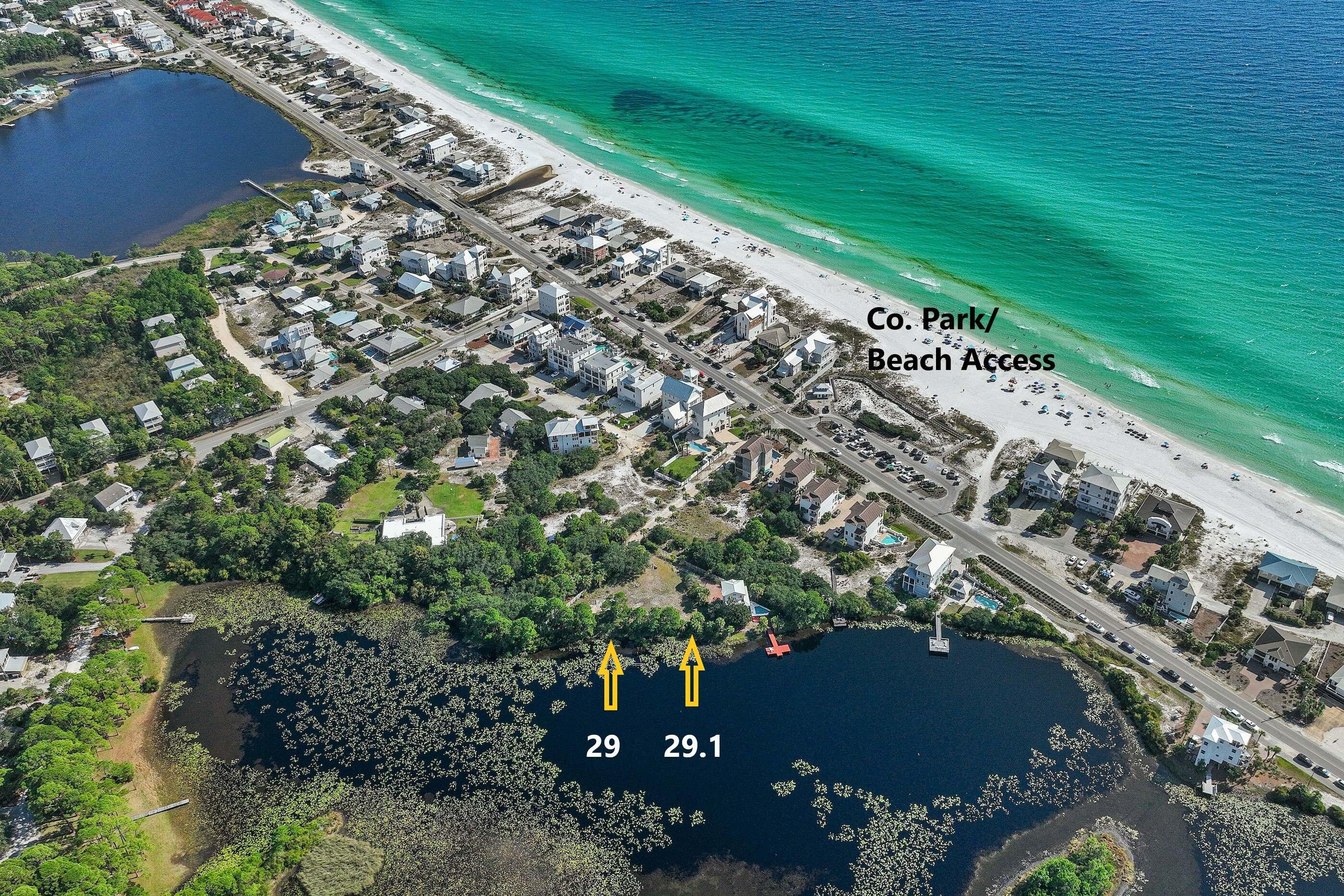 Rare Opportunity! Sizable Lot of Record on premier coastal dune Lake Allen. Private setting totaling .36 acres with 164' lake frontage on pristine natural sanctuary in Dune Allen Beach. Only +-128 yards via private driveway to Fort Panic County Park/Beach Access. No HOA-County code applies. Zoned 'Neighborhood Infill.' Future Land Use 'Residential.' CDLPZ setback 50' from shoreline; 4 story 50' height limit; all Flood zone 'X' except immediate shoreline. Main & Carriage Houses allowed. Existing Carriage House, pool & dock may be utilized with some modifications. Panoramic lake views with possible Gulf views from multi-story residence. Adjacent .48 acre lake front site also for sale.