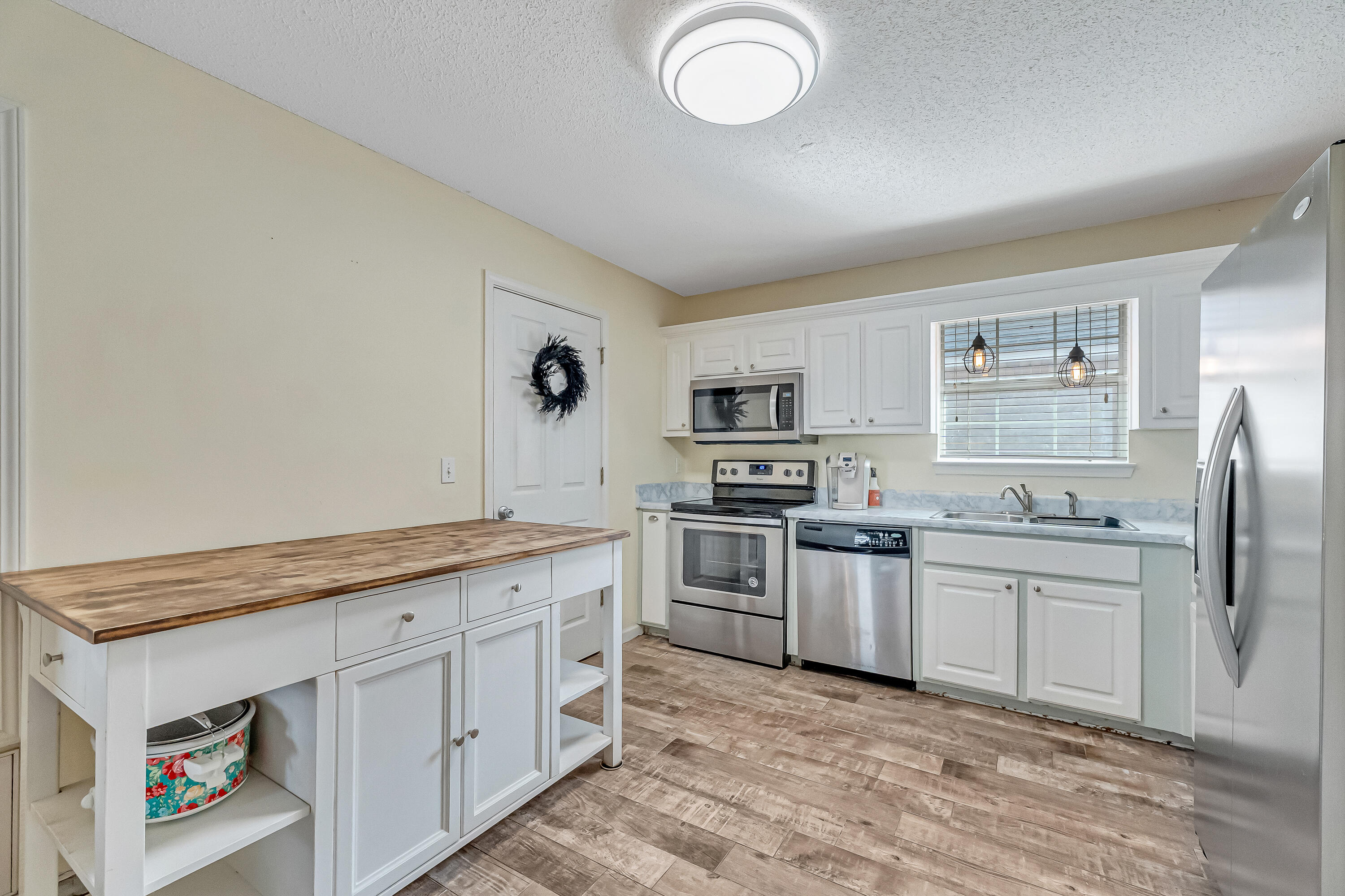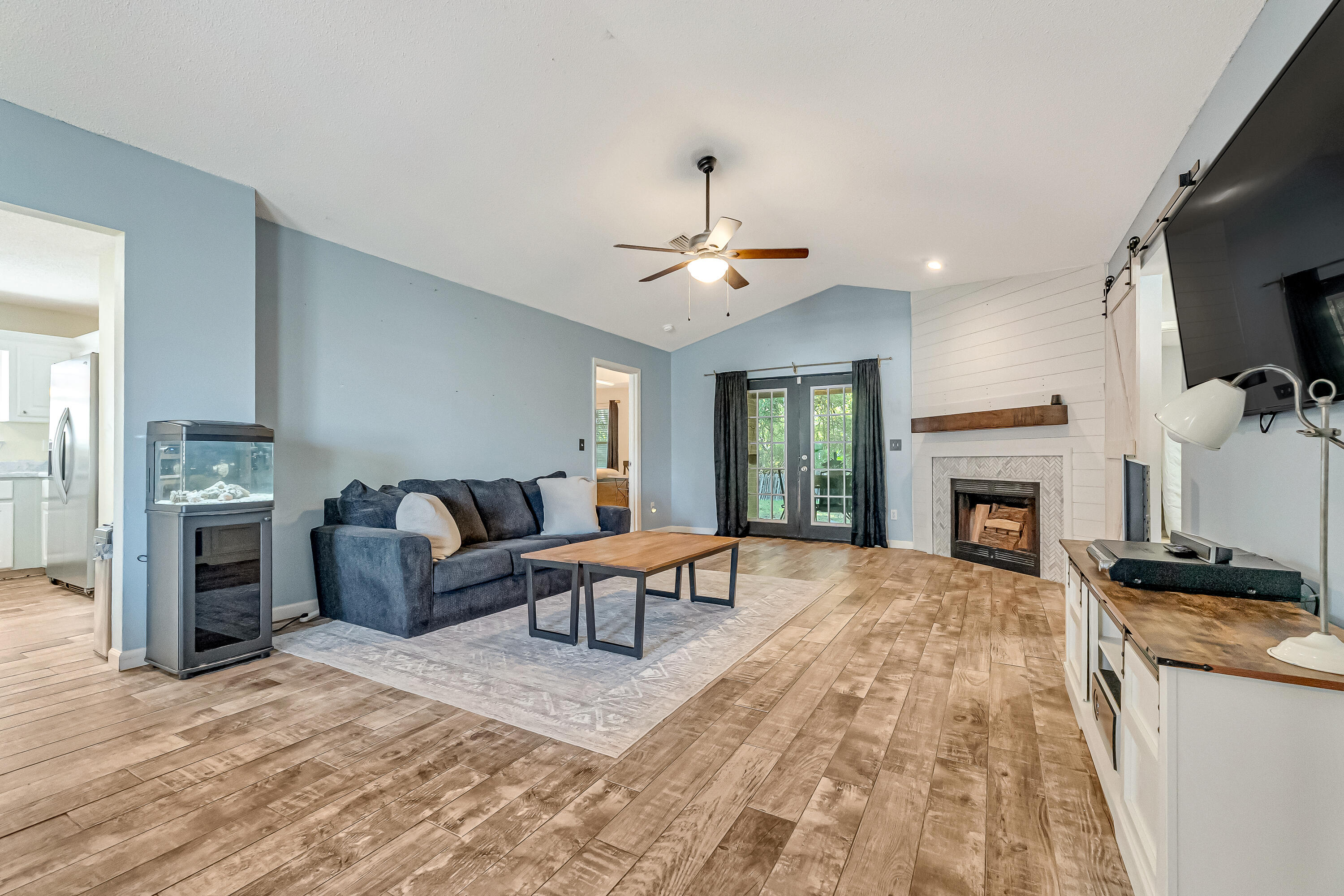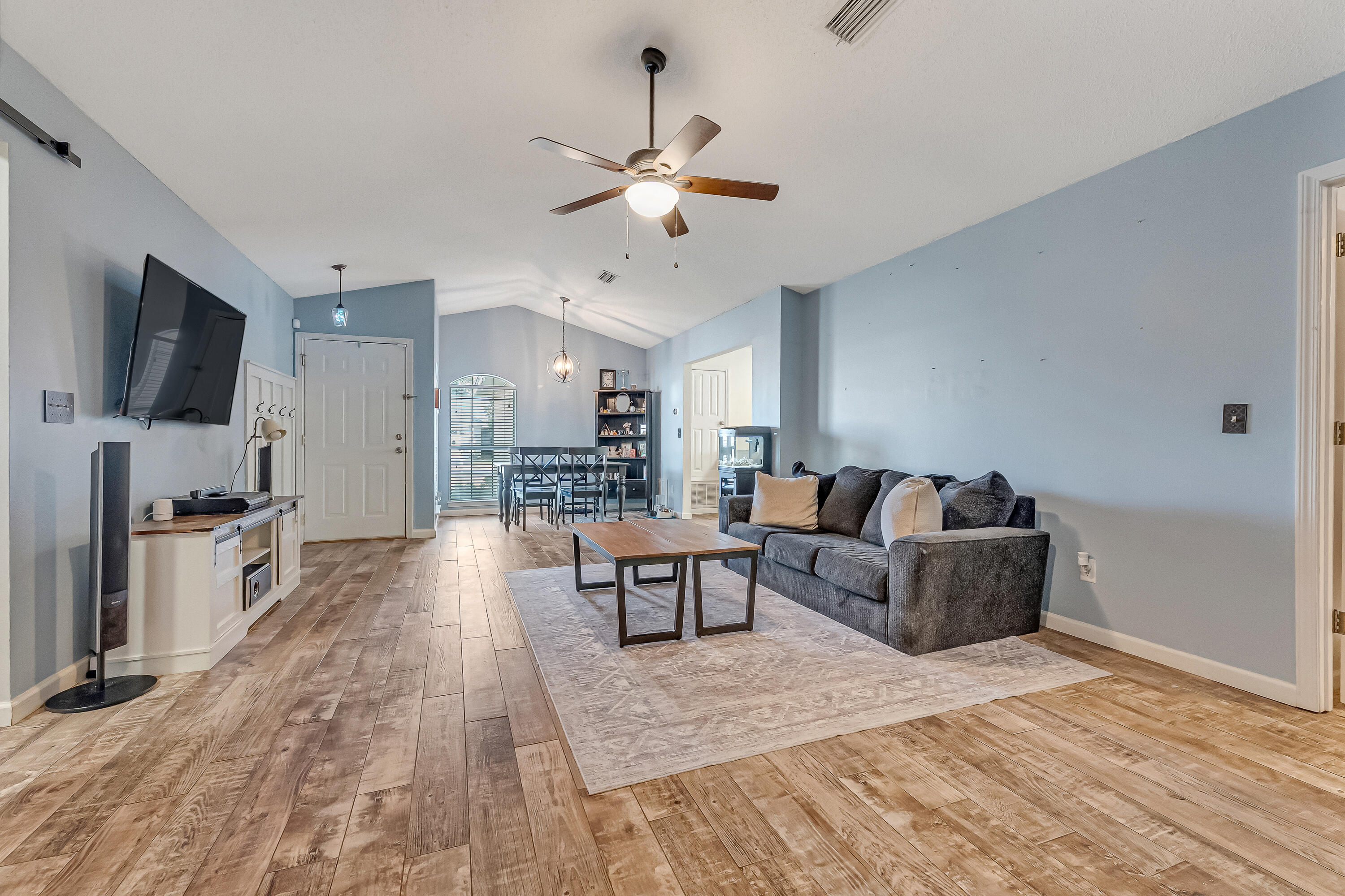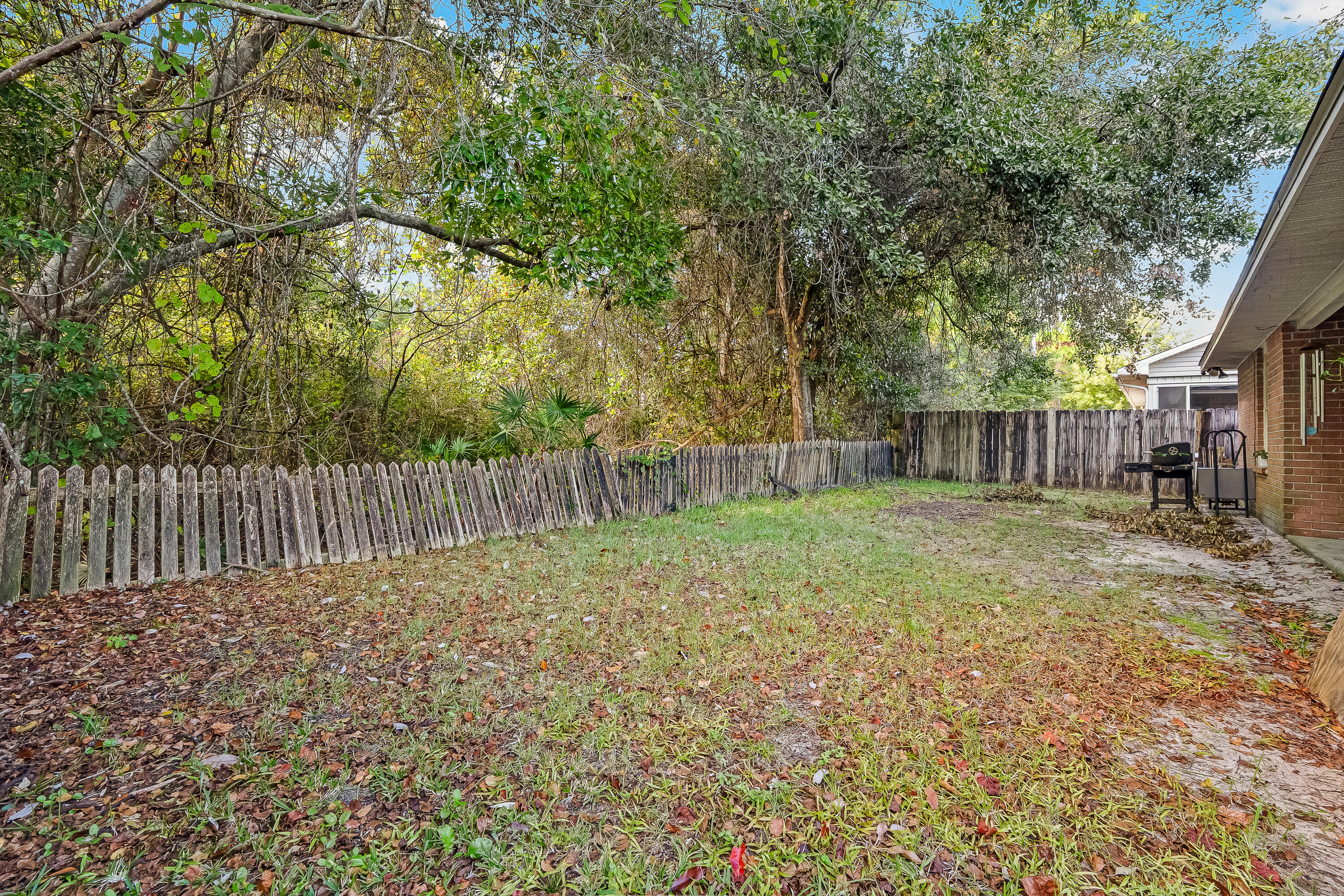 Lovely 3-bedroom, 2-bath all-brick home in a quiet Soundside neighborhood in Navarre. Step inside from the covered front porch into a bright, inviting great room filled with natural light, featuring cathedral ceilings and a cozy corner fireplace. Double sliding glass doors open to a covered patio, creating an easy indoor-outdoor flow.The home offers matching wood-look tile throughout the living room, dining area, kitchen, primary suite, guest bath, and laundry room, both stylish and low-maintenance.The kitchen includes stainless steel appliances, a built-in microwave, and abundant cabinet space. The private primary suite enjoys excellent natural light with double windows and direct access to the patio. The en-suite bathroom features a walk-in closet. This split floor plan includes two additional bedrooms and a full guest bath. Ceramic tile covers all wet areas for easy care. Located in an area that does not require flood insurance, this home offers peace of mind along with comfort and convenience. A wonderful opportunity to own an inviting, light-filled home in one of Navarre's most desirable areas.