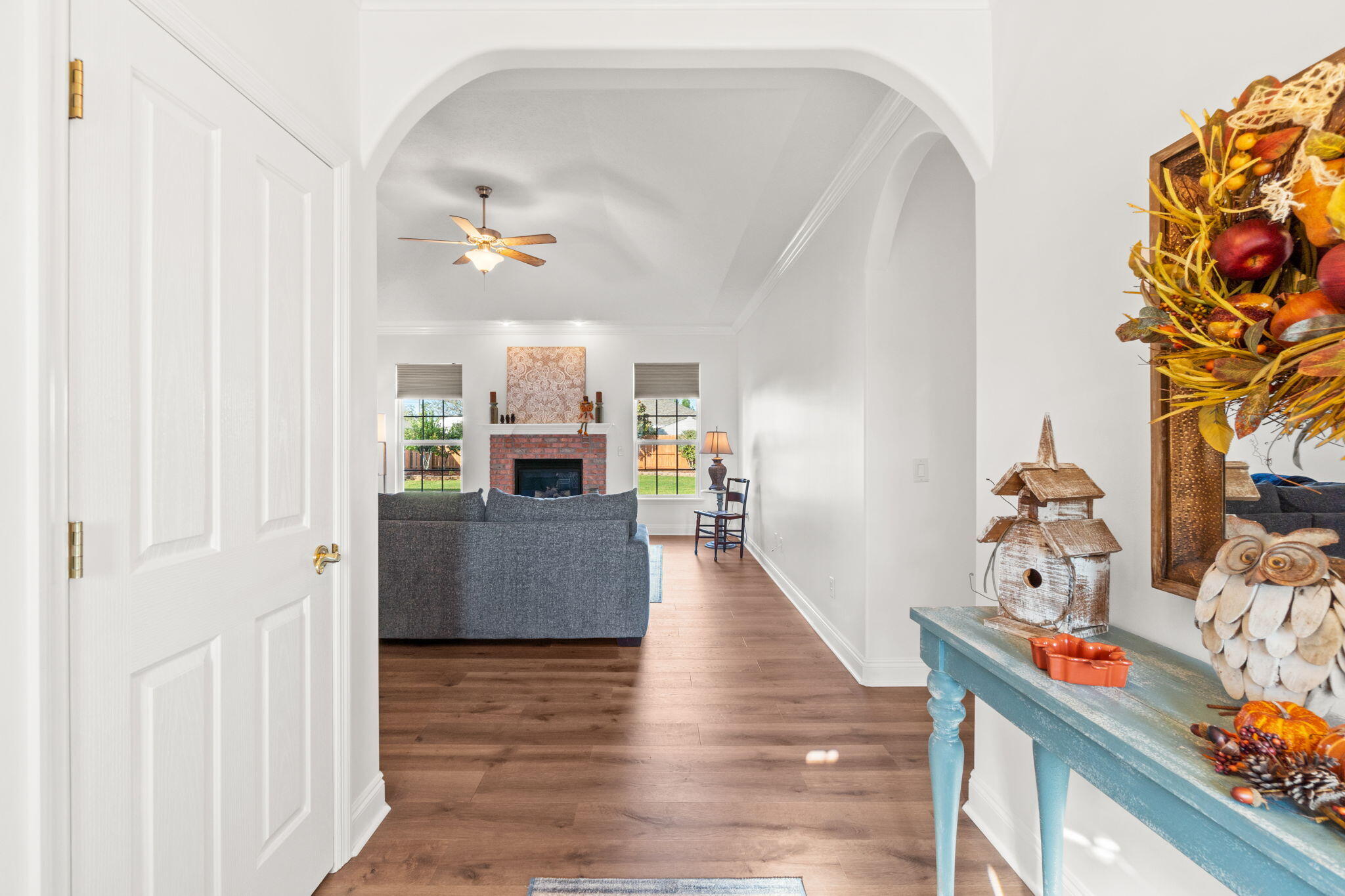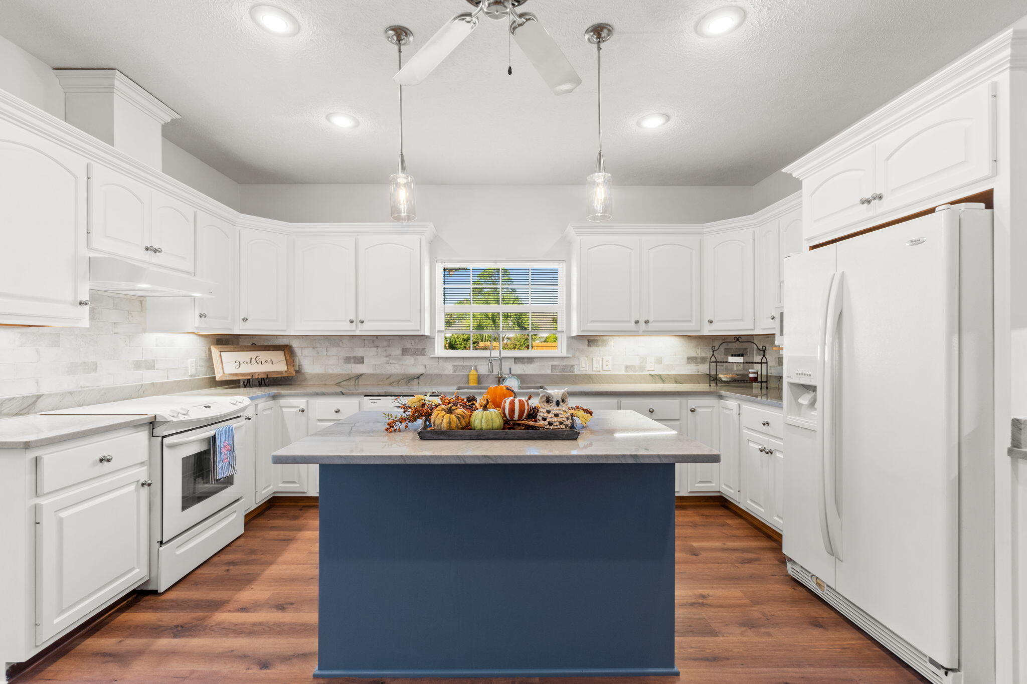 Discover the perfect blend of comfort, convenience, and community at 1406 New Jersey Avenue! This thoughtfully updated 4-bed, 3-bath brick home sits on a 100' x 150' lot in a golf-cart-friendly, no-HOA community, putting you minutes from schools, parks, playgrounds, sports complexes, and the iconic Leslie Porter Park boat ramp on North Bay. Step inside to an inviting layout designed for real life. An open living area with 11-ft tray ceilings, crown molding, and a natural gas fireplace sets the tone for cozy nights and family gatherings. The home features brand-new premium LVP flooring, fresh paint, and a true split floor plan that includes two ensuite bedrooms, perfect for multigenerational living, teens, guests, or extended family. The kitchen offers a clean, functional design with white cabinetry and easy flow into the formal dining room, which opens directly onto the large screened-in patio, fully rescreened in 2021. This outdoor living space overlooks a fully fenced, landscaped backyard offering plenty of room for pets, gardening, or future improvements like a pool or workshop. The spacious primary suite features a walk-in closet and a completely renovated bathroom with a custom-tiled walk-in shower, dual vanities, and modern finishes. A second ensuite bedroom also enjoys a newly remodeled bathroom with its own custom tile shower. Secondary bedrooms include large closets and ceiling fans, keeping the home comfortable year-round. The property also has many major upgrades to ensure peace of mind for years to come: 2024 high-efficiency 4-ton, 18-SEER HVAC system with new ductwork & smart thermostat, 2018 architectural roof, 2015 Hybrid electric water heater, A oversized 780+ sq ft two-car garage, ideal for storage, hobbies, or a workshop, an Irrigation system and the property is connected to city utilities. Located minutes from Cain Griffin Park, the Lynn Haven Sports Complex, A.L. Kinsaul Park, dog parks, splash pads, Publix, Walmart, restaurants, and local shops, this home offers the best of Lynn Haven living. This beautifully updated home is truly a must see, schedule your showing today!