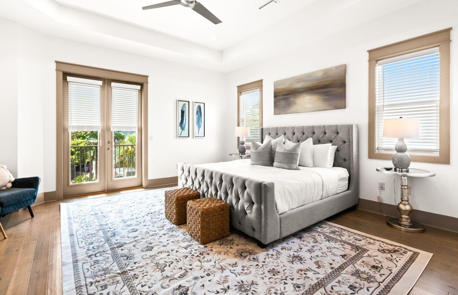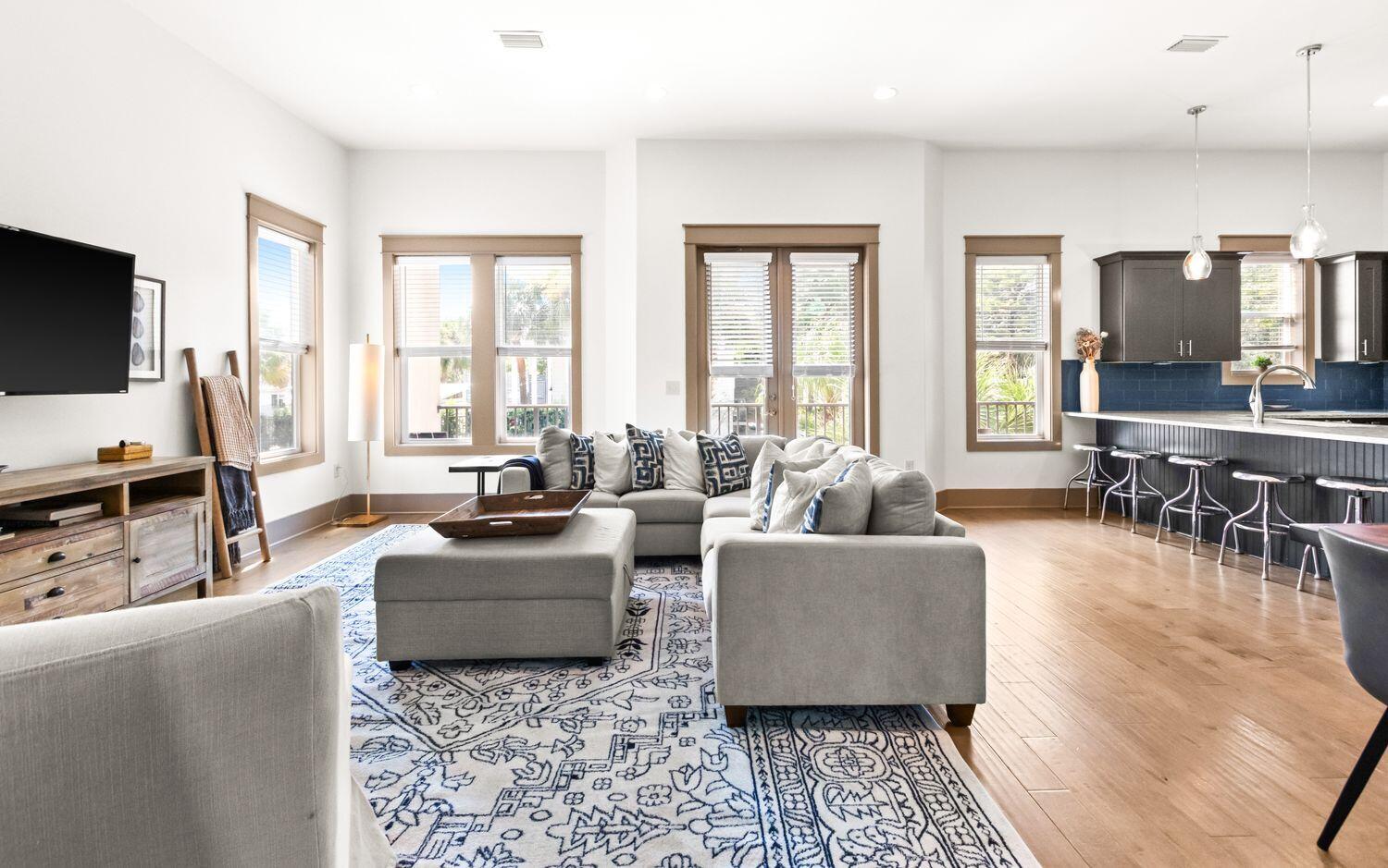 Embrace refined coastal living--and a premier investment opportunity--in this luxury residence on an oversized lot along the coveted west end of 30A. A stately columned facade, ample parking, and inviting porches set a timeless tone. This three-story home, accessible by private elevator, offers six spacious bedroom suites, including three on the main level. The second floor features an elegant open-concept living area with hardwood floors, formal dining, and a beautifully appointed kitchen. The third-floor master retreat boasts sweeping west-facing sunset views. Outdoors, enjoy a private pool, spa, tanning ledge, and wrap-around putting green. Just a short walk to Dune Allen Beach and minutes from Gulf Place, Grand Boulevard, and Santa Rosa Golf & Beach Club.