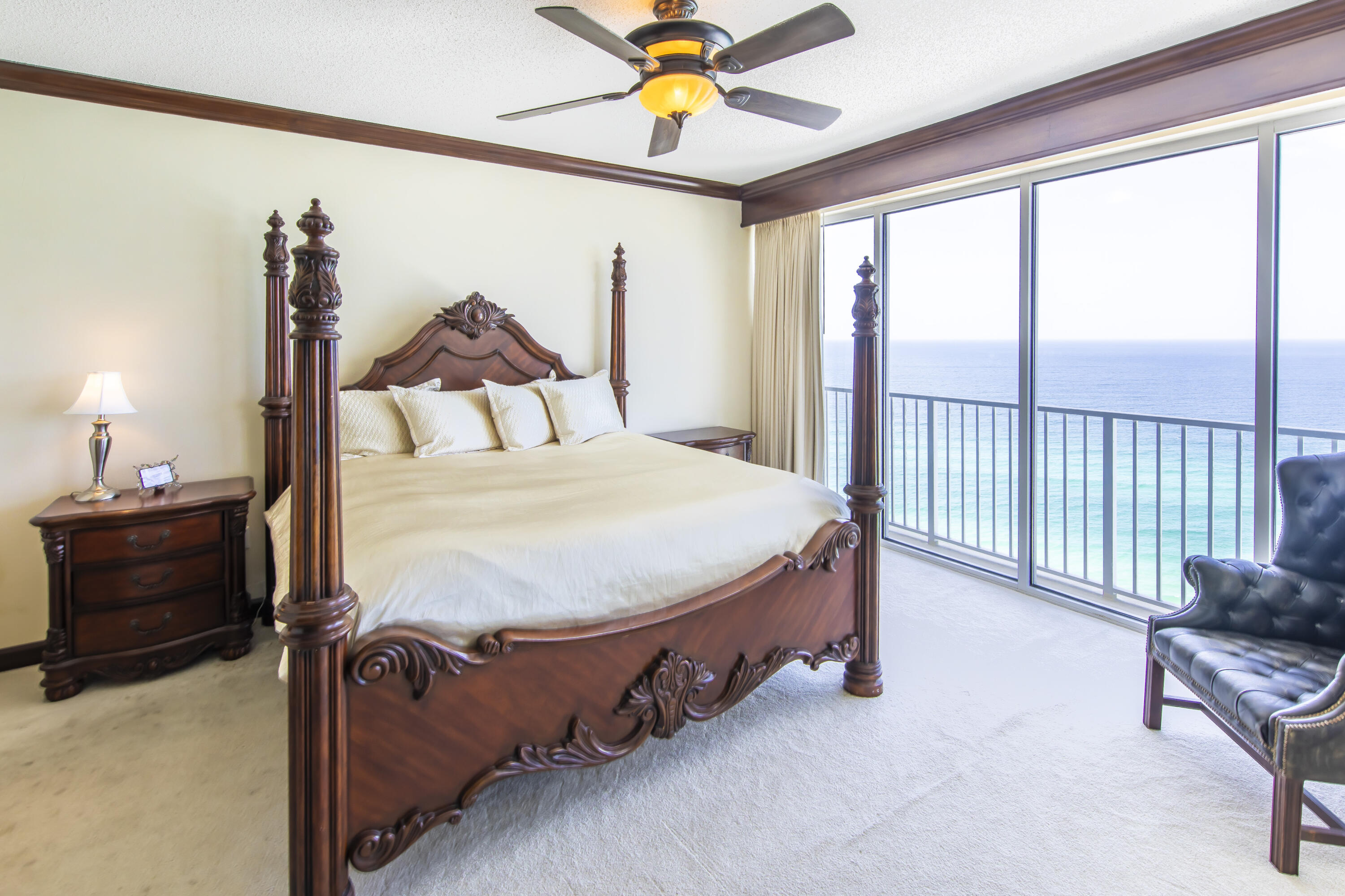 Located on a palm tree lined boulevard, Boardwalk Beach Resort is a special Gulf front destination known for it's amenities including an expansive private beach, beautiful zero entry pool area with heated spas & interactive splash zone, pool side and Gulf front Under the Boardwalk Bar & Grill, a Corner Market for refreshing ice cream and snacks, shops on site, personal garages deeded & purchased separately when available, fitness center with sauna, onsite security, pet walk for owners' pets, ample parking deck & parking lot. The location of The Boardwalk is also an amenity in itself with it being located conveniently to marinas, fine dining, the Panama City Beach Airport (ECP) shopping at Pier Park & tons of entertainment for the entire family. This unit is currently only used by family and friends and has been meticulously cared for. Upon entering you are welcomed with unprecedented Gulf views which are continued through the kitchen, dining and living areas. And, of course, dining al fresco water front with forever views of God's country makes this a truly special oasis.