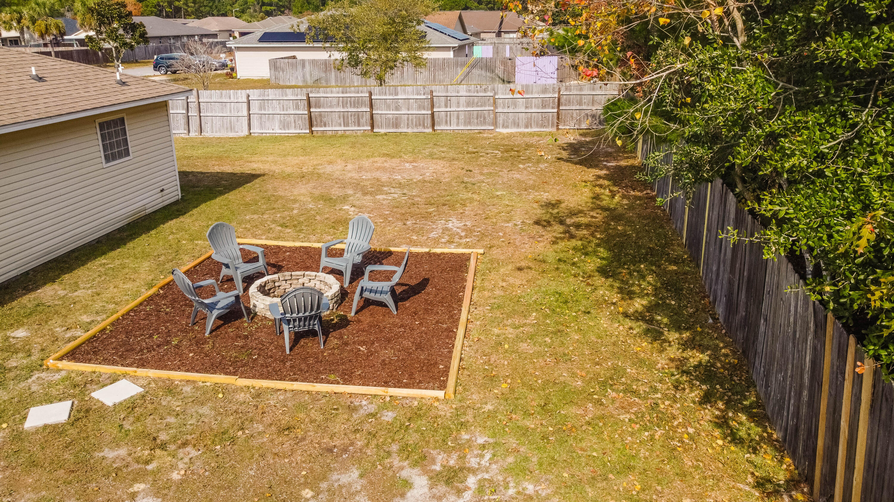Come see this beautiful, corner lot home in Navarre just 4 miles away from the beach! Located in the Promise Creek neighborhood, this property sits on a 0.165 acre corner lot & features a large, fenced backyard space with a covered porch & firepit area. The interior showcases an open floor plan with vaulted ceilings in the spacious living area that also has a fireplace, along with a kitchen that overlooks the living & dining areas and includes a breakfast bar, lots of counter space, & a pantry. The main bedroom suite is separate from the other bedrooms & the bathroom features a walk-in closet, a double vanity, & a garden tub. The property is located within 2 miles of Publix Supermarket and other restaurants & shopping off of US-98, along with being within 4 miles of Navarre Beach.