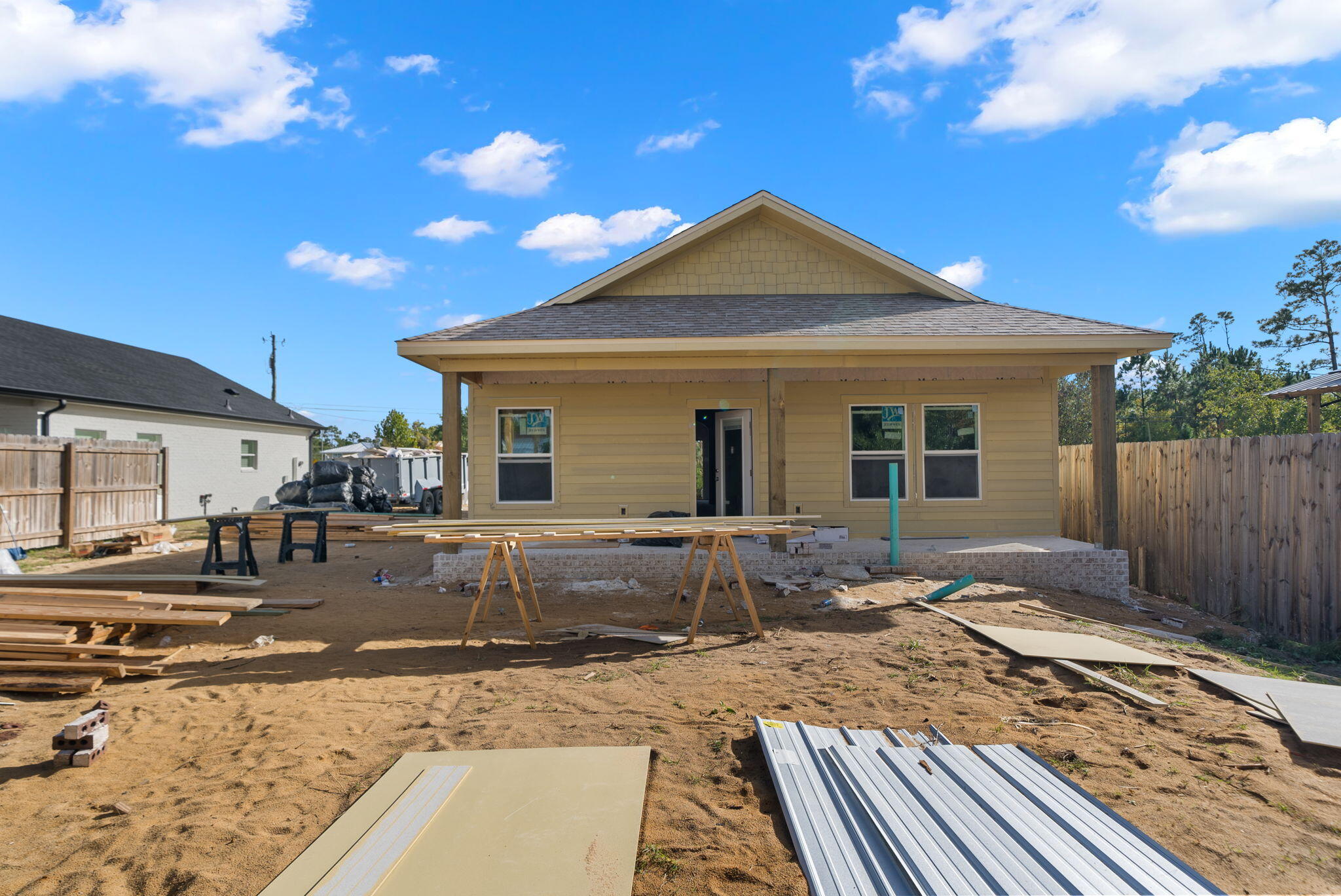 Step inside this new construction beauty with an earthy, organic vibe. You'll be wow'd by the soaring vaulted ceilings, LVP flooring throughout and soaring ceilings. The kitchen is open and provides a spacious 6' island with seating, generous pantry, glowing quartz countertops and an earthy mix of millwork using local saw mill lumber throughout including wainscoting, beams, custom fireplace mantel and tray ceilings in the primary bedroom. Southern Belle Construction utilizes a variety of natural wood including juniper, rough cut pine, deadwood cypress and live edge cypress to create a custom gem at an incredible price point!