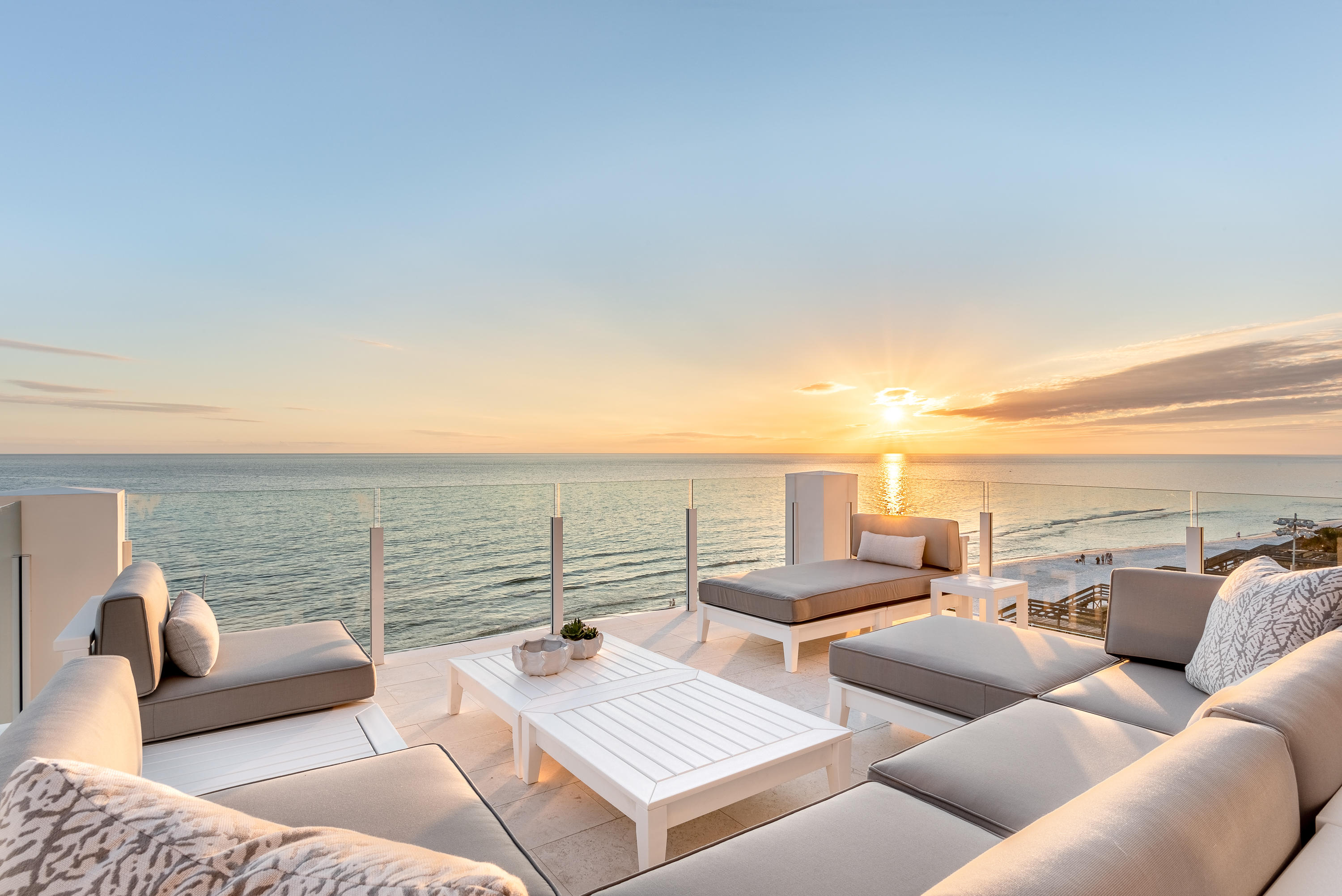 Nestled in the heart of Seagrove Beach, this recently completed, four-story Gulf-front masterpiece redefines luxury coastal living. Spanning approximately 9,981 square feet, this extraordinary retreat offers seven spacious bedrooms, nine lavish bathrooms, and a custom five-car garage, all designed to indulge the senses and celebrate the unmatched beauty of the Emerald Coast.Positioned to capture breathtaking waterfront views from every angle, the home's top-floor vantage point provides sweeping, panoramic vistas stretching from Destin to Panama City Beach. The epitome of elegance and sophistication, this residence was meticulously crafted with enduring quality in mind. Its floor-to-ceiling concrete construction ensures exceptional durability and energy efficiency, a rare combination in a beachfront property.