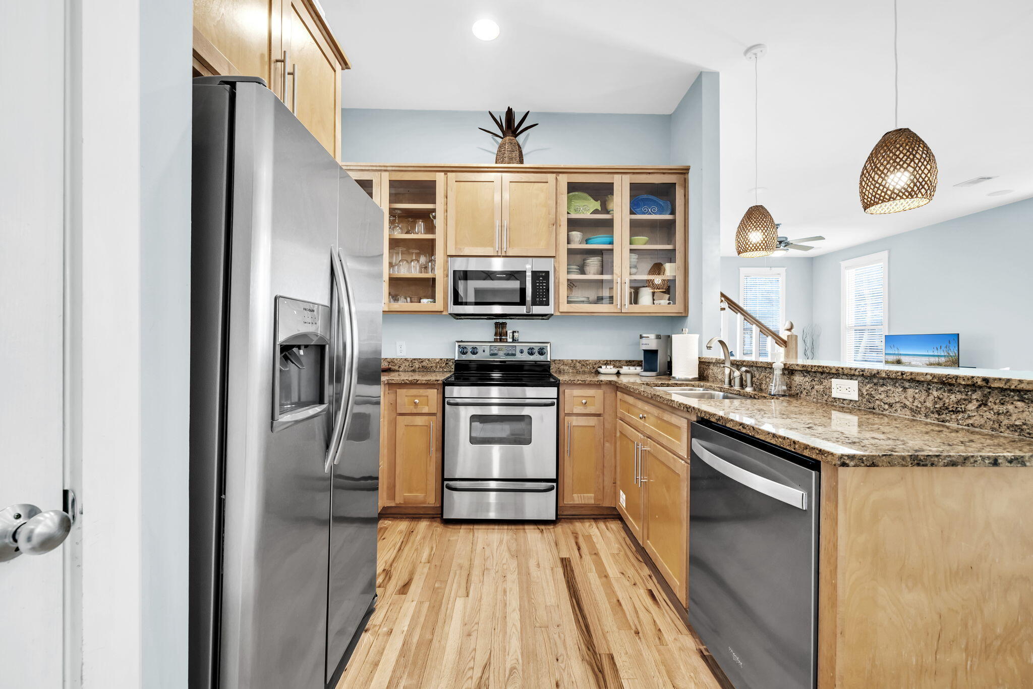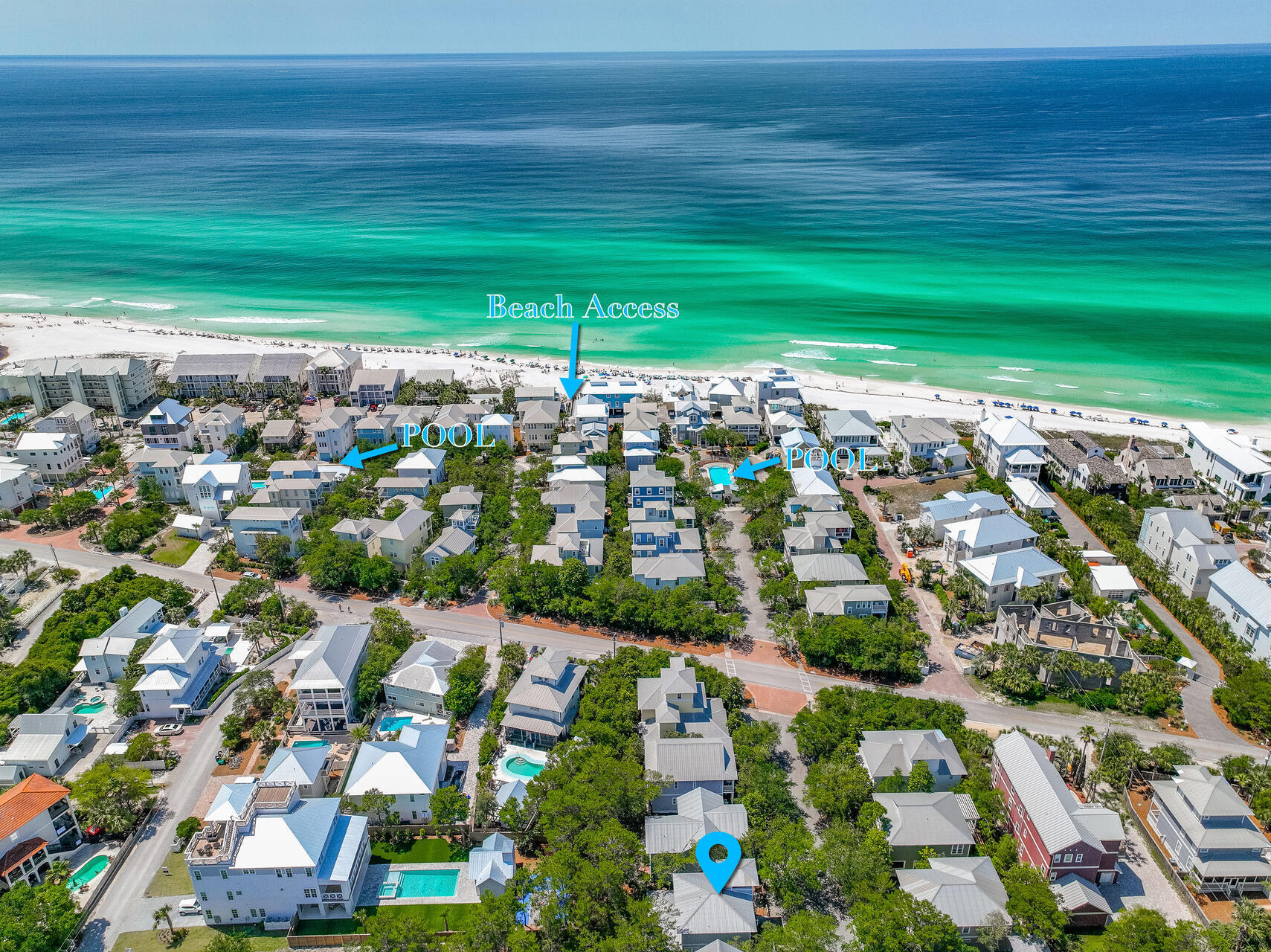 Stairway to Heaven! Looking for a coastal retreat? Here it is! With dedicated beach easement and 2 community pools located just steps away. Nestled within the sought-after Summer's Edge community., this home blends comfort and charm with three bedrooms, three bathrooms and just short stroll to the Gulf. The open living and dining area is filled with natural light, offering a welcoming place to gather. Multiple porches capture the coastal breeze! The hardwood floors have recently been refinished and the HVAC units are new. There is a lockout owner closet under the stairwell. Summer's Edge has reasonable HOA dues. Greenway Park is an easy 2 min walk with it's restaurants and shops thru the people gate at the end of N Ryan St.