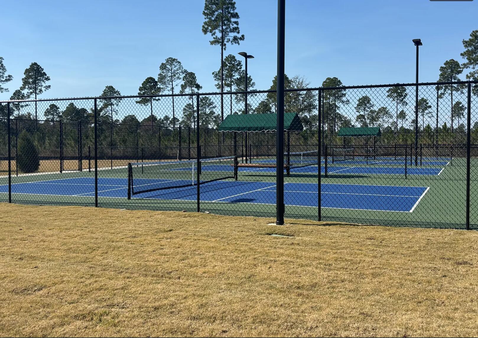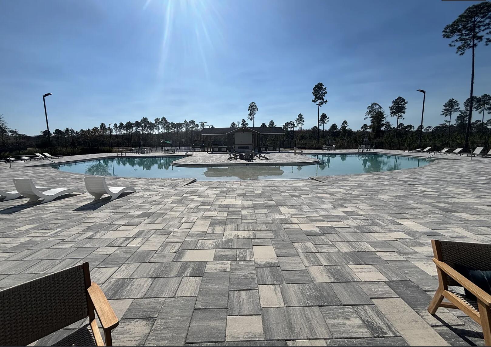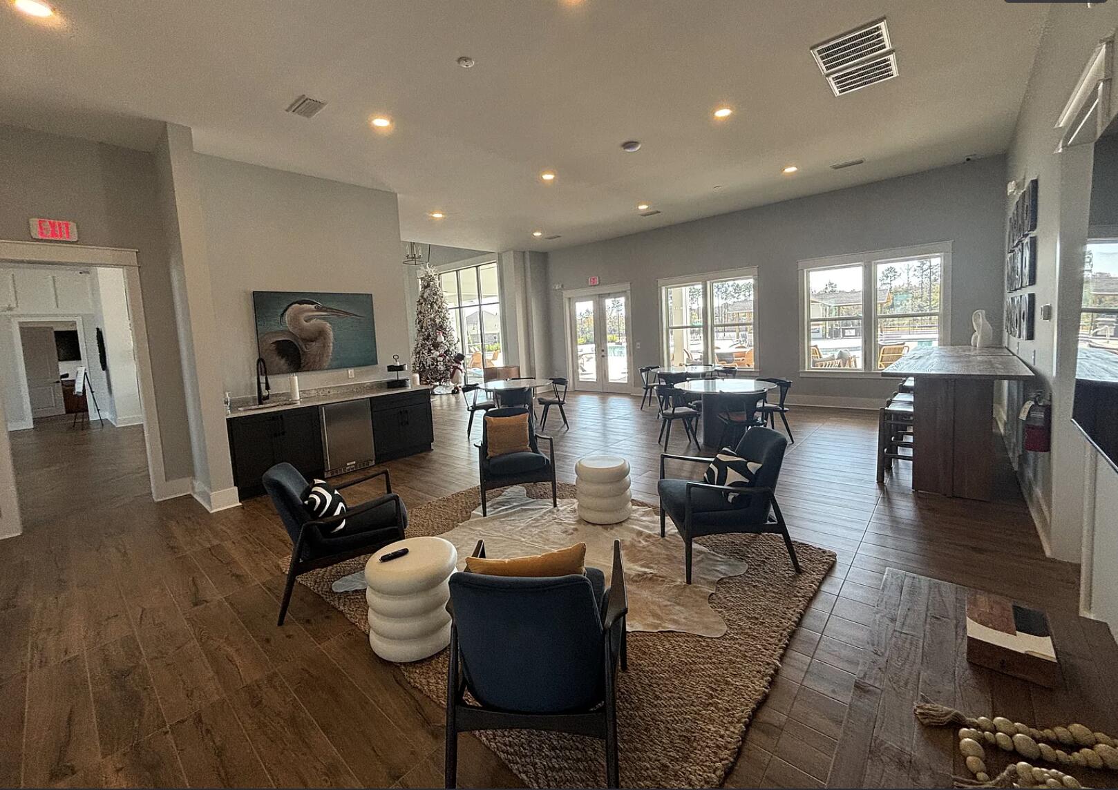 Brand new home in Natureview featuring an open kitchen, dining, and living area with wood-plank tile in main spaces and carpet in two bedrooms. Entry hall leads to two bedrooms with Jack-and-Jill bath. The primary suite includes a coffered ceiling, dual sinks, large walk-in shower, and walk-in closet. Covered front and back porches, epoxy-coated 2-car garage, and yard with sprinkler system on well. Community amenities include fitness center, pickleball and basketball courts, zero-entry pool, playground, and clubhouse.