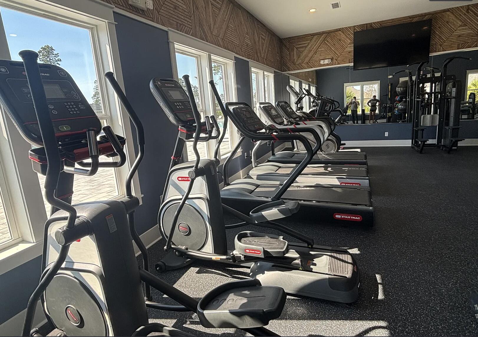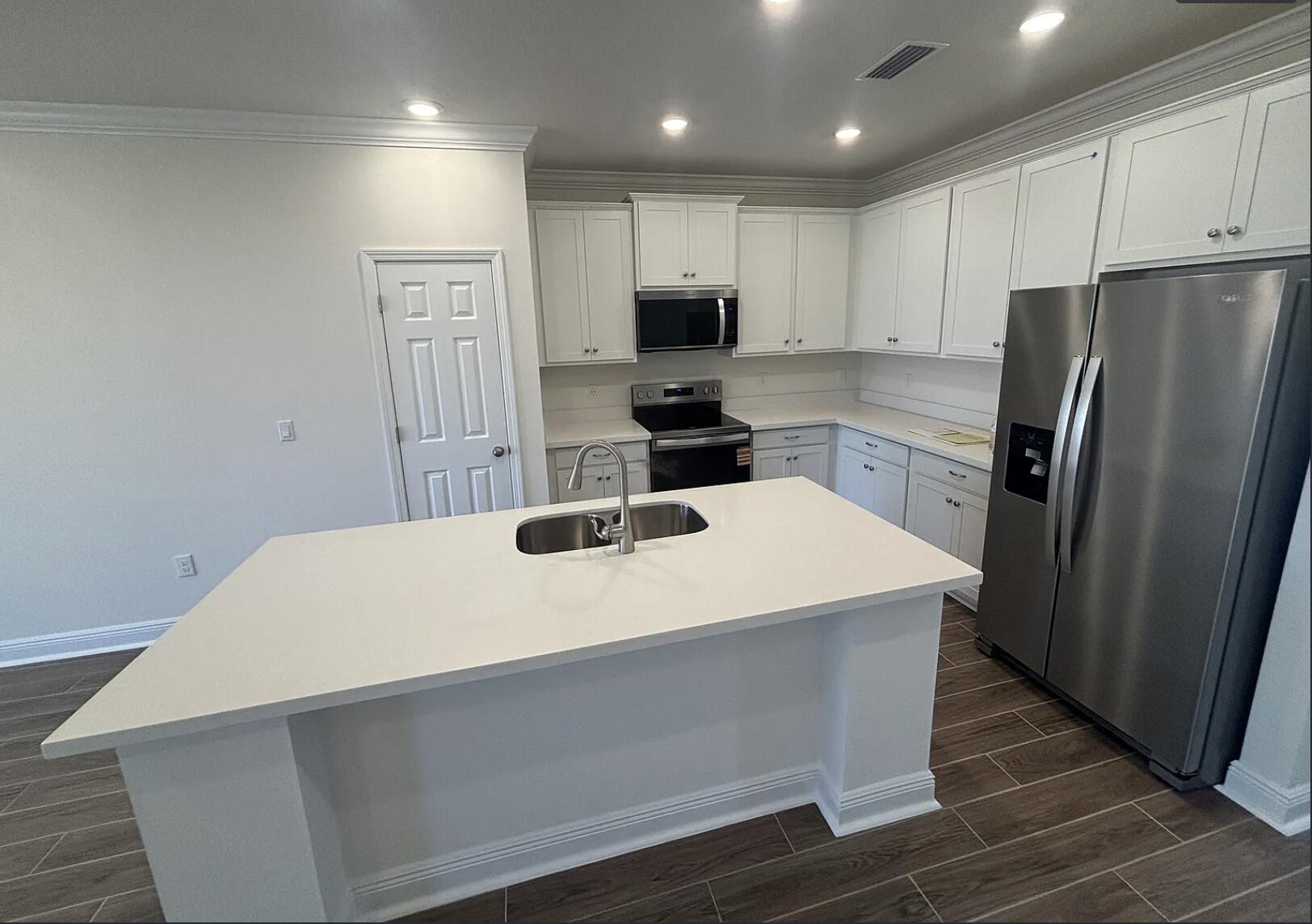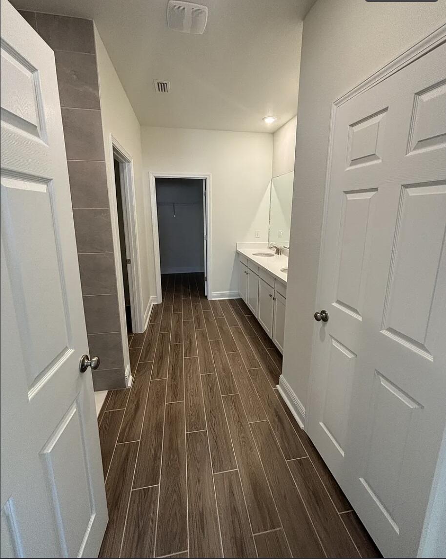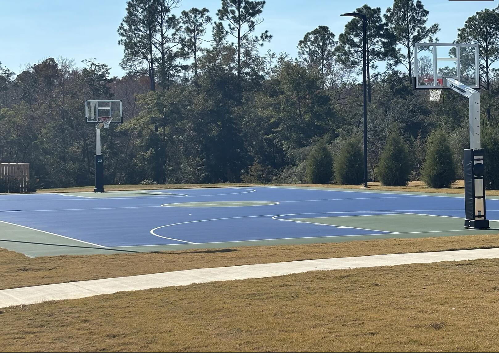 Brand new home in Natureview featuring an open kitchen, dining, and living area with wood-plank tile in main spaces and carpet in two bedrooms. Entry hall leads to two bedrooms with Jack-and-Jill bath. The primary suite includes a coffered ceiling, dual sinks, large walk-in shower, and walk-in closet. Covered front and back porches, epoxy-coated 2-car garage, and yard with sprinkler system on well. Community amenities include fitness center, pickleball and basketball courts, zero-entry pool, playground, and clubhouse.