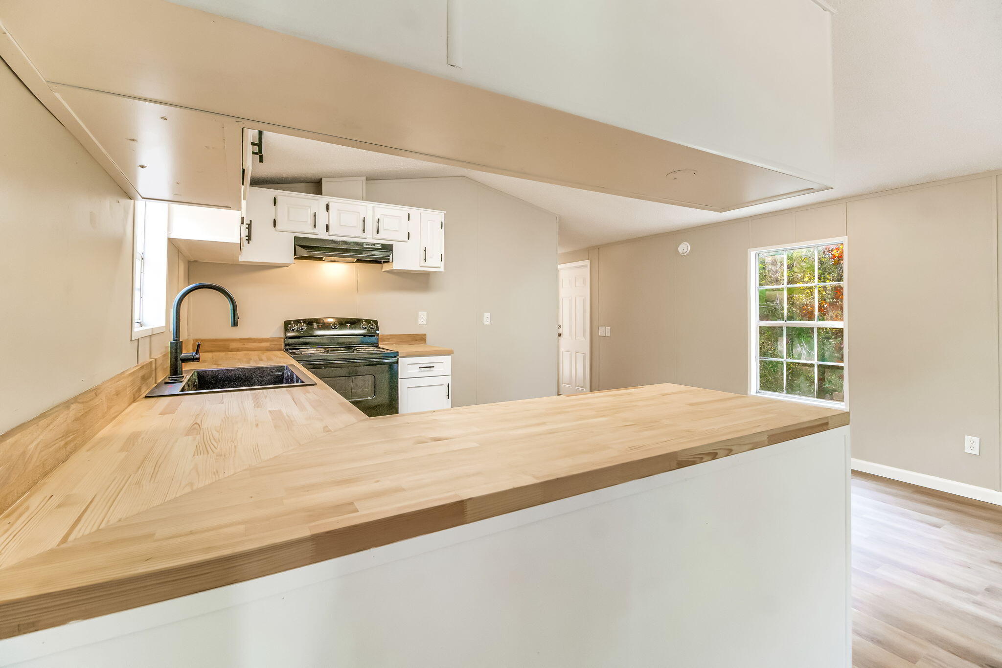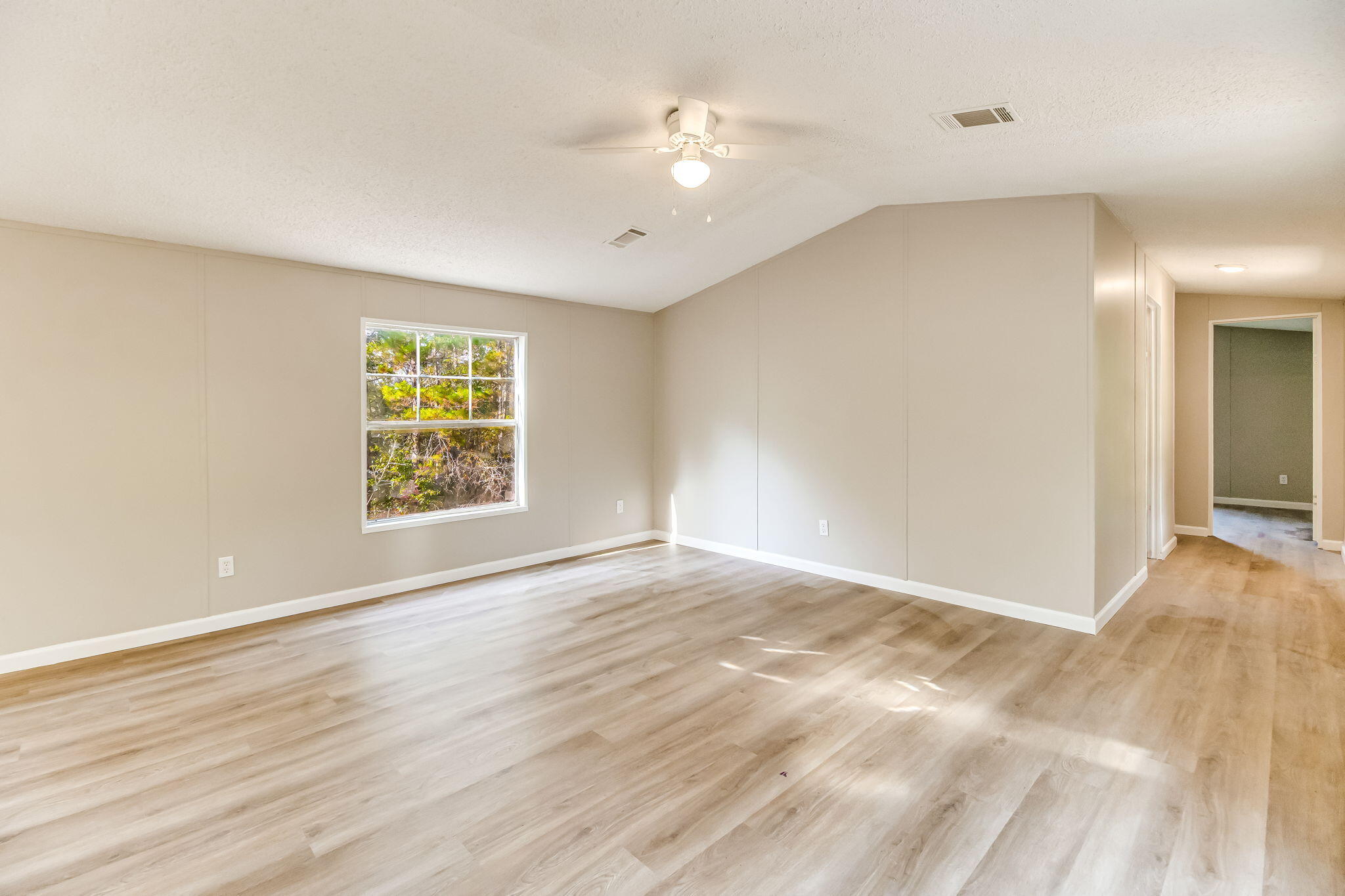This 1997 single-wide manufactured home sits on approximately 1.6 wooded acres on the west side of White Rd. The property will be parceled from a larger parent tract, with a new parcel number and legal description provided at closing. Interior updates completed in 2025 include new flooring and fresh paint throughout. The home offers 1,056 sq ft with 3 bedrooms, 2 full baths, and a septic system. The acreage provides a forested setting with privacy and direct road frontage on White Rd. Aerial drone images provide a full view of the land and surroundings. Buyer to verify parcel boundaries and all final survey details.