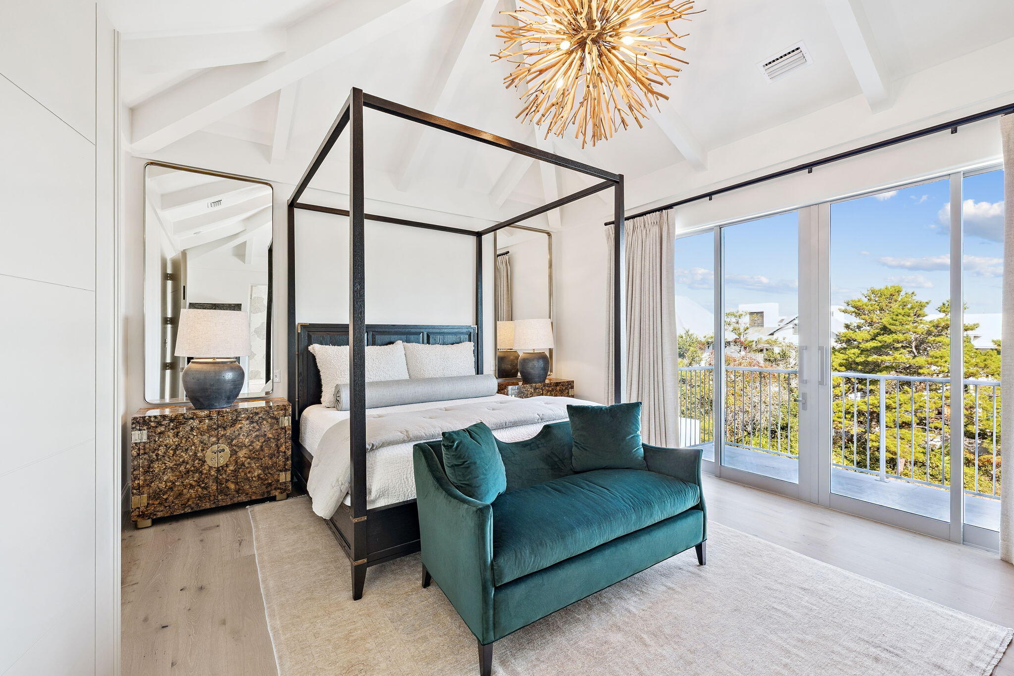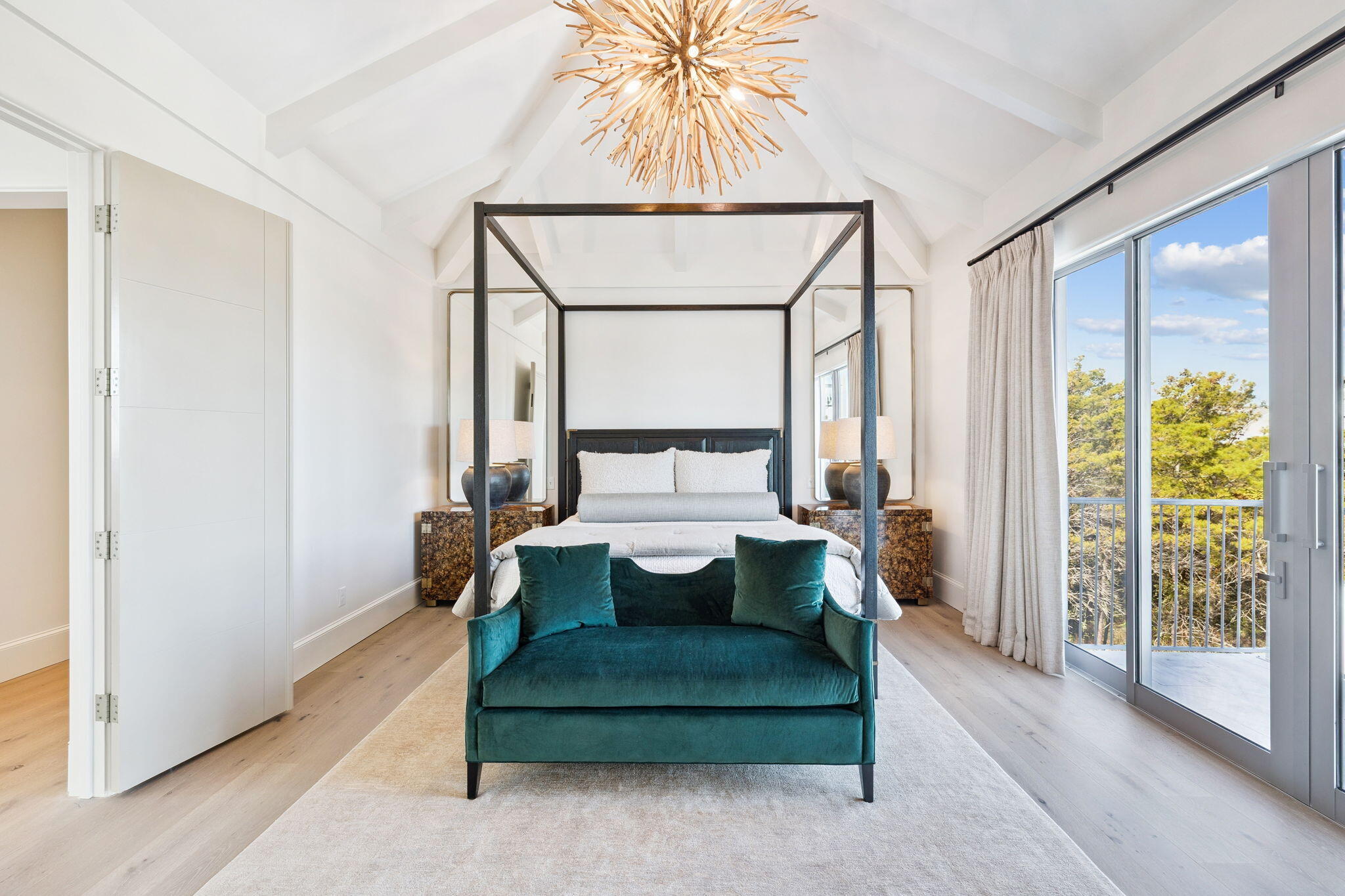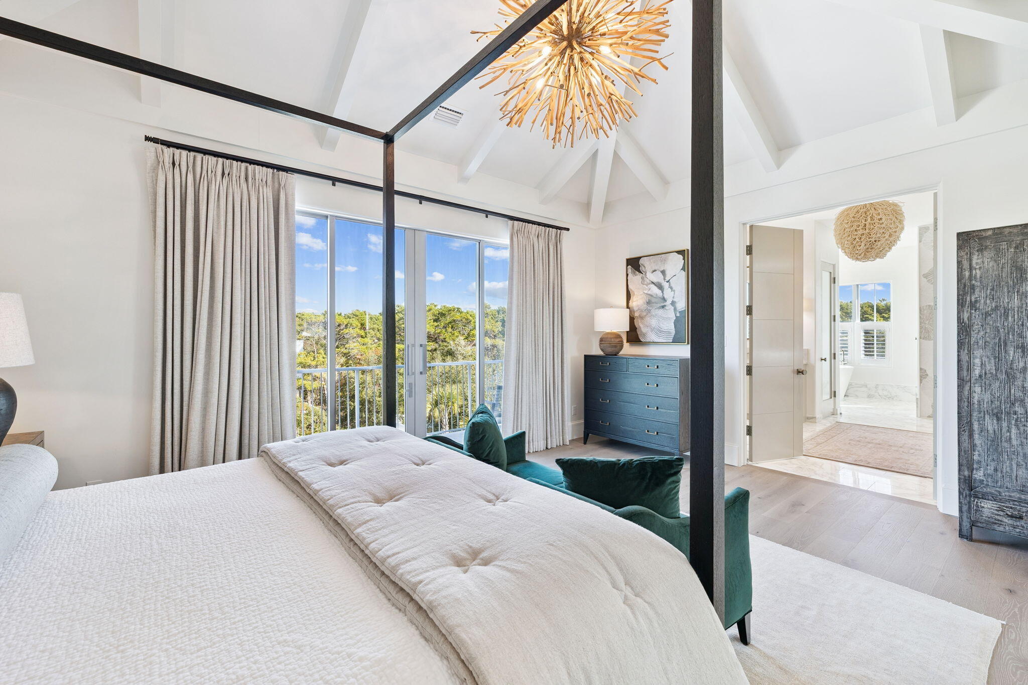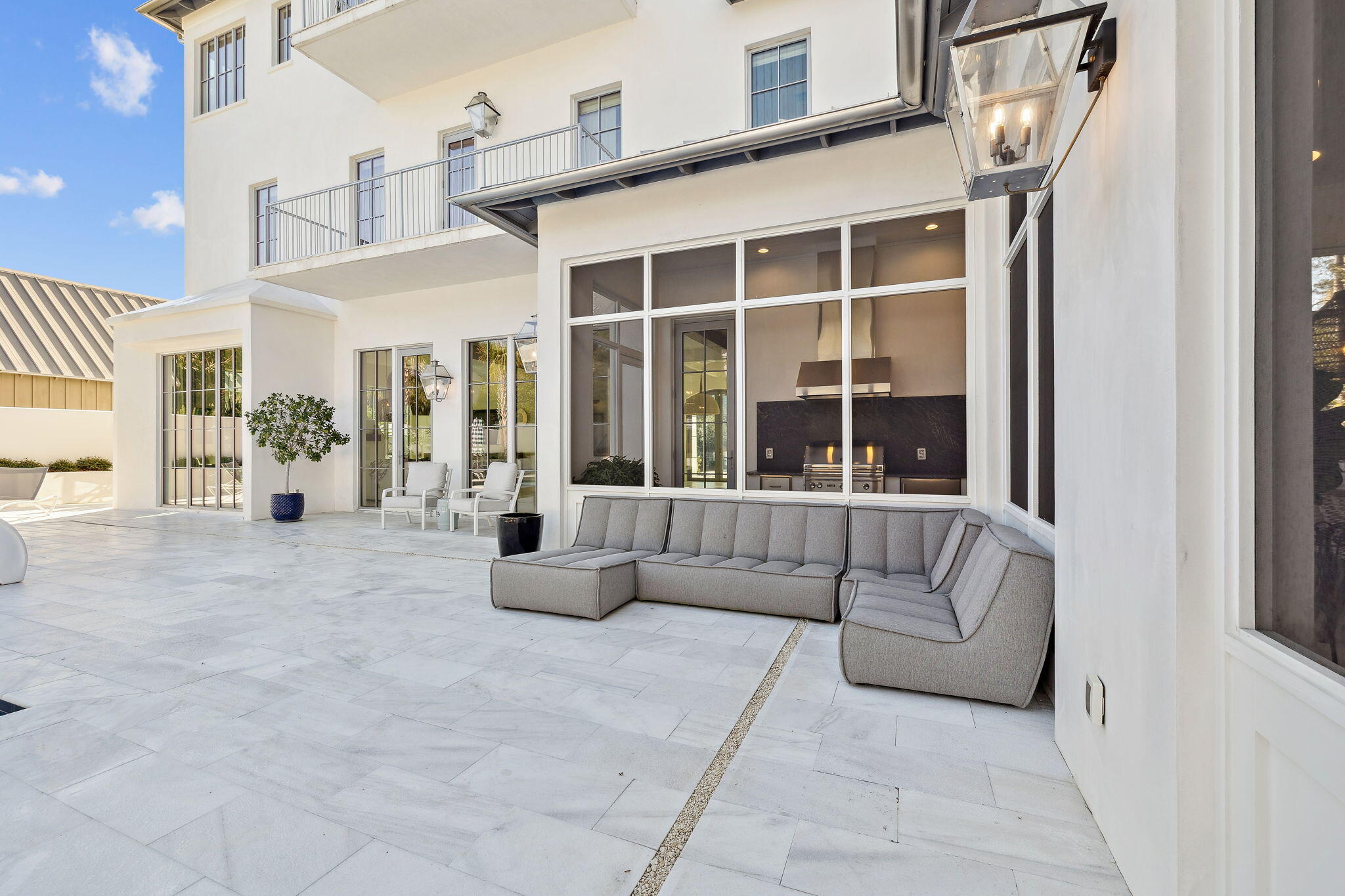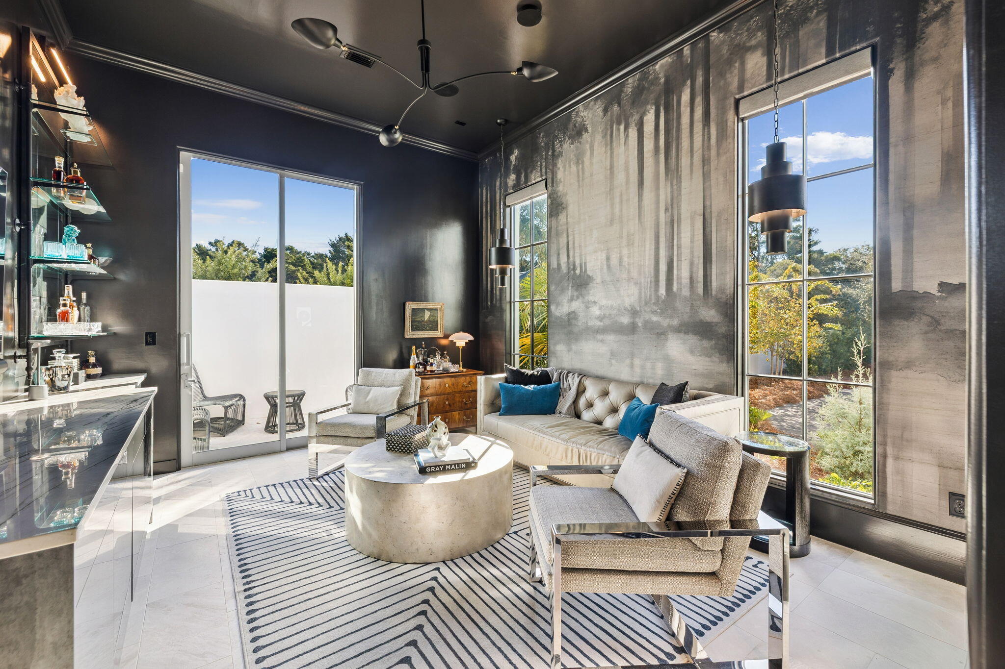 Situated in one of Inlet Beach's premier locations adjacent to Rosemary Beach, this newly constructed residence exemplifies sophisticated architecture and unmatched craftsmanship. Designed by Darrell Russell of A Boheme Design and built by Jared Smartt of Earthbuild Construction, the home spans three levels of refined living on a private, walled, and gated homesite.Constructed to the highest standards, the property features solid concrete construction, a standing seam Galvalume roof, clad impact-rated windows and doors, and coastal-grade gutter systems engineered for durability and minimal maintenance. The climate-controlled two-car garage offers 14.5-foot ceilings, providing ideal clearance for a future vehicle lift. Inside, Diana Royale marble flooring anchors the primary living spaces, complemented by Venetian plaster walls, a groin-vaulted foyer ceiling, and exposed beam details. The expansive great room serves as the heart of the home, flowing seamlessly to the dining area, chef's kitchen, and outdoor living spaces. Just off the great room, a private loungethoughtfully designed as an intimate bourbon roomprovides a refined retreat tailored to the sophisticated gentleman of the family.