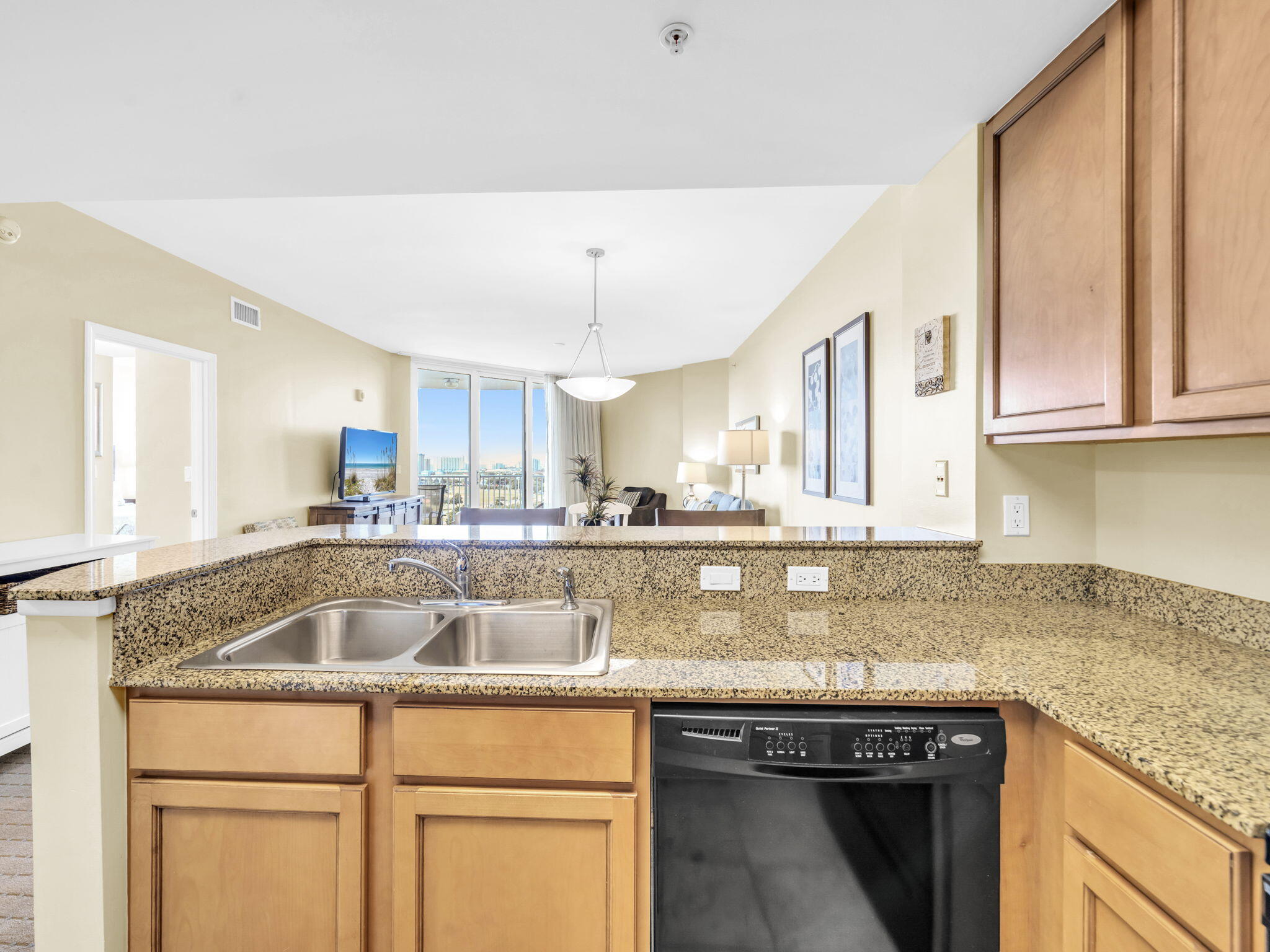 VA assumable loan at 2.25% AVAILABLE! This 11th-floor, west-facing junior two-bedroom residence offers sweeping views of the City of Destin and the Gulf of Mexico PLUS seasonal fireworks over the Destin Harbor from your private balcony. The open-concept living and dining area flows seamlessly onto an expansive, inviting balcony--an ideal place to enjoy the signature sunrises of the Emerald Coast. Residents and guests enjoy a wealth of resort-style amenities, including a beautifully landscaped pool deck featuring Destin's largest lagoon pool with waterfall features, a kiddie pool, hot tub, and splash pad, as well as a playground. Additionally, the complex offers an on-site seasonal restaurant and coffee shop, fitness center, tennis, pickleball, basketball courts, grilling area, and electric vehicle charging stations.