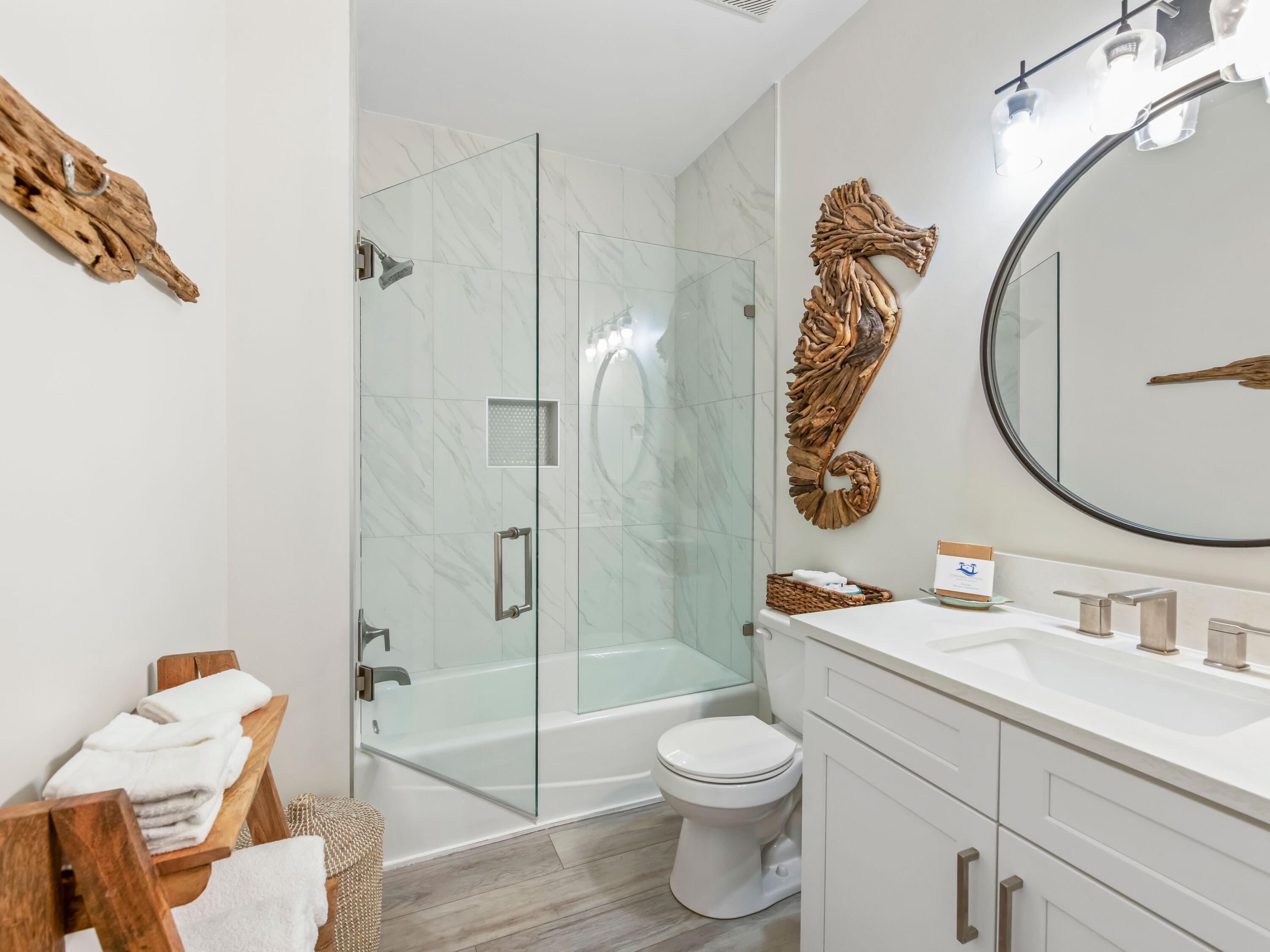 Located south of 30A in Seagrove Beach, this beautifully updated second-floor condo in the highly coveted Palms at Seagrove community is offered fully furnished and turn-key. Just steps from the private beach access, the unit features high-impact sliding doors, an in-unit washer and dryer, and a tastefully renovated kitchen and bathrooms. The spacious primary suite includes a king bed and a private ensuite with a walk-in shower. Additional guests will enjoy the custom twin built-in bunk beds, along with a second full bath featuring a tub/shower combo. Perched atop a 25-ft bluff, the Palms at Seagrove is a low-density, Gulf-front community offering a community pool, a private boardwalk to the beach, and close proximity to the shopping and dining of Seaside, Seagrove, and other nearby 30A hotspots. The community has also recently completed a full exterior renovation, including a new roof, fresh stucco and paint, updated aluminum railings, and new sliding storm doors.