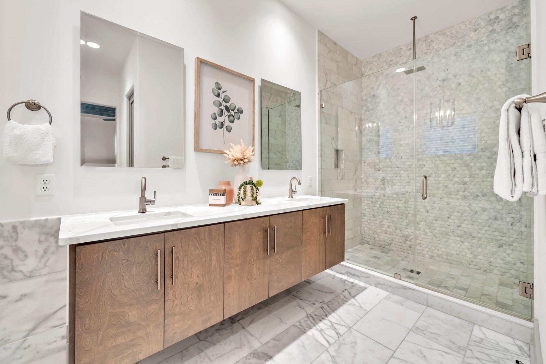 This striking four-level coastal retreat elevates the art of relaxed luxury with thoughtful design and effortless livability just moments from the gulf. A short walk to the shore places you in vacation mode immediately, while the iconic 30A corridor sits only a stone's throw away for dining, shopping, and endless coastal experiences. Inside, the home -- a 2022 build -- unfolds with polished ease, beginning with an open-concept first floor wrapped in hardwood floors, Venetian plaster, and warm stained wood ceilings that add depth and artistry to each gathering space. An entire level is devoted to entertainment, offering a generous lounge anchored by a pool table, wet bar, and built-in conveniences ideal for unwinding after a sun-soaked day. Continue upward to the rooftop deck where incredible gulf views extend the experience and provide a serene perch for morning coffee or sunset conversations. Every floor is designed for comfort, including four bedrooms with private or nearby baths, two king ensuites, a queen ensuite, and a well-appointed bunk room that transforms the home into a welcoming haven for up to 10 guests. This fully furnished residence has been professionally outfitted to function beautifully as a vacation home or investment property. Owners and guests enjoy access to a community pool, gathering room, and a dock on Lake Powell for paddleboarding, kayaking, and quiet mornings on the water. With its rare combination of upscale finishes, thoughtful amenities, and rooftop gulf vistas, this home offers a coastal escape that draws you back year after year.