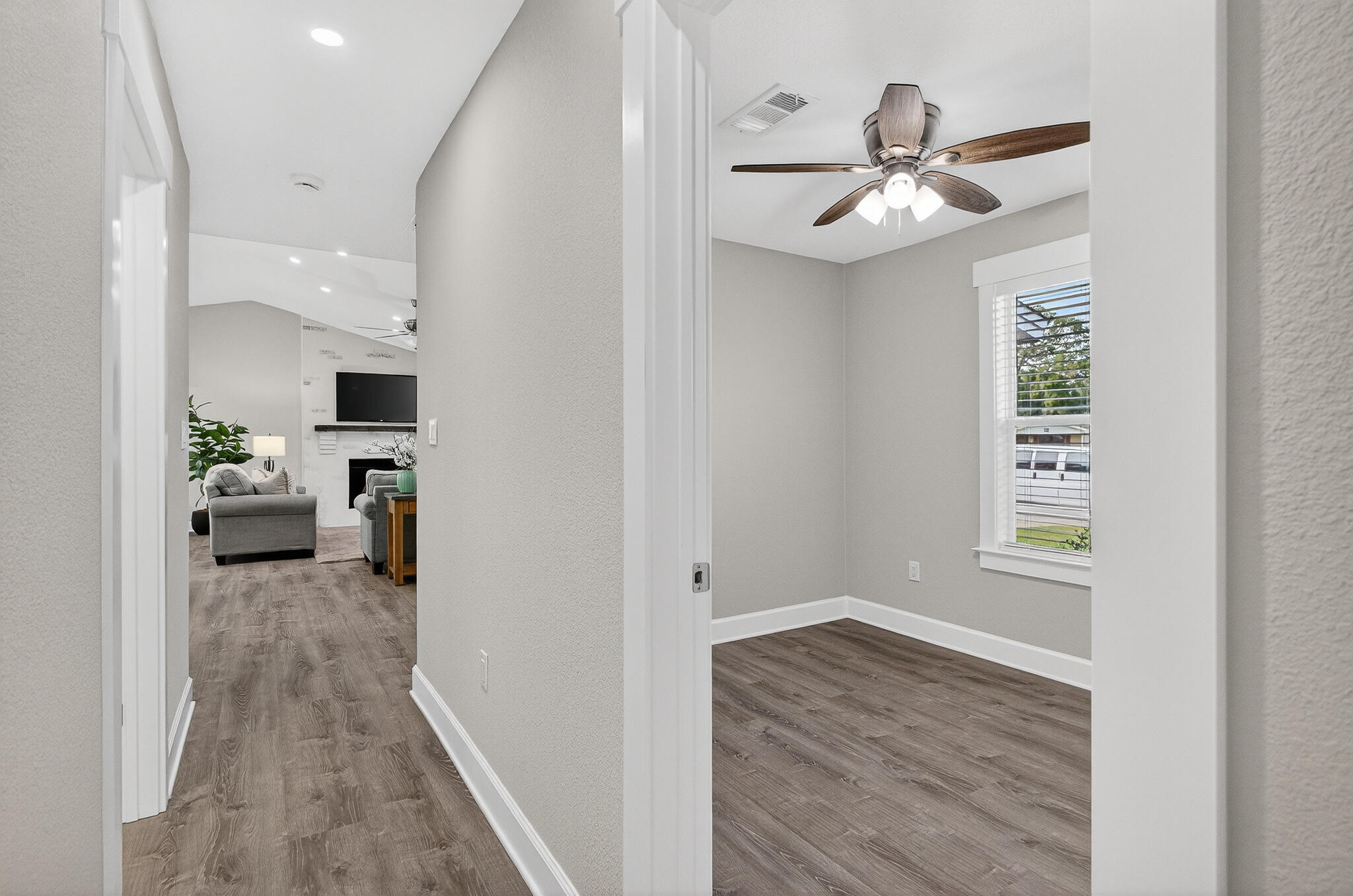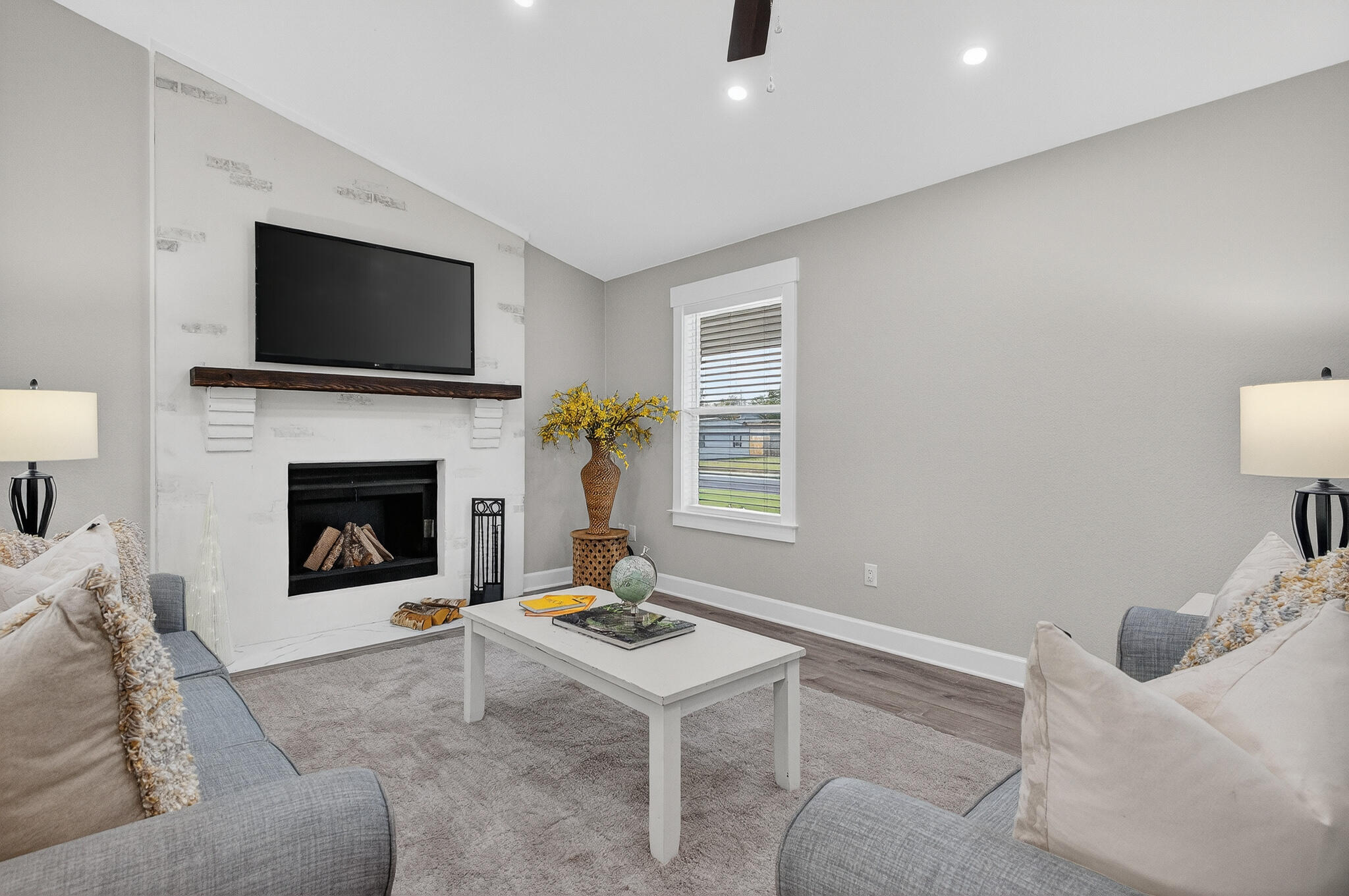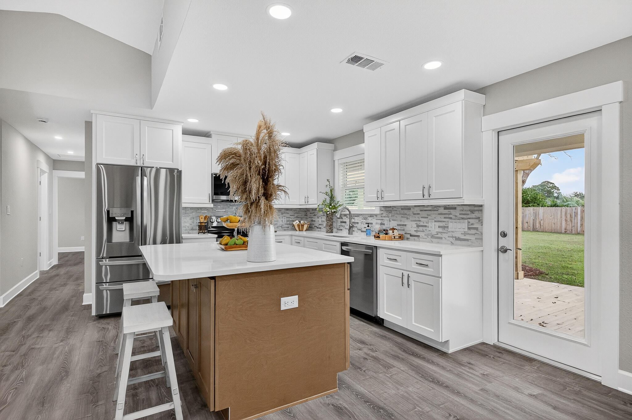 Charming and beautiful updated home within 2 miles of Hurlburt Field AFB. This stunning remodeled home offers stylish upgrades perfect for relaxing, entertaining, or simply enjoying every day in comfort and style. Step through the front door into a bright, open-concept living space with fresh paint, luxury vinyl plank flooring, and abundant natural light throughout. The fully updated kitchen includes new stainless steel appliances, quartz countertops, modern cabinetry, and a large island with seating--ideal for hosting guests or enjoying casual family meals. The home features 3 spacious bedrooms and 2 beautifully renovated bathrooms. Home has new roof, HVAC, water heater, windows, doors.The backyard is fully fenced and features new landscaping, creating a peaceful, low-maintenance retreat.