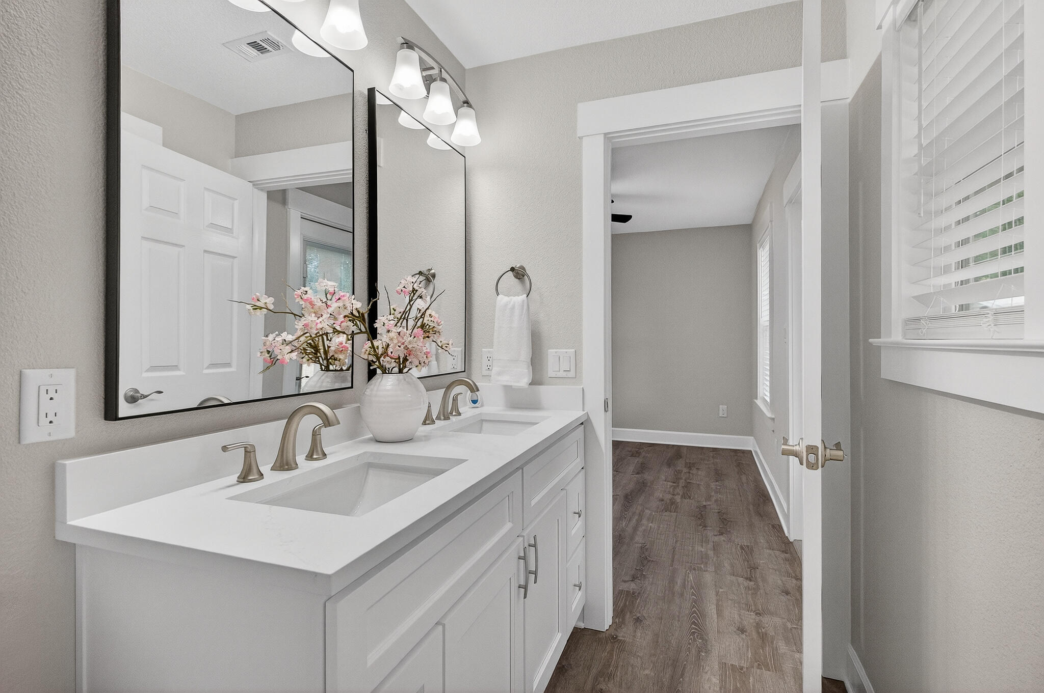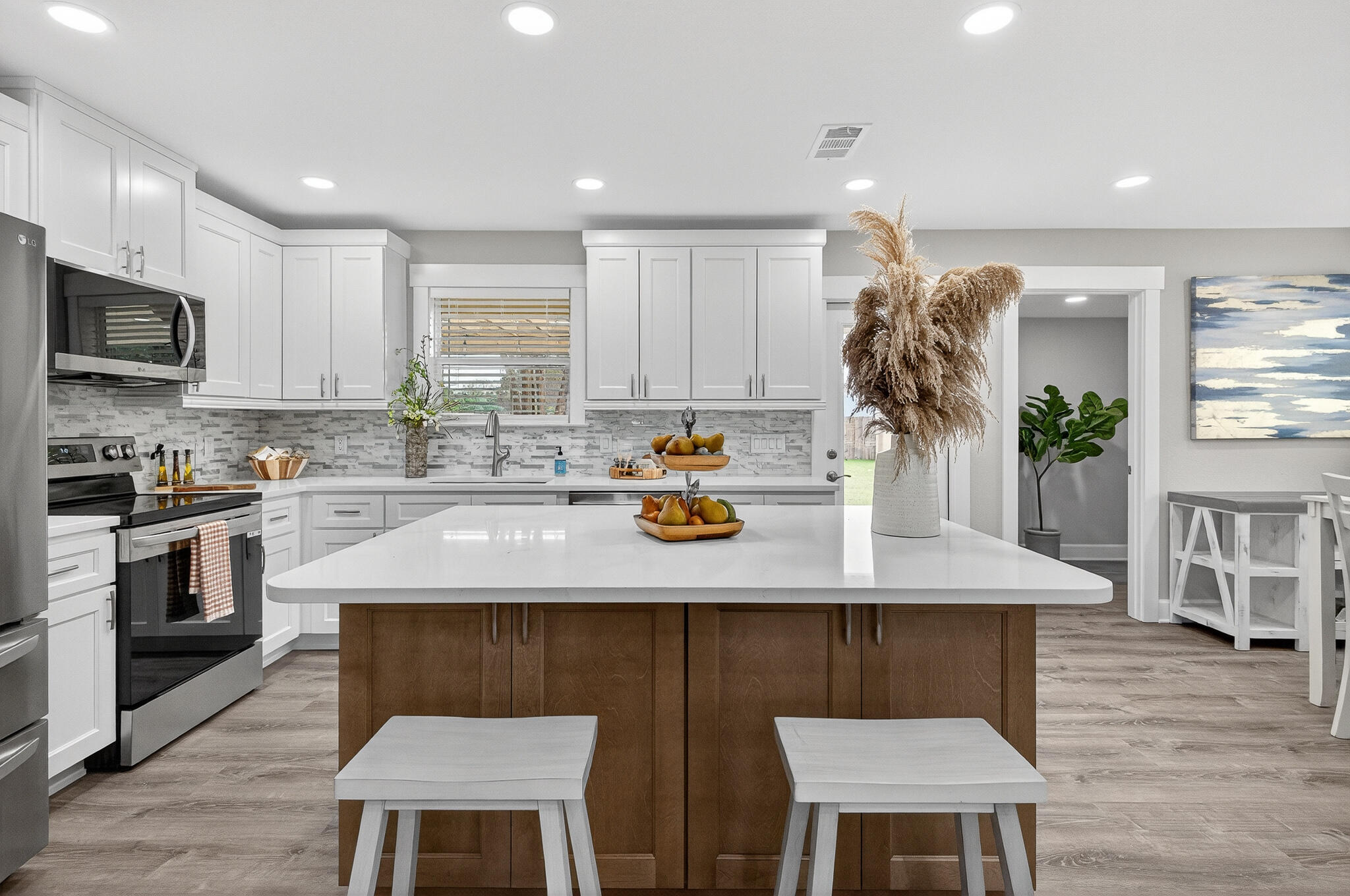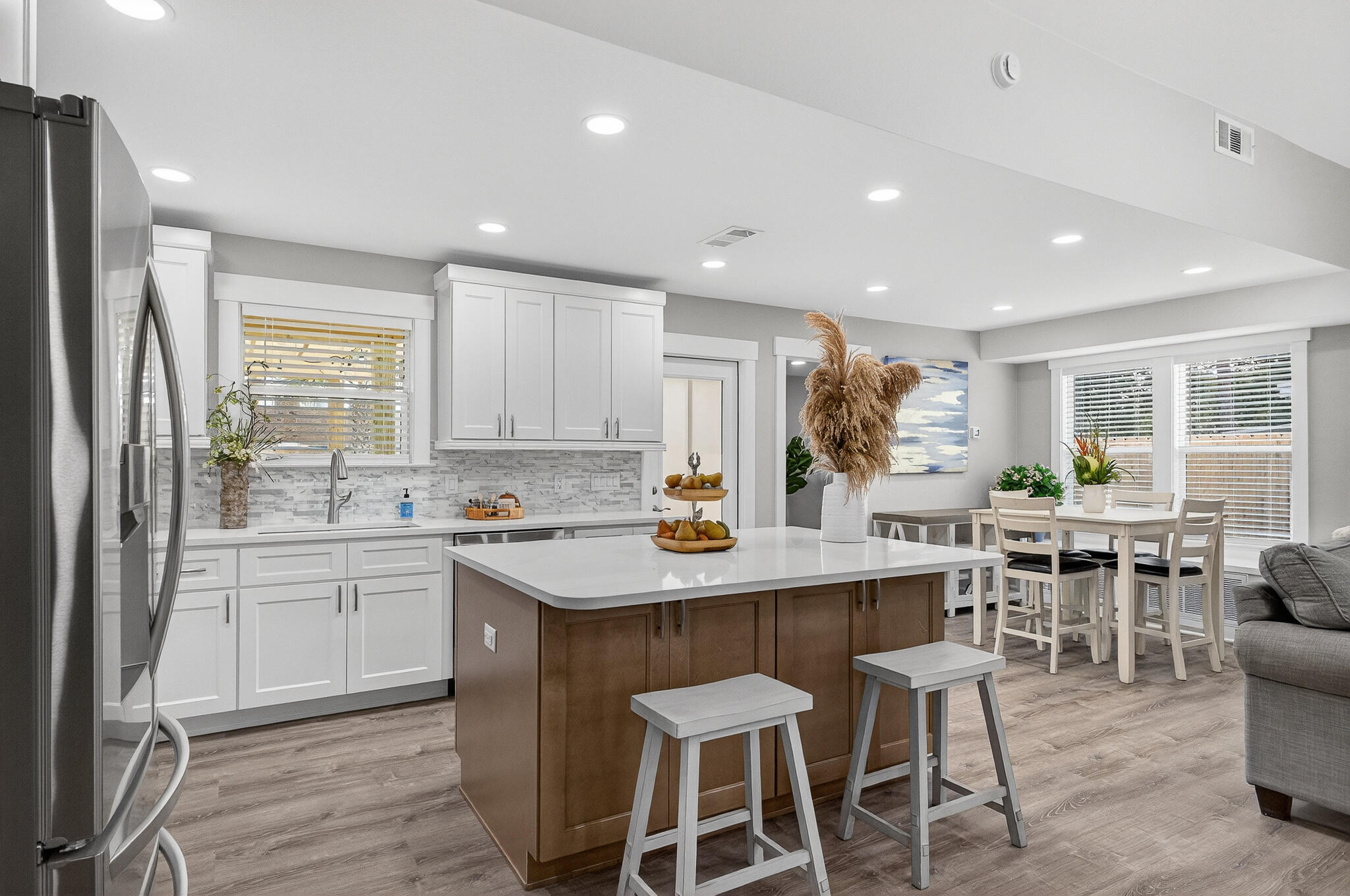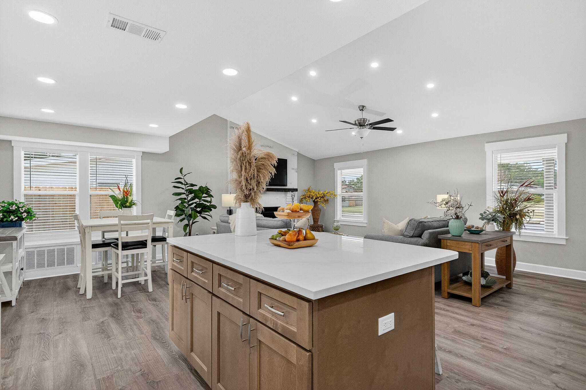 Charming and beautiful updated home within 2 miles of Hurlburt Field AFB. This stunning remodeled home offers stylish upgrades perfect for relaxing, entertaining, or simply enjoying every day in comfort and style. Step through the front door into a bright, open-concept living space with fresh paint, luxury vinyl plank flooring, and abundant natural light throughout. The fully updated kitchen includes new stainless steel appliances, quartz countertops, modern cabinetry, and a large island with seating--ideal for hosting guests or enjoying casual family meals. The home features 3 spacious bedrooms and 2 beautifully renovated bathrooms. Home has new roof, HVAC, water heater, windows, doors.The backyard is fully fenced and features new landscaping, creating a peaceful, low-maintenance retreat.