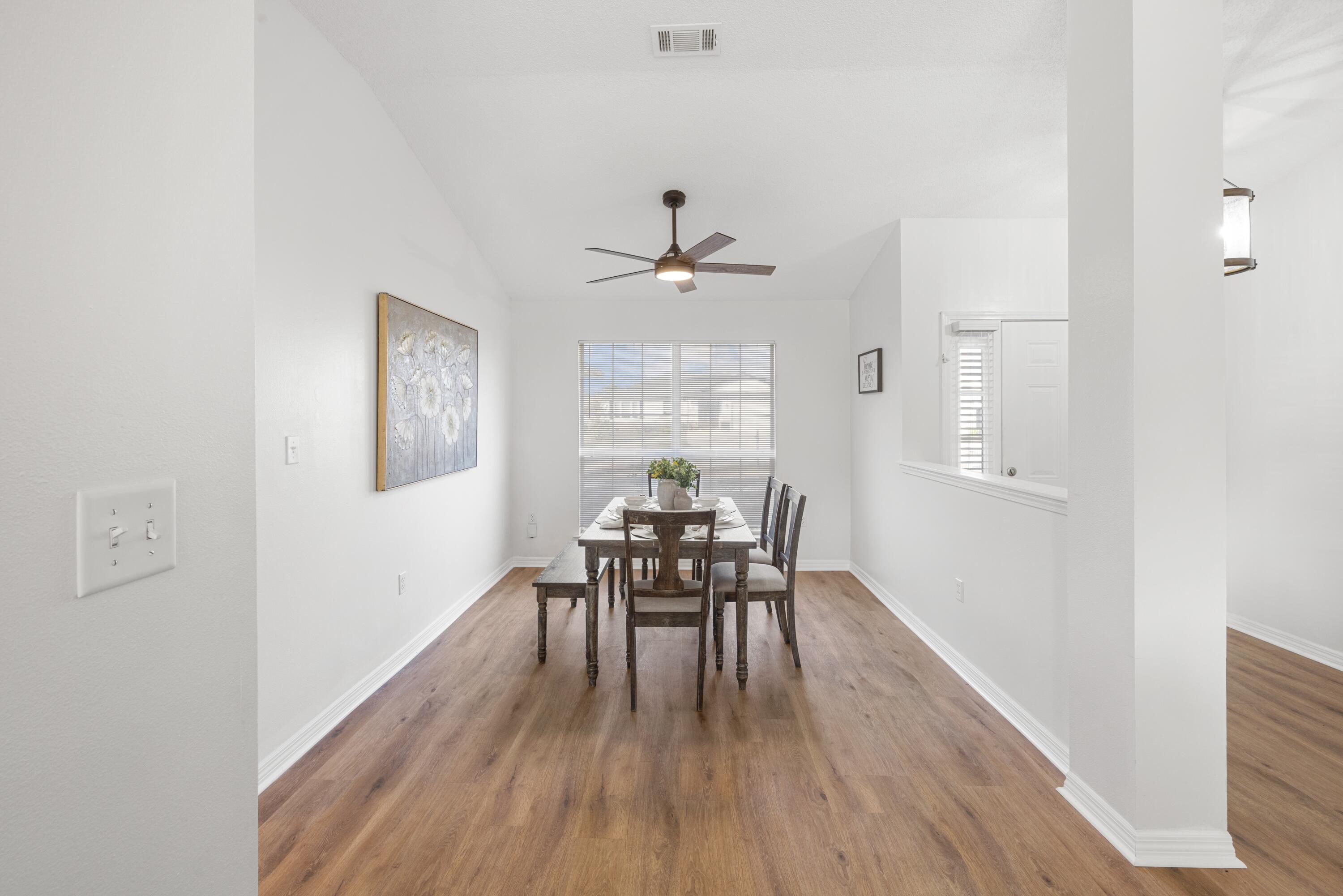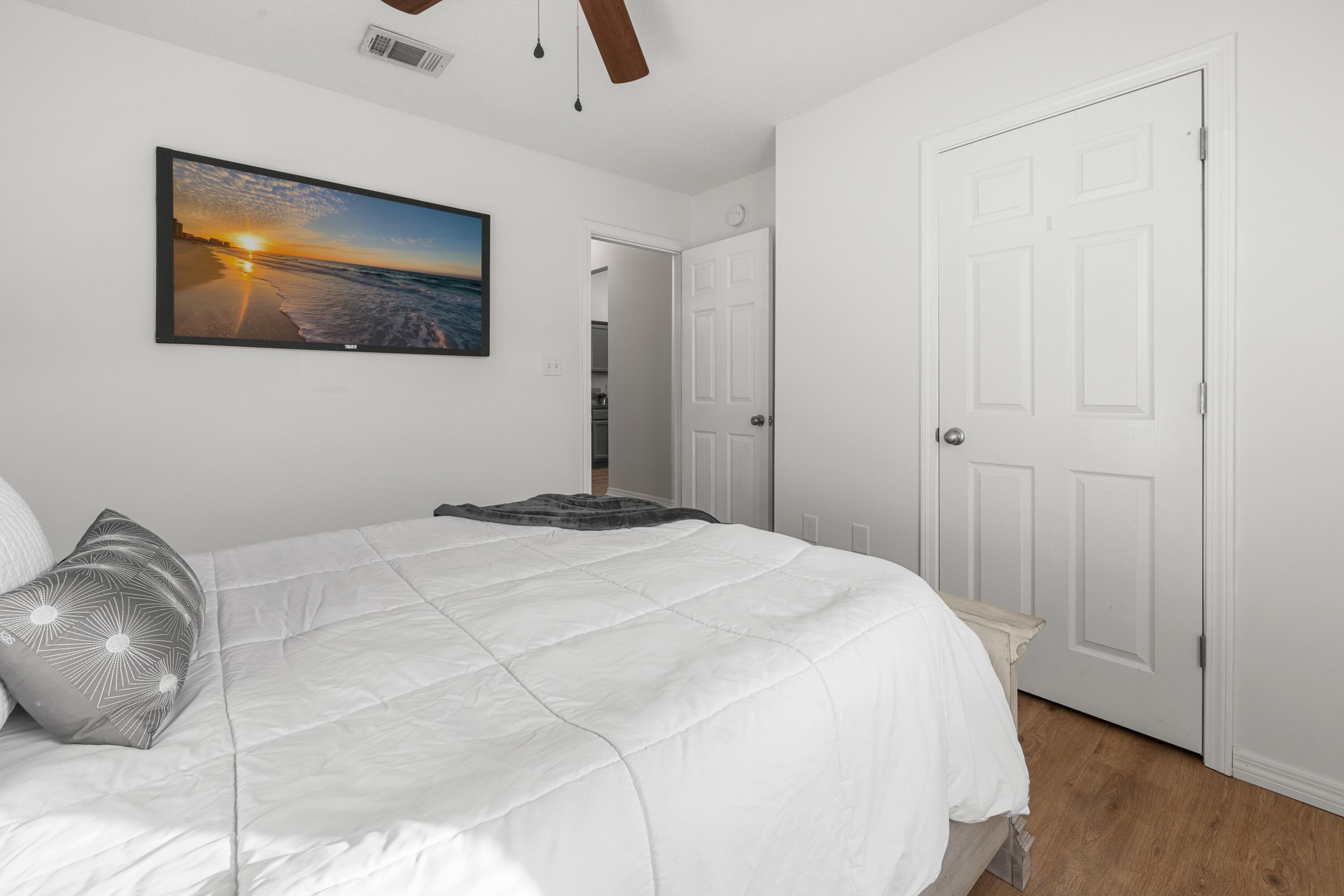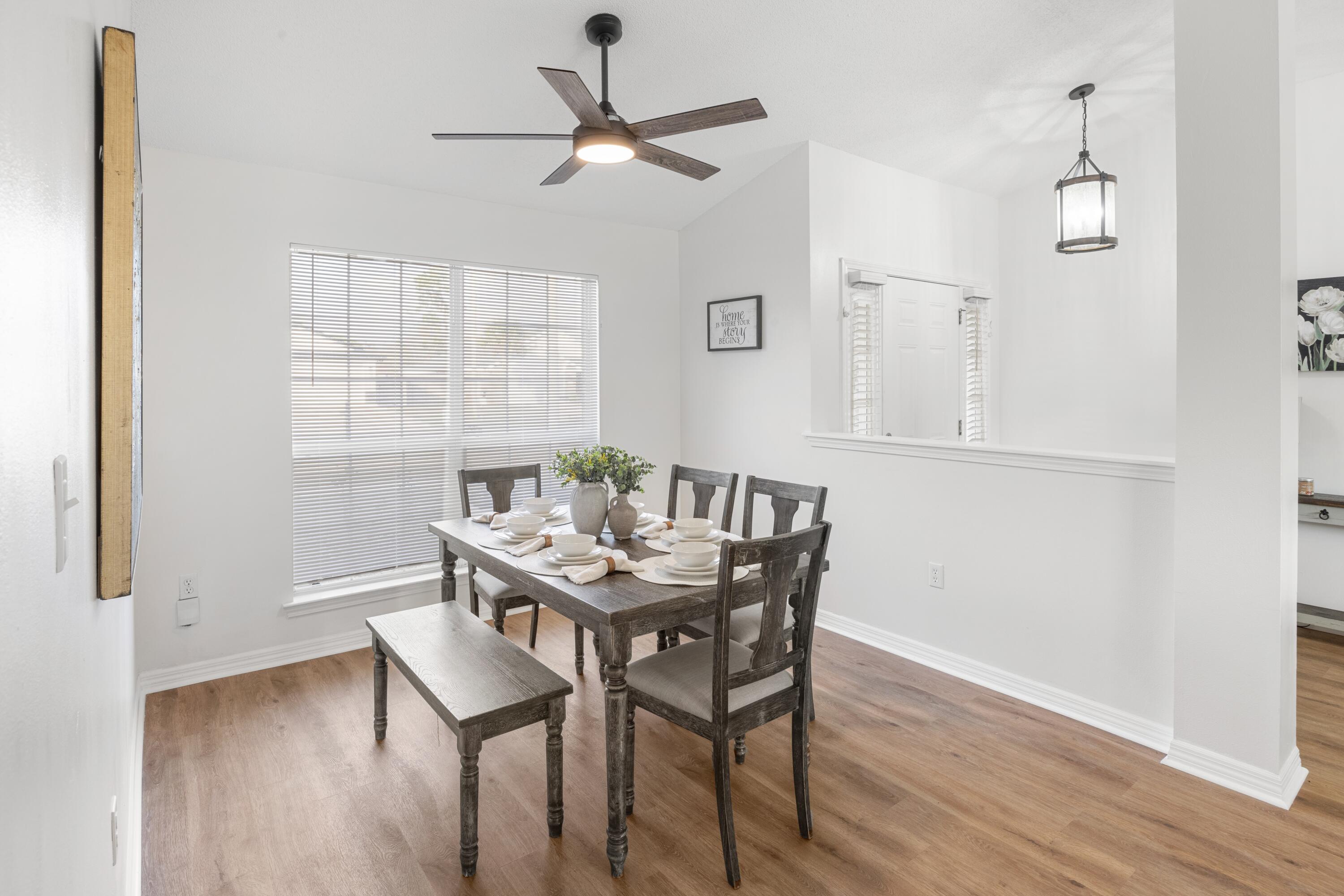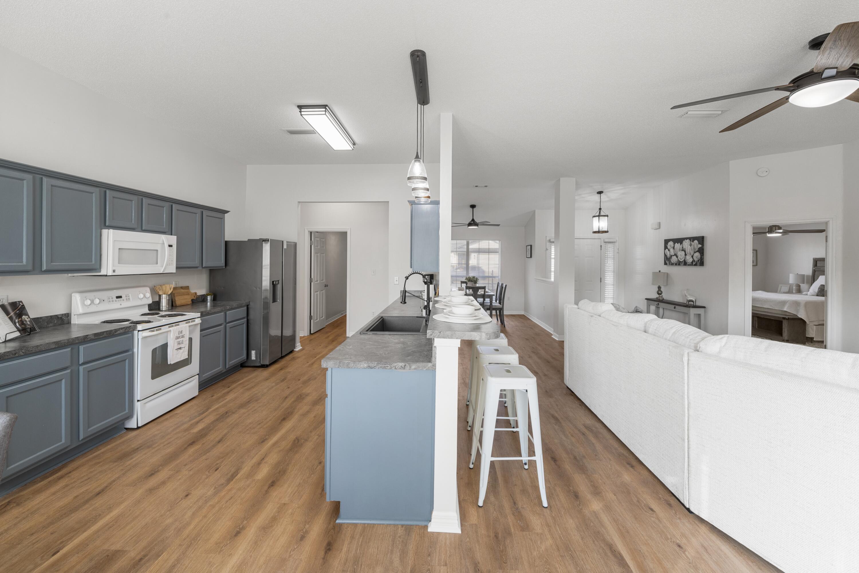 VA Assumable at 5.5%. This beautifully updated 3-bedroom, 2-bath home in Navarre offers an unbeatable location just a five-minute walk to Navarre High School and a ten-minute walk to the YMCA, with quick access to Publix, Walmart, and Hwy 87 for an easy commute to I-10. Major updates include a roof replacement in 2021, an HVAC system replaced in May 2023 with UV sanitization and a smart thermostat, and a termite bond added in October 2025. The interior features Stain Master 20-mil LVP flooring throughout, all new paint, high ceilings, and updated light fixtures, ceiling fans, and matching hardware and hinges on every door. The kitchen offers a functional layout with a breakfast bar, breakfast nook, and dedicated dining area, along with a black single-basin sink, pantry closet, and a garbage disposal added in January 2024. The primary suite includes both a walk-in and traditional closet, an updated master shower, and a double vanity. The second bathroom has also been refreshed with updated tile, vanity, mirror, and toilet. Additional conveniences include a large-capacity washer and dryer purchased in 2023 and garage shelving for organized storage. A fire hydrant located behind the home and a storm drain in the front yard provide added peace of mind, with no flooding issues. With its prime central location and extensive list of upgrades, this home offers comfort, convenience, and long-term value.