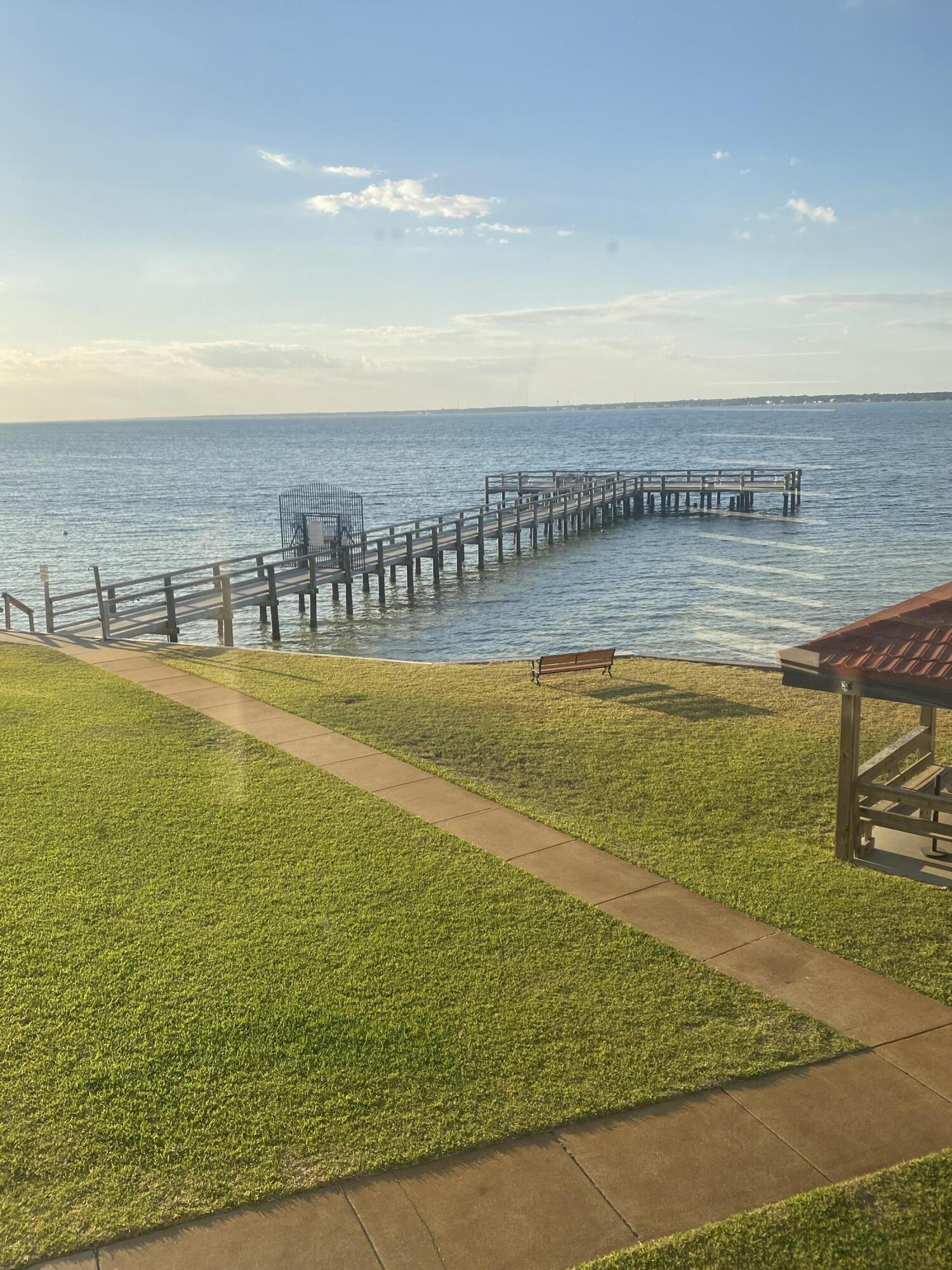 Drive down White Sands Blvd on Navarre Beach and turn into Sunset Harbor Drive. Unit on water, building 1