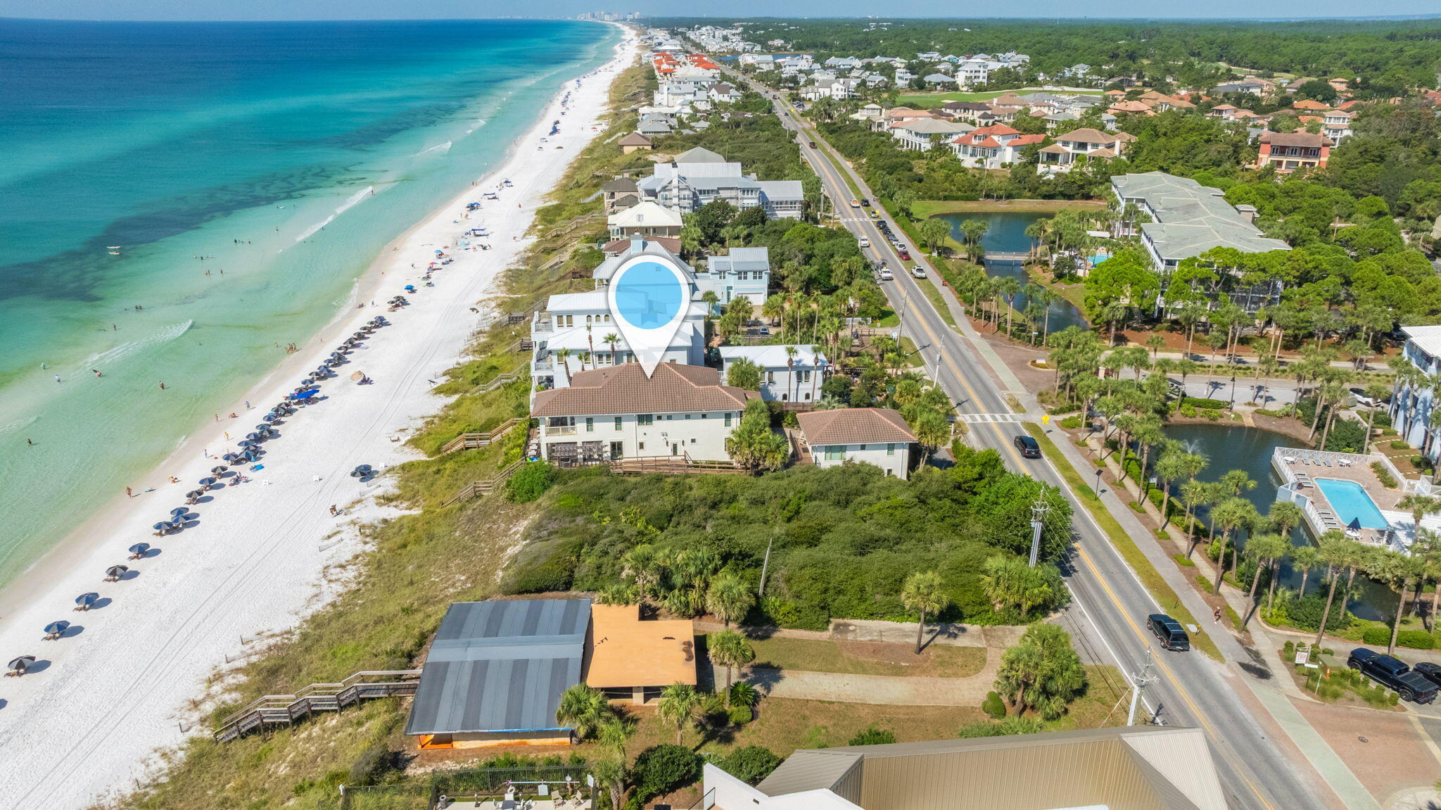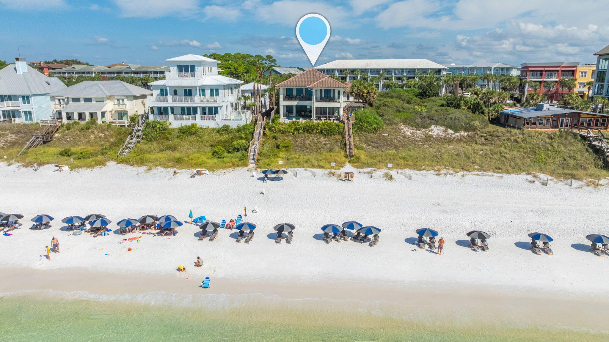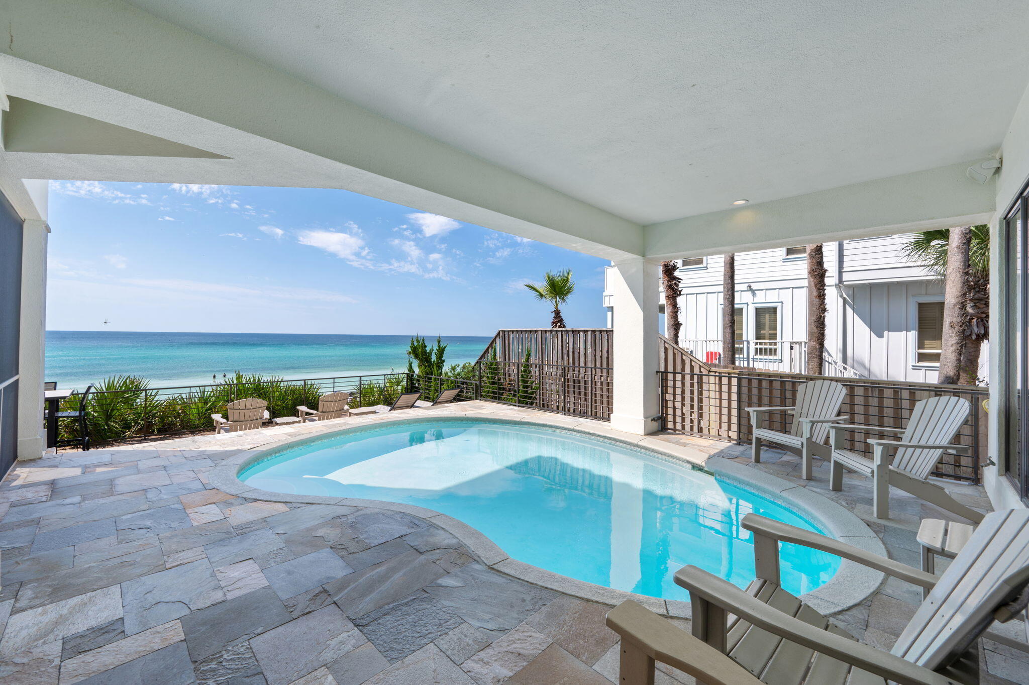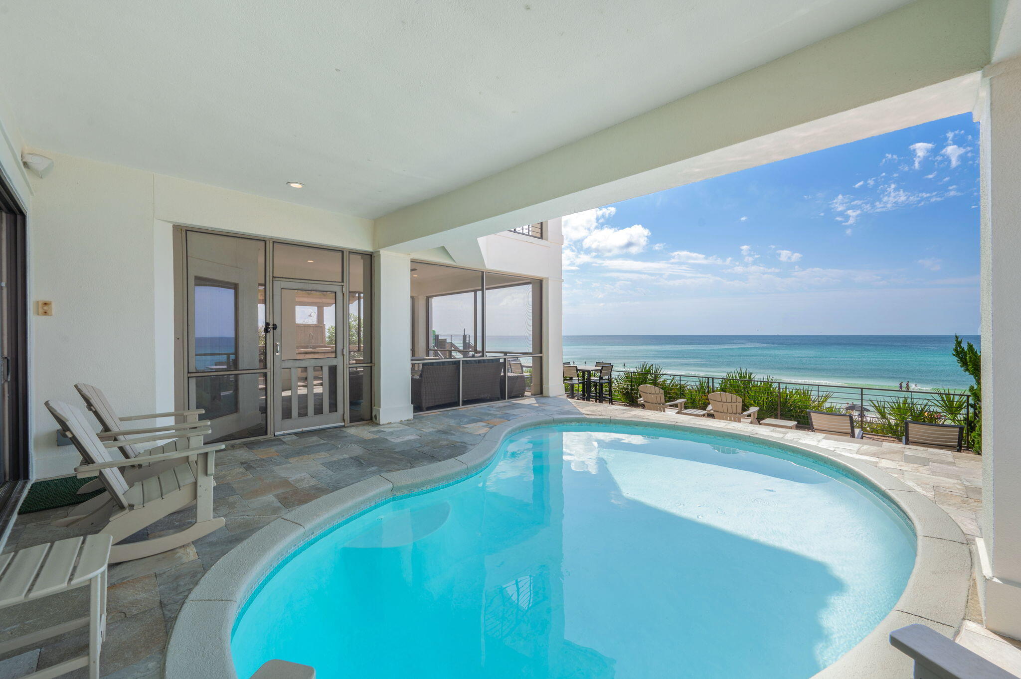 A Premier Opportunity to purchase an Extraordinary Gulf Front Estate With a Carriage House and 75 Feet of Private Beach Front on Scenic Highway 30A! This remarkable Gulf-front residence has multiple years of proven vacation rental income, with actuals, into the $700's and Sleeps up to 26! The breathtaking Gulf views from the Kitchen, Living Area, Dining and Bedrooms make this home spectacular! The gourmet kitchen is appointed with two refrigerators, and a massive breakfast bar, A commercial grade built-in ice machine is on the main as well as two large suites with ensuite baths. An expansive master suite and bath, private pool, and a carriage house with 2 bed/baths! Premium location at Hwy 30A/393 with an array of restaurants & shops available close by! Gorgeous past weddings and events!