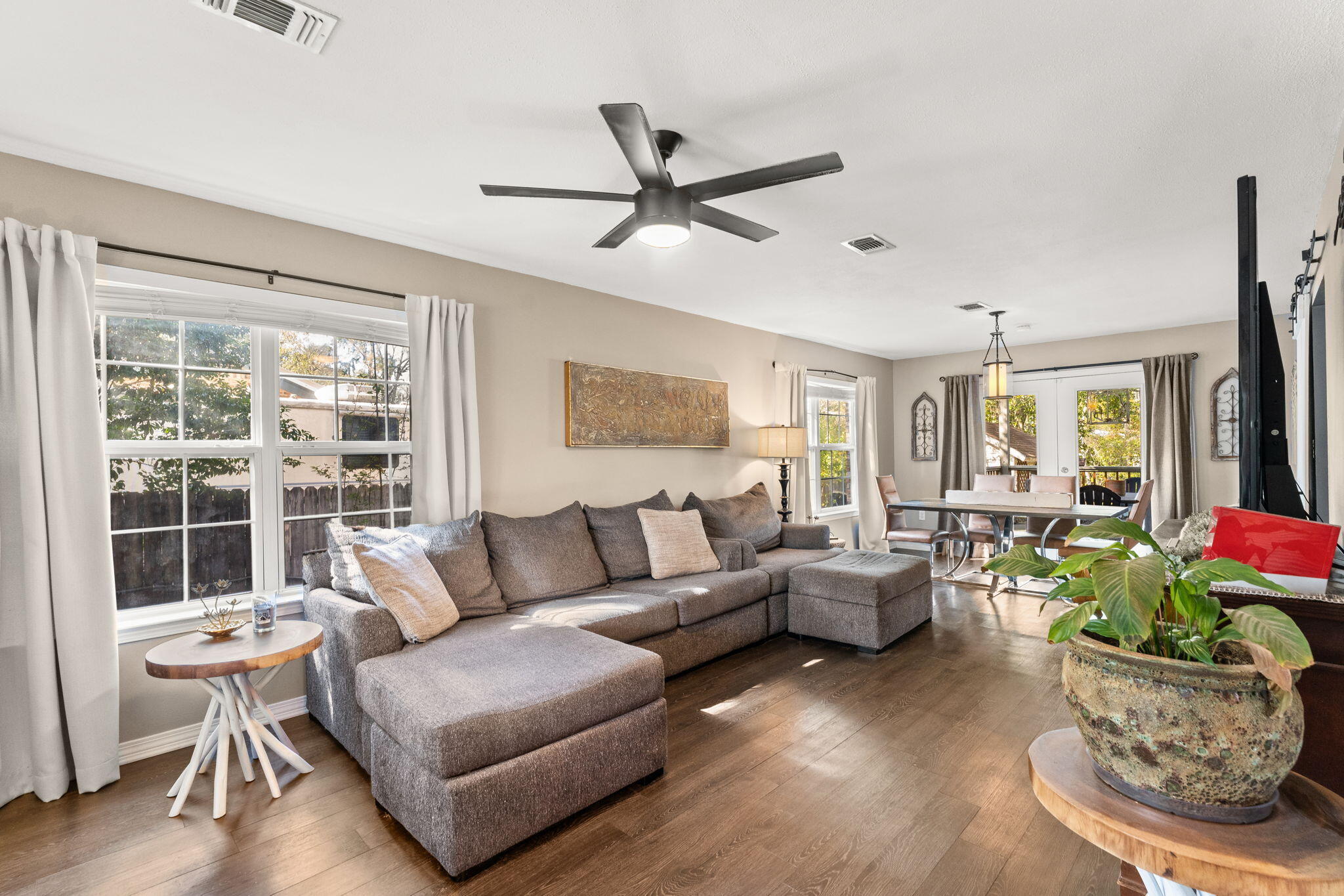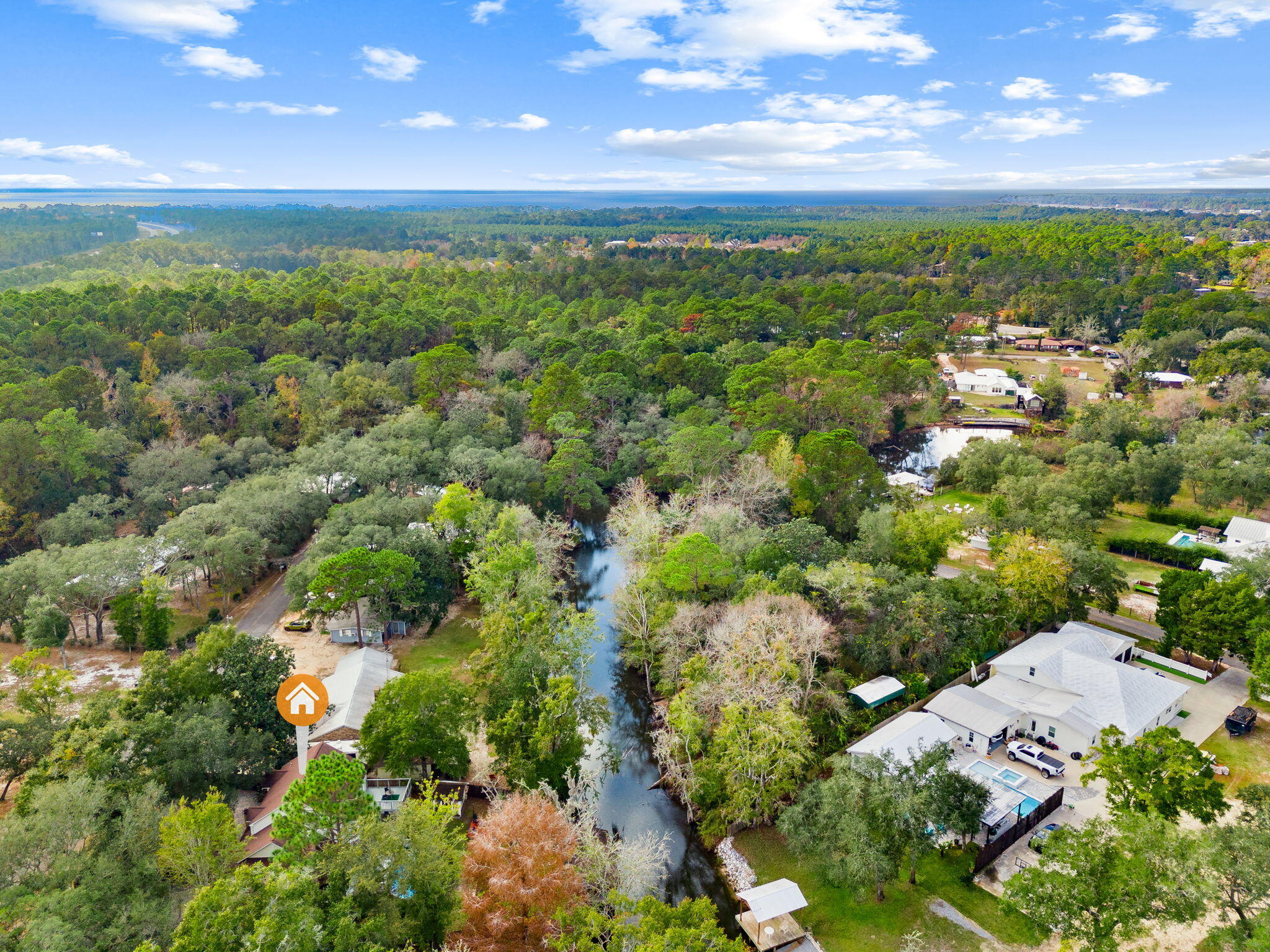WATERFRONT Home! CONVENIENTLY located just minutes from the beaches of 30A and a short boat ride down the canal to Mallet Bayou and Choctawhatchee Bay. On a private no-through street. Southern style home with a well cultivated front courtyard, mature live oak trees and relaxing Koi pond. Back yard features an expansive deck off the house and a dock on the canal with a boat lift, ready for your boating adventures. Walking through the front door you get that grand entrance feeling in the foyer and notice the beautiful custom lighting. LVP flooring throughout whole home. Kitchen is open concept with sitting area and breakfast nook attached, along with a wood burning fireplace in the sitting area. Formal living space and dining room are adjacent for great entertainment options. A half bath is also conveniently located downstairs for easy guest access.