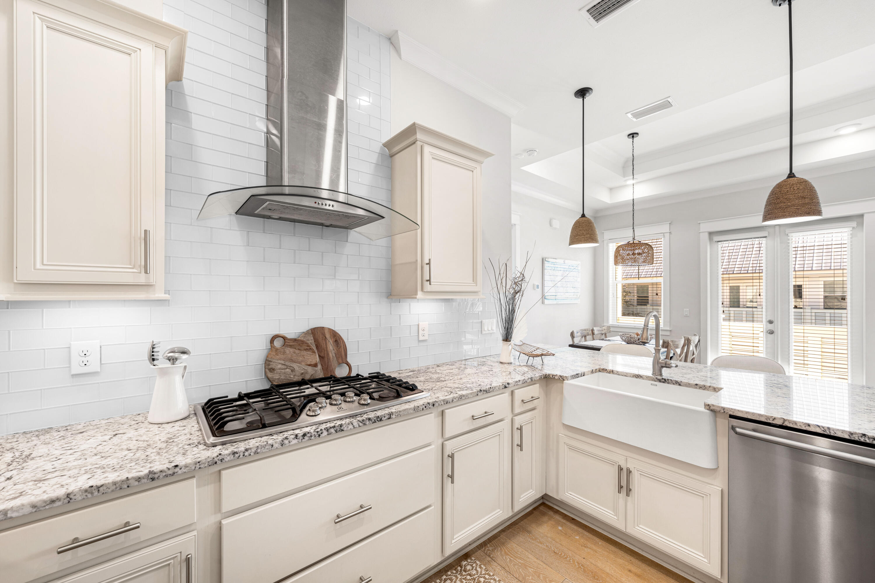 Backing up to the state park and nestled within a prime location in Prominence North, this (2) bedroom, (2) bath, and (1)-car garage corner/end unit offers privacy with quick access to resort-style community amenities, The Big Chill, and Watersound Beach Club. An expertly designed Phase 4 ''C'' unit featuring premium upgrades such as high-end finishes/fixtures, upgraded stainless steel appliances, farmhouse kitchen sink, hardwood and tile flooring, custom soft-close cabinetry, granite countertops, subway tile backsplash, professional LED lighting/window treatments, 10-12 ft coffered ceilings with 8 ft doors, crown molding, smart home system, and rainmaker shower in master bath. Don't wait on this highly sought-after location in Prominence, claim your coastal paradise on 30A today. The open floor plan features a bright and welcoming space filled with natural light from its window lined wall and French doors that lead to an expansive covered patio. The gourmet kitchen is complete with subway tile backsplash, stainless steel appliances, farmhouse sink, custom cabinetry with soft close cabinets, gas cook-top, dazzling granite counters with a large bar/counter space for extra seating and entertaining space. The primary and guest bedrooms will be found on either side of the home. The primary bedroom includes an ensuite bathroom with granite counters, dual vanity sinks, frameless glass shower with rainmaker shower heads and a large walk-in closet. Your paradise in Prominence on 30A starts at the doorstep of this luxurious coastal unit. Claim your piece of paradise in Prominence today!