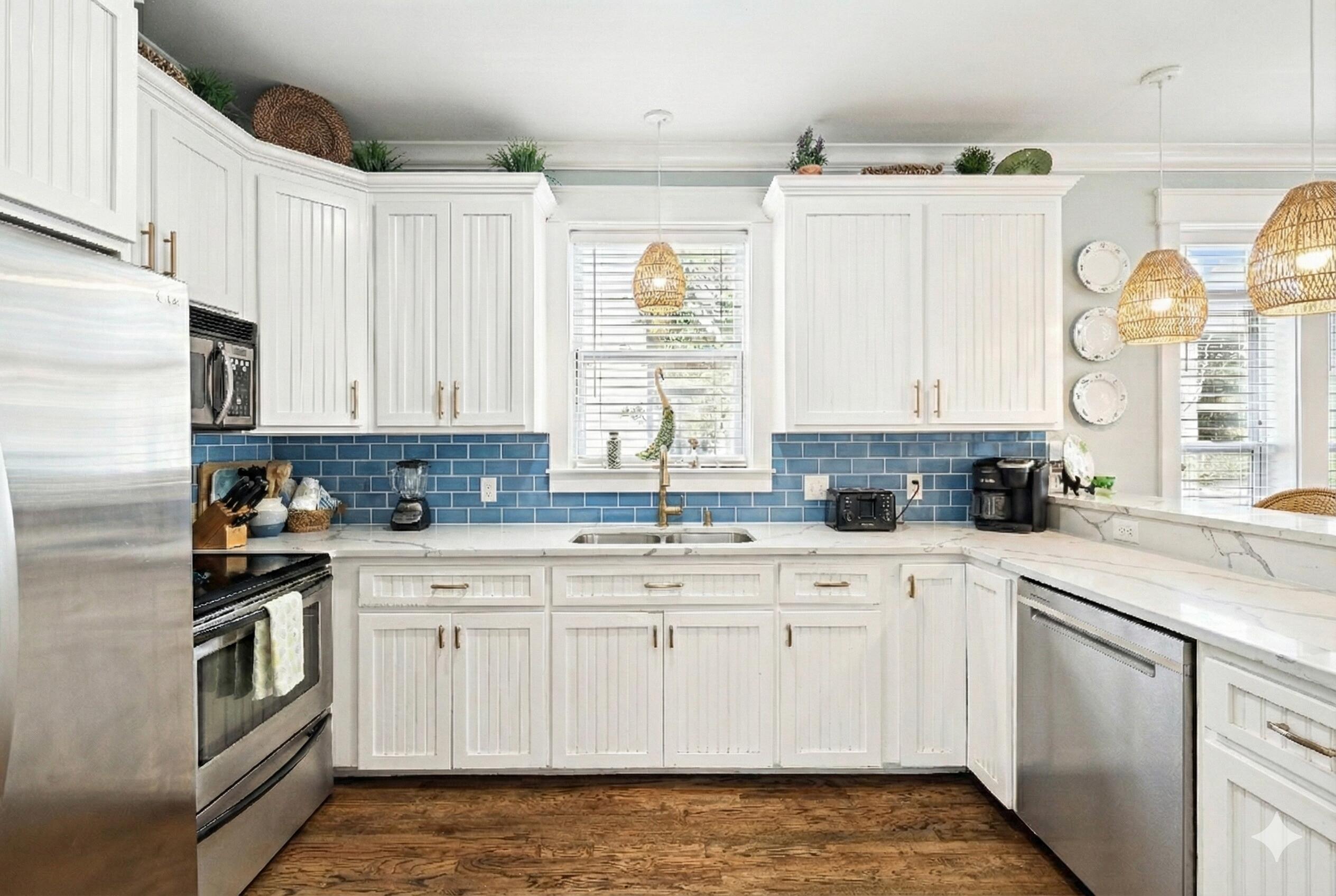 An inviting coastal retreat, this 4-bedroom, 4-bathroom home spans 2,420 square feet and offers a bright, open floor plan ideal for gatherings. With two spacious primary suites, the layout provides exceptional privacy for extended family or visiting friends, making it a standout choice for second-home living or a strong rental opportunity. The main living level flows seamlessly from the kitchen to the dining and living areas, creating a welcoming space for relaxed conversation after a day at the beach. Each bedroom is generously sized, and the home has been thoughtfully maintained, offering comfort and ease from the moment you arrive. While the home reflects years of care and enjoyment, it also presents a wonderful opportunity for a buyer to personalize and update it to today's coastal style. As the least expensive home currently available in Seacrest Beach, it offers remarkable value in one of 30A's most amenity-rich communities.