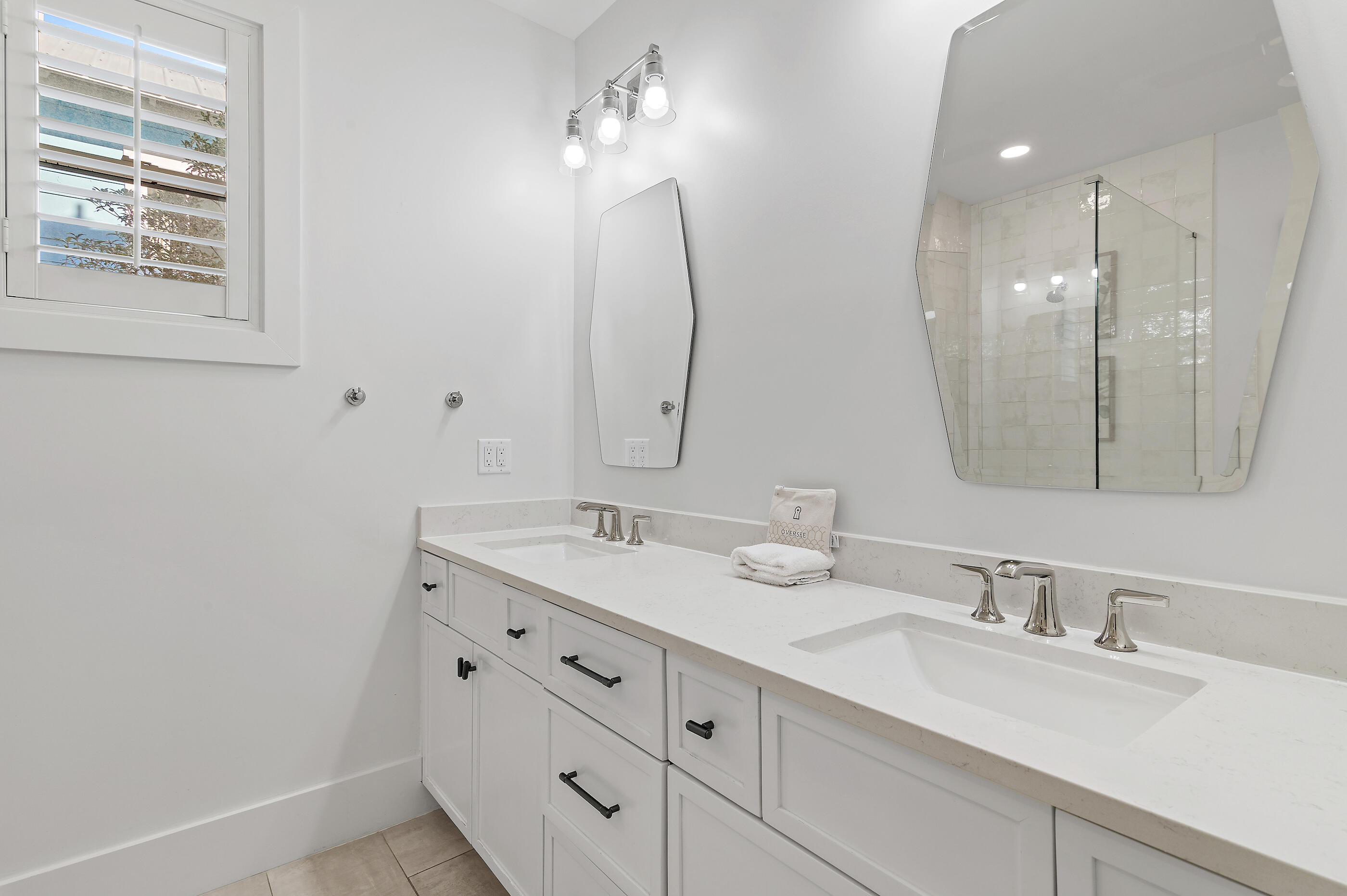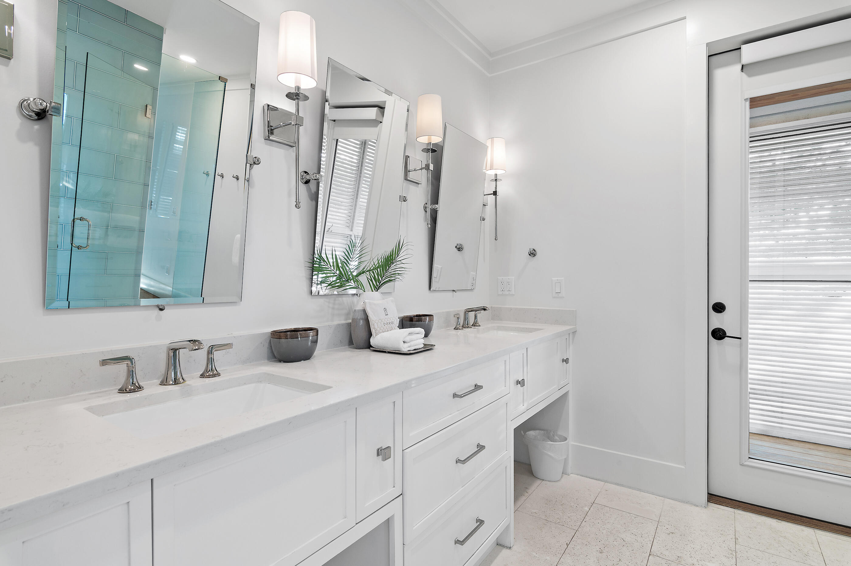 Beautiful turn key and well maintained home .5 miles from the Blue Mountain public beach park. Completely renovated in 2022 down to the studs, this home exemplifies a fresh contemporary, yet elegant lifestyle. Balancing warmth, sophistication, and comfort it's the ultimate luxury 30A retreat. Offering four bedrooms to include two primary suites, one with its own private exterior shower and a private balcony. The bunk room offers four queen beds sleeping eight comfortably. Outdoor living is one of this property's dominate features, with a large covered cabana w/ grilling, living & dining area, a large heated pool w/ waterfall, and all enclosed by privacy fencing. Great income numbers w/ heavy prime time owner usage. (2024 did $143K & 2025 has done $101k YTD, with $21K booked for 2026. ) This home was masterfully renovated by Graham Builders in 2022 with attention to detail. Offering luxury upgrades throughout to include: hardwood and custom tile floors, plantation shutters, paneled vaulted ceiling in living room, ship lap walls, custom louvered stair detail, upgraded stainless kitchen appliances with chef grade six burner gas range, custom cabinetry, Ecobee thermostats, and Sonos music system. Additional items of interest include two primary suites on each floor, secondary entry storage, large exterior storage, two exterior showers, one to shower off near the pool and another off the upstairs primary suite, private and enclosed by custom louvered wood work. This homes sits on .23 landscaped acres with a irrigation system and lawn pump. The large heated pool has a new pool heater and includes a sunbathing shelve and a lovely waterfall feature. The large custom cabana offers a large cooking and prep area with a gas grill, a dining bar, and sitting area with a newly installed TV to catch the games, or entertain the kiddos while relaxing by the pool. There is a additional covered patio off the back of the home as well, perfect for a few hammocks. Lastly this home offers a paver driveway with parking for four, plus two additional on street parking areas, a bike and golf cart parking area, and a golf cart charging receptacle.