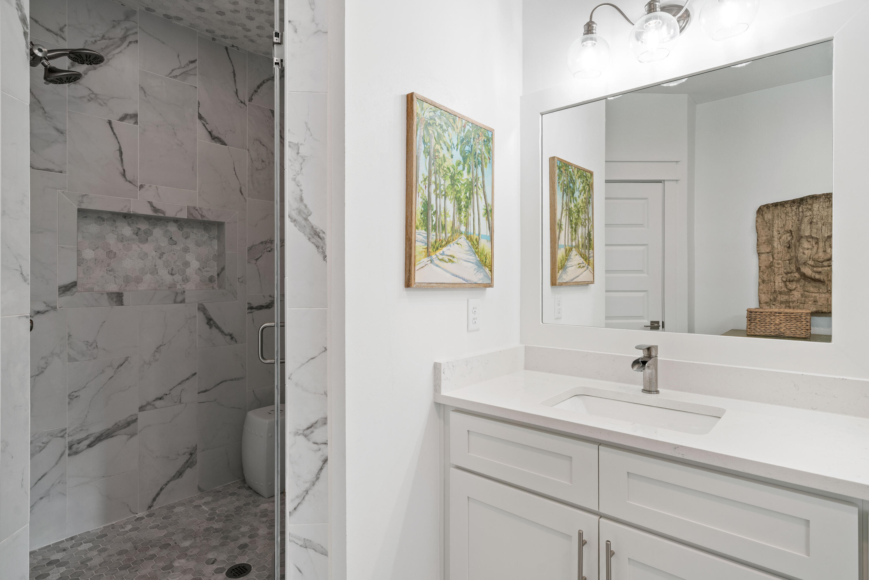 Private Heated Pool & Vacation Rental Capable! Stunning Coastal Beach home located on 30a East just one block back from a large Public Beach Access with 700 ft of beach frontage on the Gulf! This Professionally Decorated home features 5 generously sized Bedrooms, all with En Suite Baths. Two of the bedrooms are located on the 1st floor along with the Open Concept Living, Kitchen & Dining Area. The 2nd floor is comprised of 3 more bedrooms & a spacious sitting area with a Wet Bar & Beverage Fridge. Features of the home include 2 Master Suites, Quartz Countertops, Stainless Steel appliances, Recessed & Designer Lighting, Steam Shower, Shiplap Walls in the Common Area, Shiplap Feature Walls in the Bedrooms, Summer Kitchen, Covered Porches & a Covered Parking area that allows for a Golf Cart.