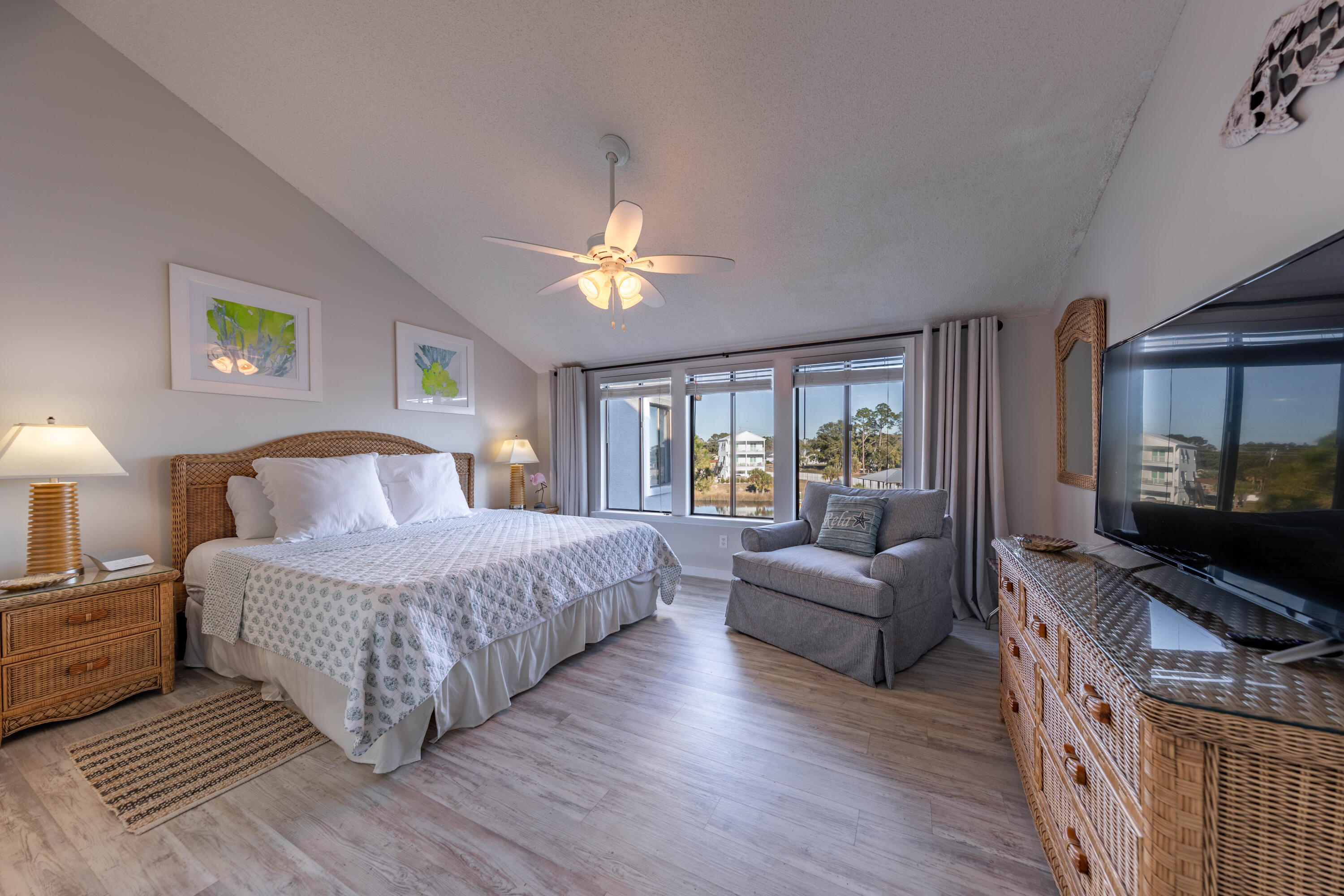 Exceptional Waterfront Opportunity! This beautifully updated, fully furnished 3-bedroom, 2-bath condo is a perfect, move-in-ready coastal haven. Enjoy private boat dock access with slips and trailer parking, along with breathtaking views of the Grand Lagoon. Located moments from the beach, dining, and entertainment, this unit is approved for short-term rentals and features smart home technology for easy self-management. The gated community offers resort amenities like a pool, sauna, and tennis courts. Seller offering $1000 towards buyer closing costs. NEW PHOTOS COMING SOON