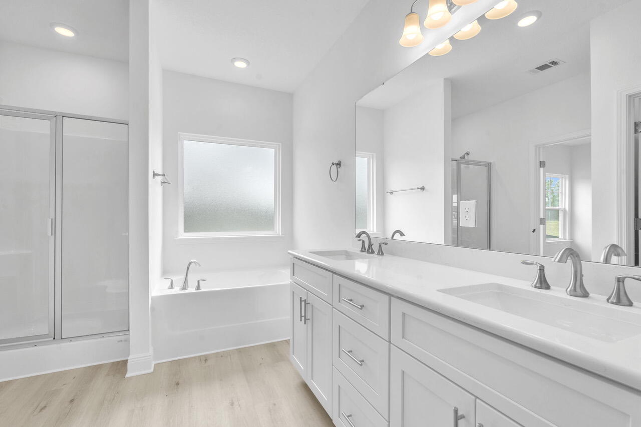 This executive-level 2-story home with 2 owner's suites, oversized bedrooms, and tons of closets/storage comes complete with 2-story foyer, LVP flooring throughout including stairs, 9' ceilings throughout, 8' entry doors, & Quartz countertops in kitchen and baths. Spacious owner's suite on 1st floor (13'x18.6'), 2nd owner's suite upstairs, 3 add'l. oversized bedrooms, Tray ceiling in first floor owner's suite with a large walk in closet, separate tub and shower. Fully sodded yard, w/ complete sprinkler system Garage opener, soft-close cabinet doors+drawers. Community pool is under construction. Home is in finishing stages of construction and is a must-see! *Some photos are of a similar home & some photos are virtually staged to illustrate the property's potential.