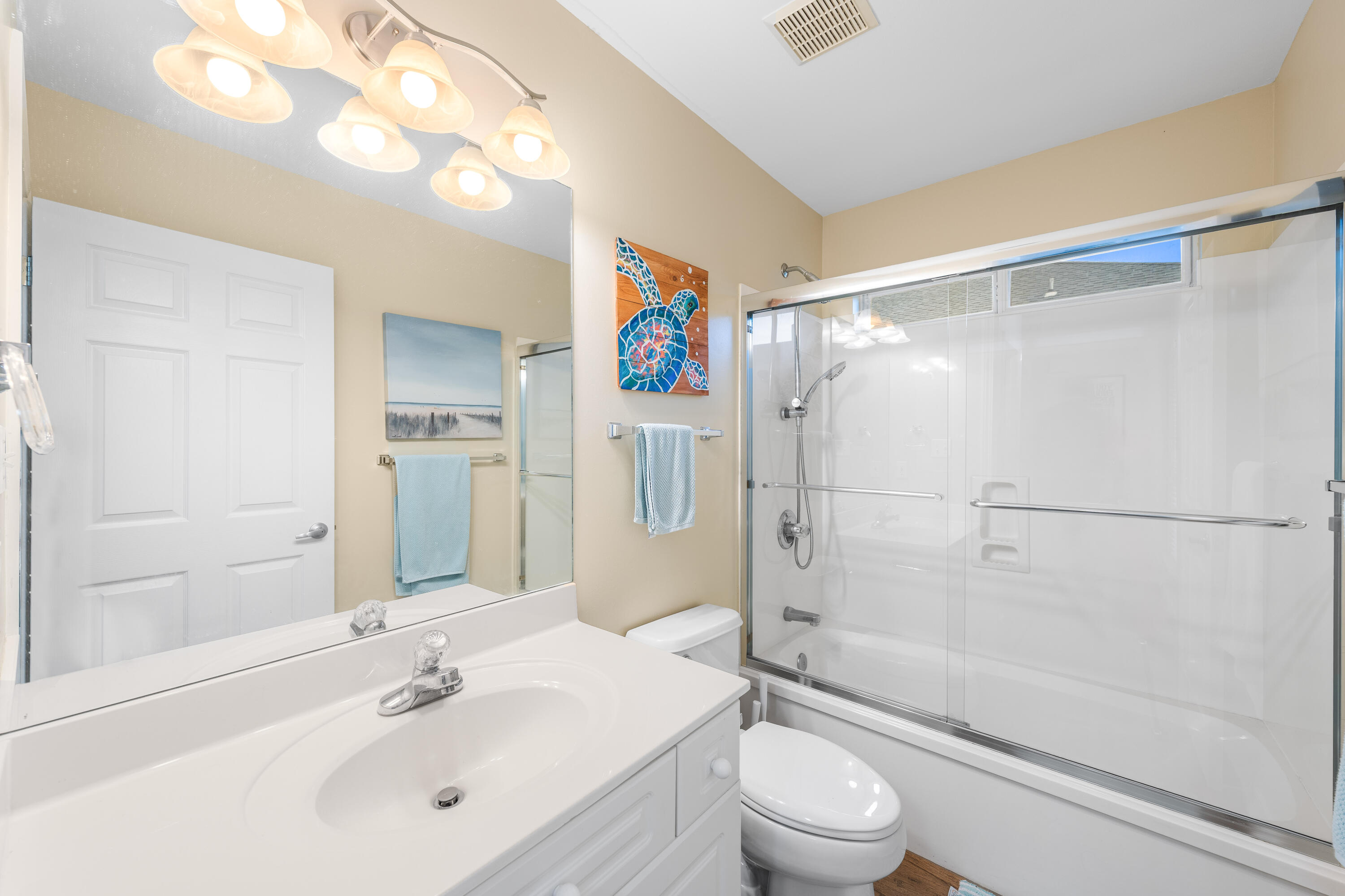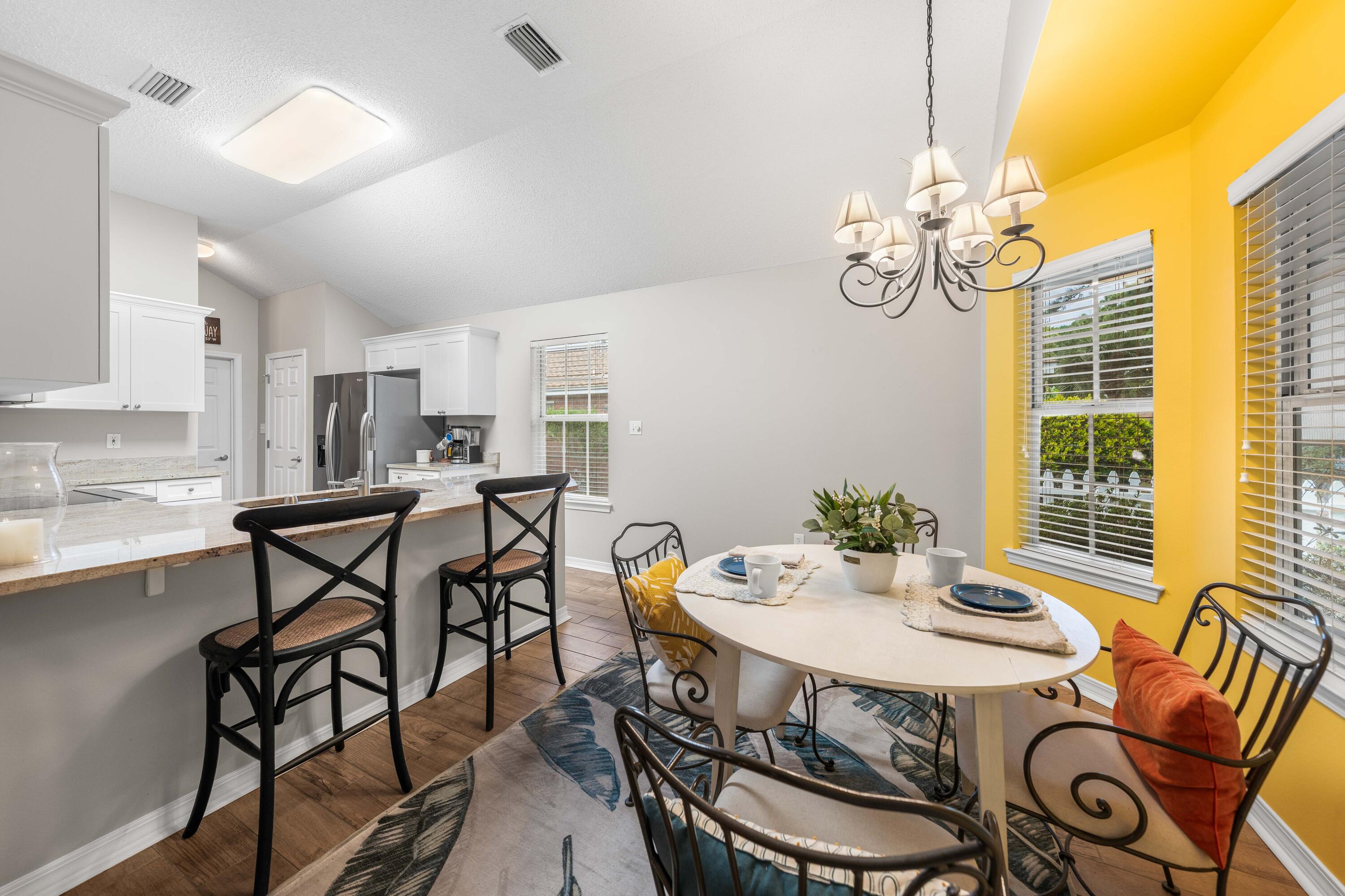 Convenient to great shopping, beach, restaurants and entertainment, yet so private and peaceful. This 3 bedroom home checks all the boxes if you're looking for a great buy! The owner especially enjoys the shaded screened in patio and back yard with a white fence, but this neighborhood also offers a nearby pool, tennis courts, playground and even a fishing dock directly on the bay. What a peaceful place to walk or drive to see sunsets, fish or just watch boats go by. Inside you will find not only a formal dining area, but also an eat-in kitchen area, both attached to to living room for a great entertaining space. The granite counter tops in the kitchen are beautiful and there is a new oven included as well as a side by side refrigerator, dishwasher, microwave, and a washer and dryer!