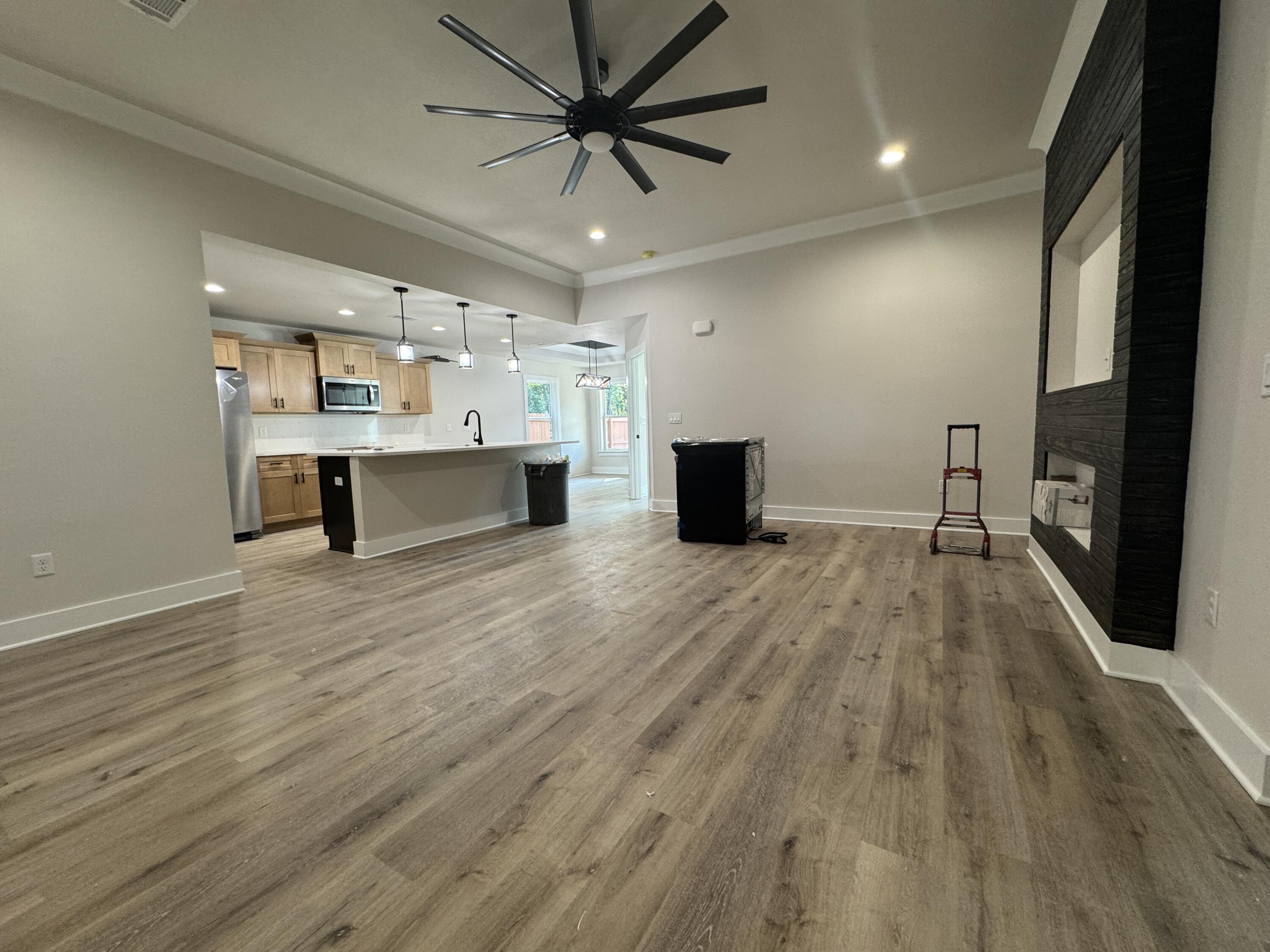 | INTERIOR | Ceiling Tray/Cofferd,Fireplace,Floor Vinyl,Kitchen Island,Lighting Recessed,Pantry,Pull Down Stairs,Split Bedroom |