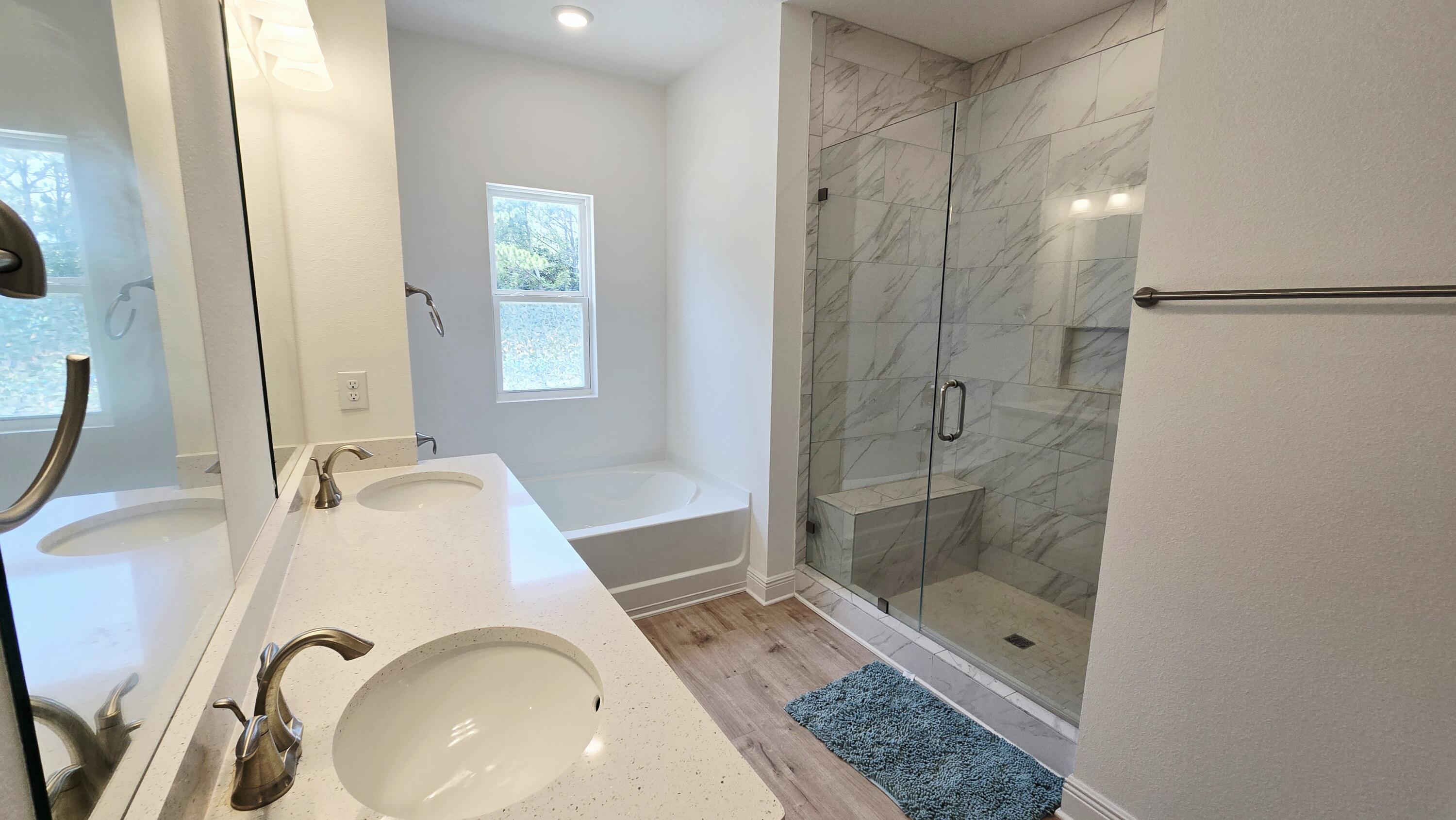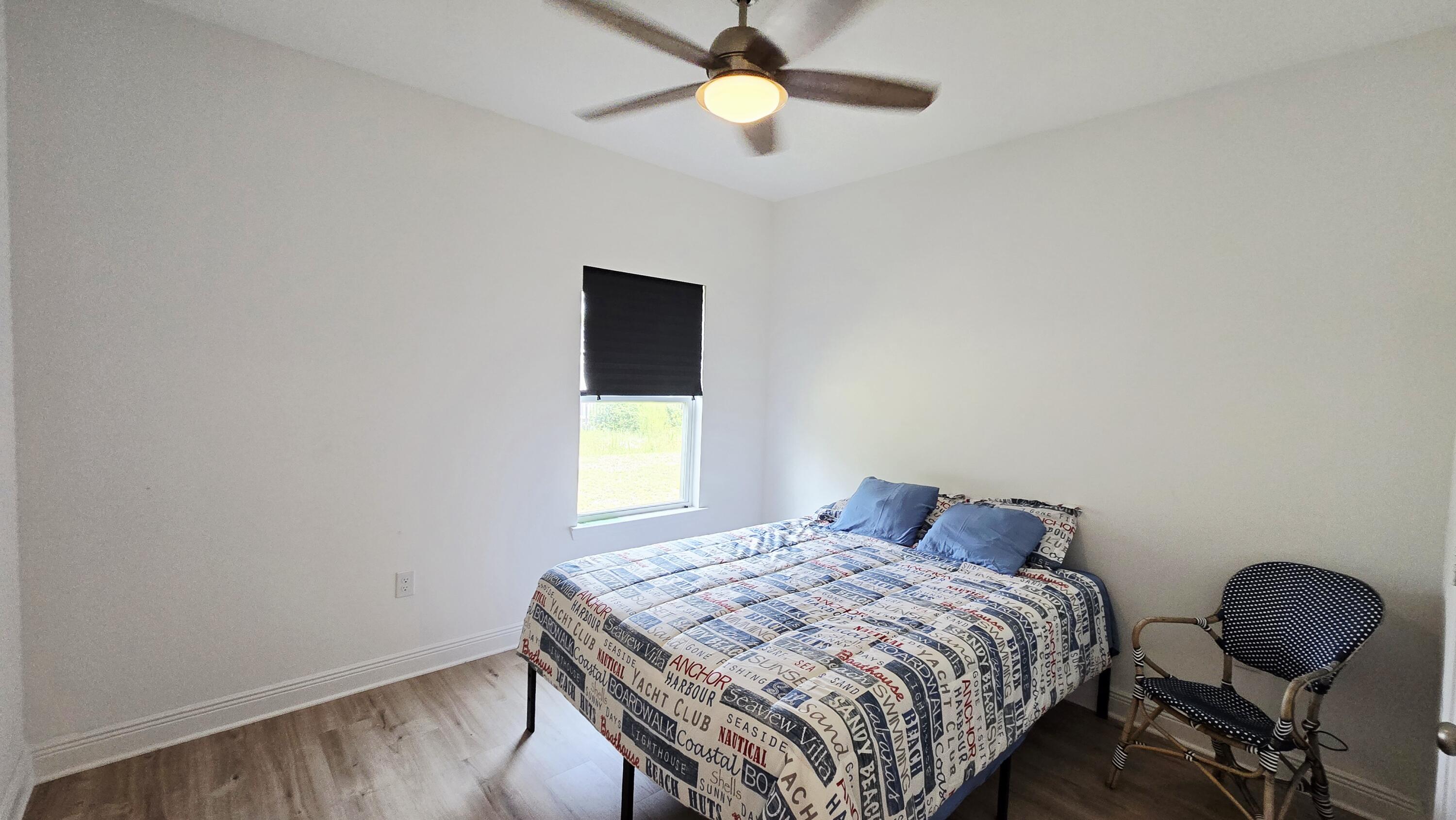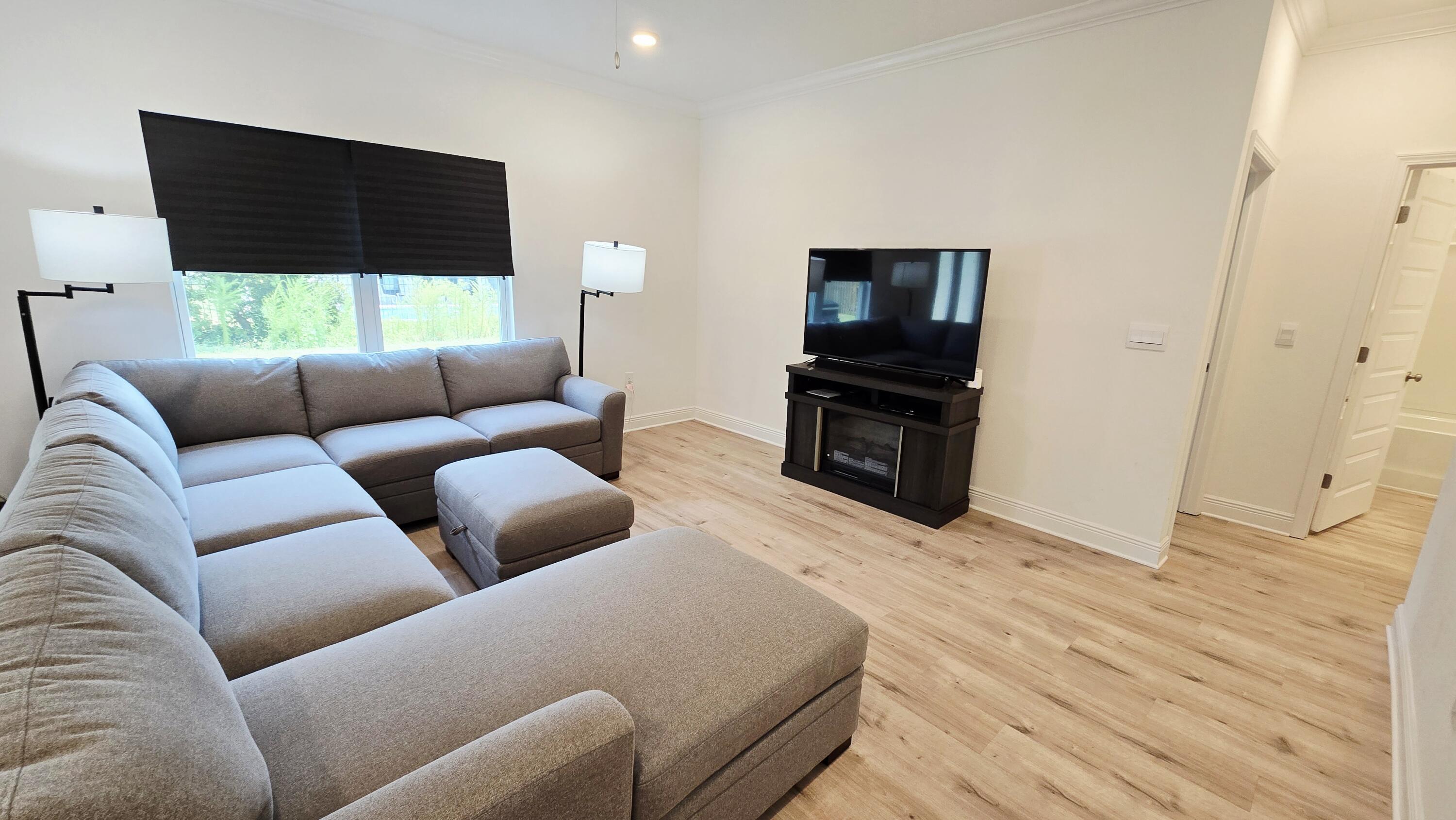 This beautifully designed 5-BEDROOM, 3-BATH HOME in Panama City Beach was built in 2023 and offers 2,556 SQ. FT. of MODERN COASTAL LIVING less than a mile from the Gulf. The thoughtful floor plan includes a CONVENIENT FIRST-FLOOR BEDROOM, ideal for guests or multi-generational living, and a VERSATILE BONUS LOFT UPSTAIRS that can serve as a home office, media room, or play space. Inside, you'll find LUXURY VINYL PLANK FLOORING, QUARTZ COUNTERTOPS, and IVORY SHAKER CABINETRY throughout, paired with 9-FOOT CEILINGS downstairs for a bright, open feel. Enjoy evenings on the COVERED BACK PORCH, while Hardie siding and a full irrigation system keep maintenance simple. A TWO-CAR GARAGE, spacious pantry, and MODERN TILE SHOWER add everyday comfort.