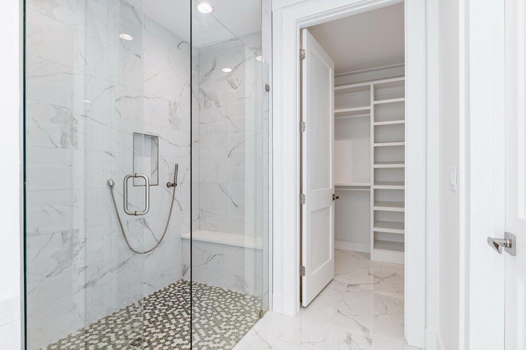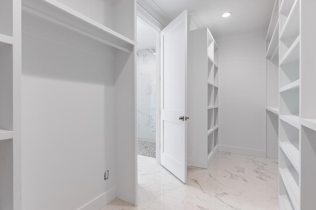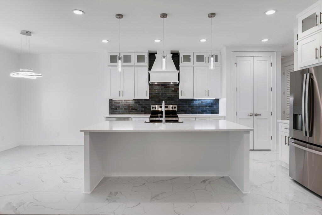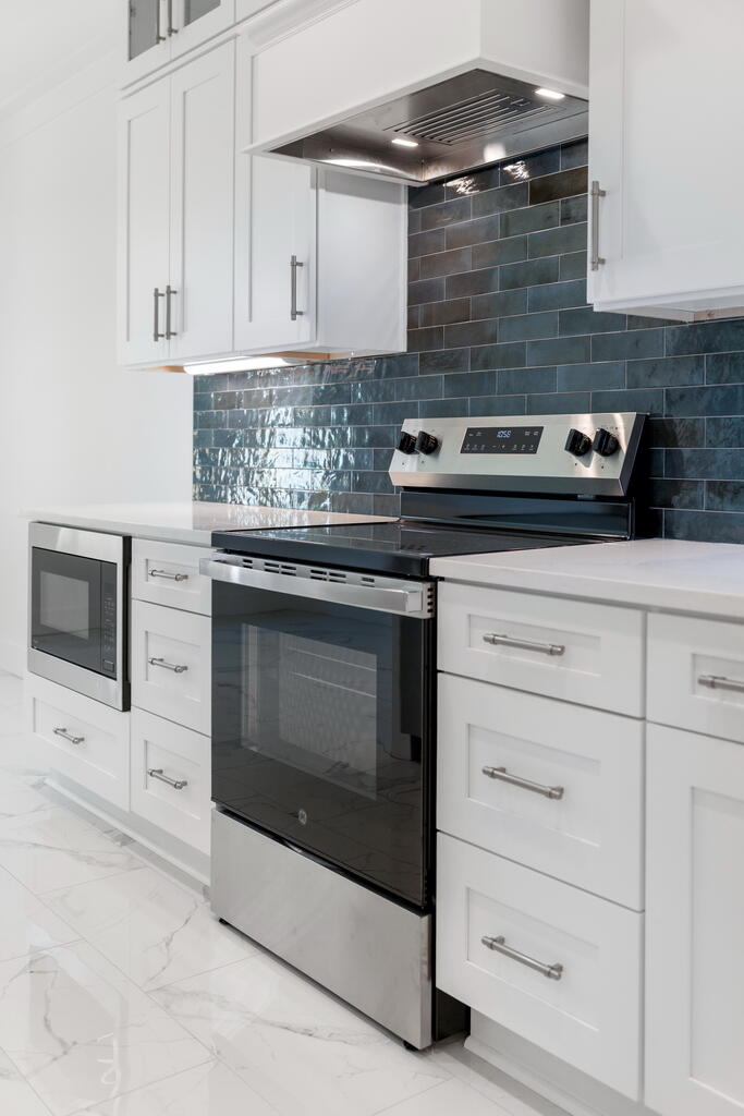 The primary suite offers a true retreat with a spacious custom walk-in closet, a zero-entry tiled shower with seamless glass, a rain head and handheld sprayer, and a freestanding soaking tub. The kitchen is equally impressive, featuring GE appliances, a vent hood, soft-close shaker cabinetry, double-stacked upper cabinets, quartz countertops, a large island, a seamless backsplash with hidden outlets, and generous storage throughout. Outdoor living is just as inviting, with lush Zoysia sod supported by a dedicated-well irrigation system, mature palms and landscape plantings, and plenty of room for kids, pets, gardening, or relaxed alfresco gatherings.