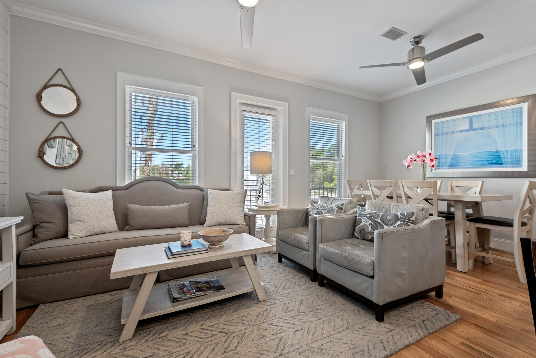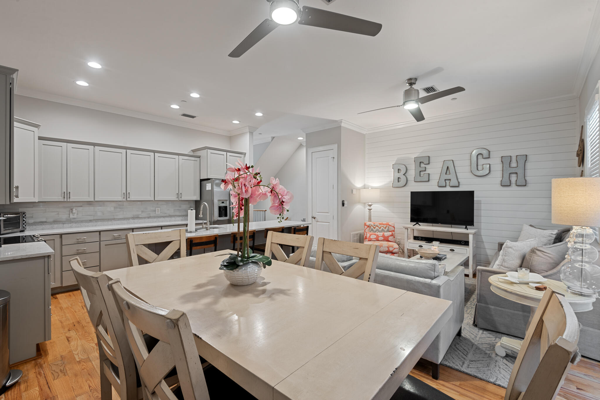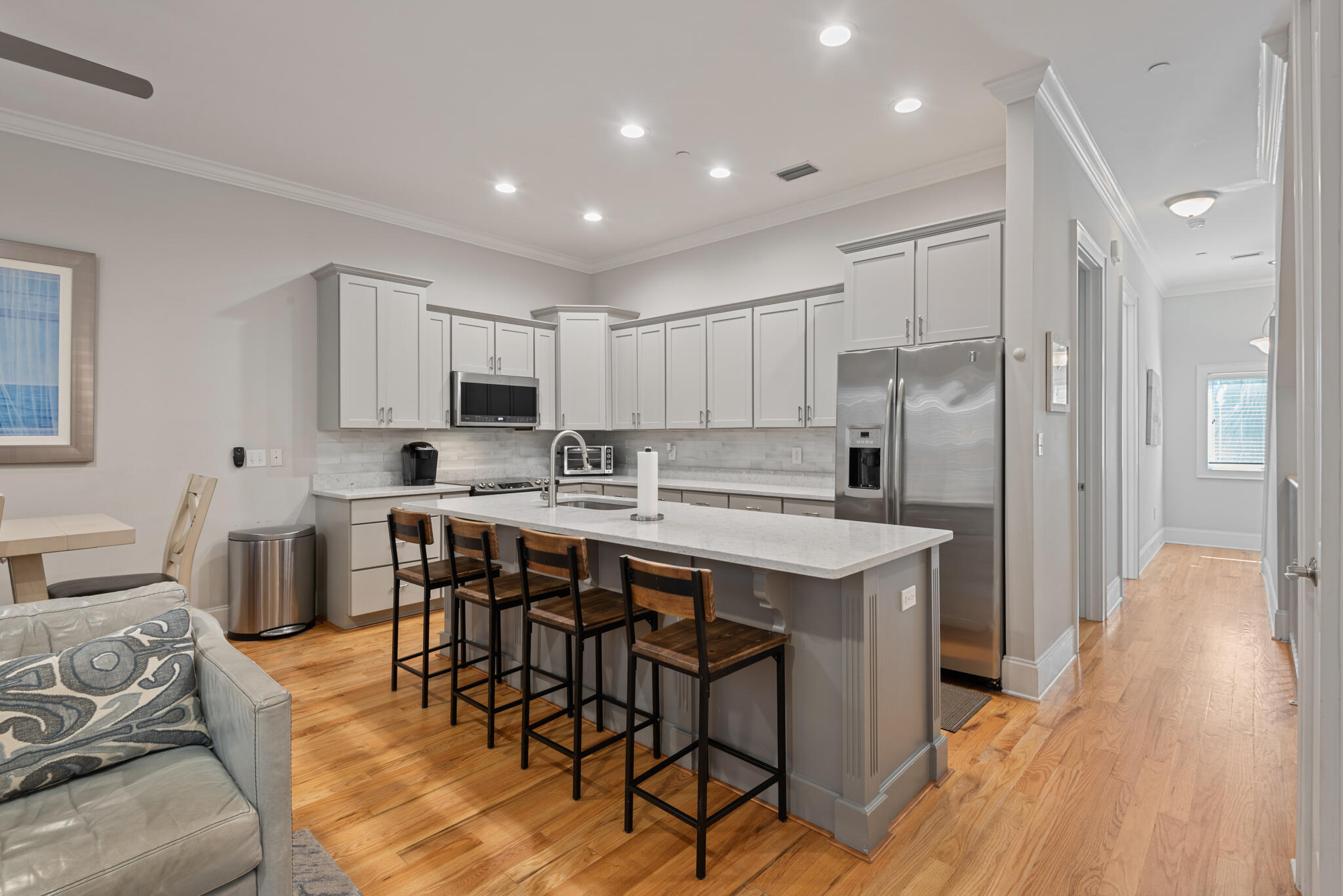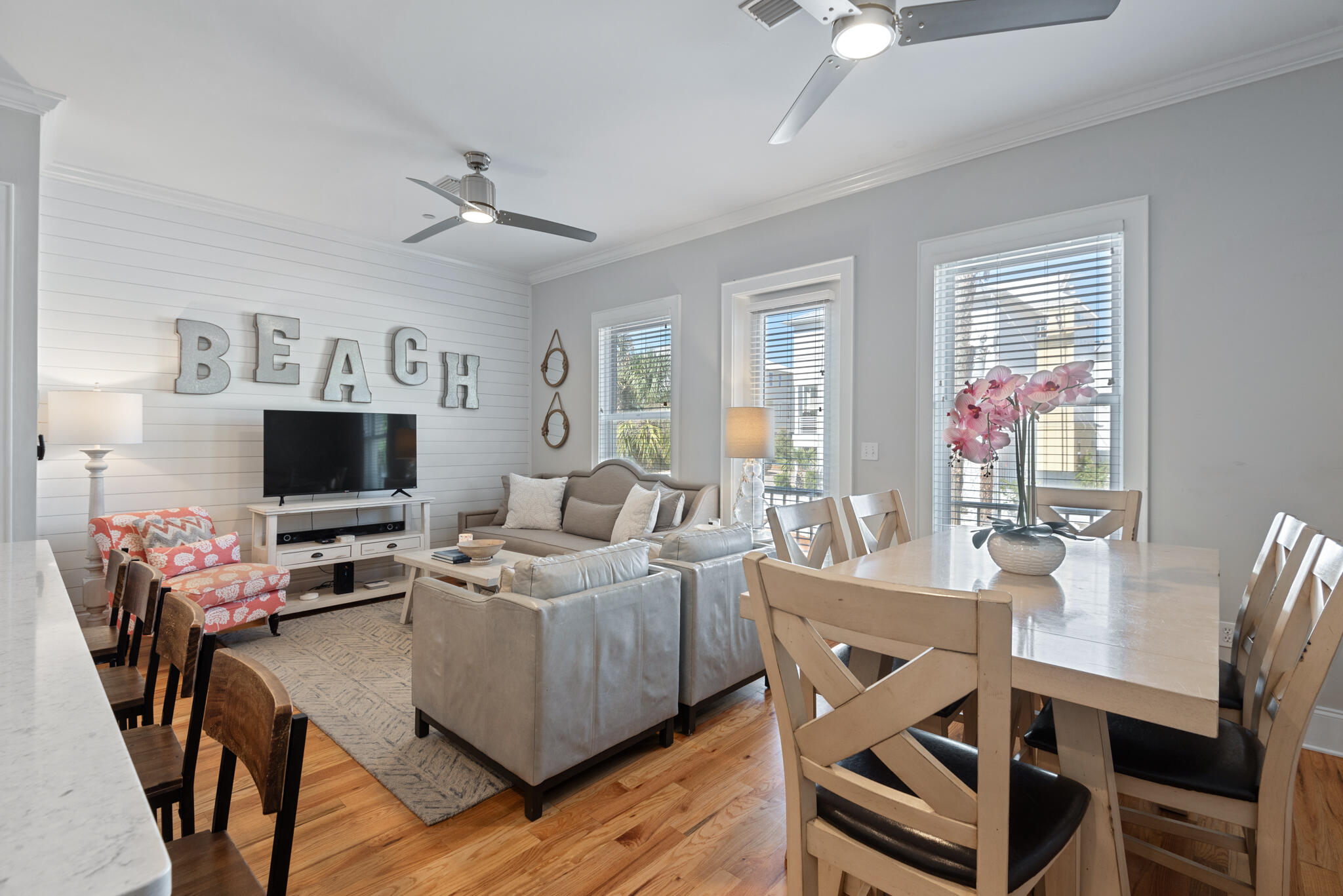 Discovery a true 30A sanctuary at this stunning 4BR/4BA townhome in gated Coastal Dunes with a perfect blend of luxury, convenience, and gulf views. Just steps away from the Ed Walline Beach access, 30A bike path, Shunk Gulley restaurant, and Gulf Place Town Center, this townhome is ideally located for those seeking a laid-back beach lifestyle or a savvy rental investment.Step inside to find a thoughtfully designed, contemporary interior featuring tile flooring on the first floor, hardwoods on the second and third floors, a shiplap accent wall, beautiful millwork, and tiled bathrooms. The bright and open kitchen is a chef's delight, complete with granite countertops, a large island, and stainless-steel appliances.