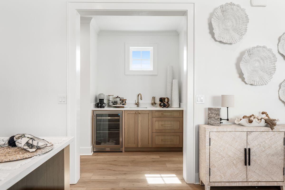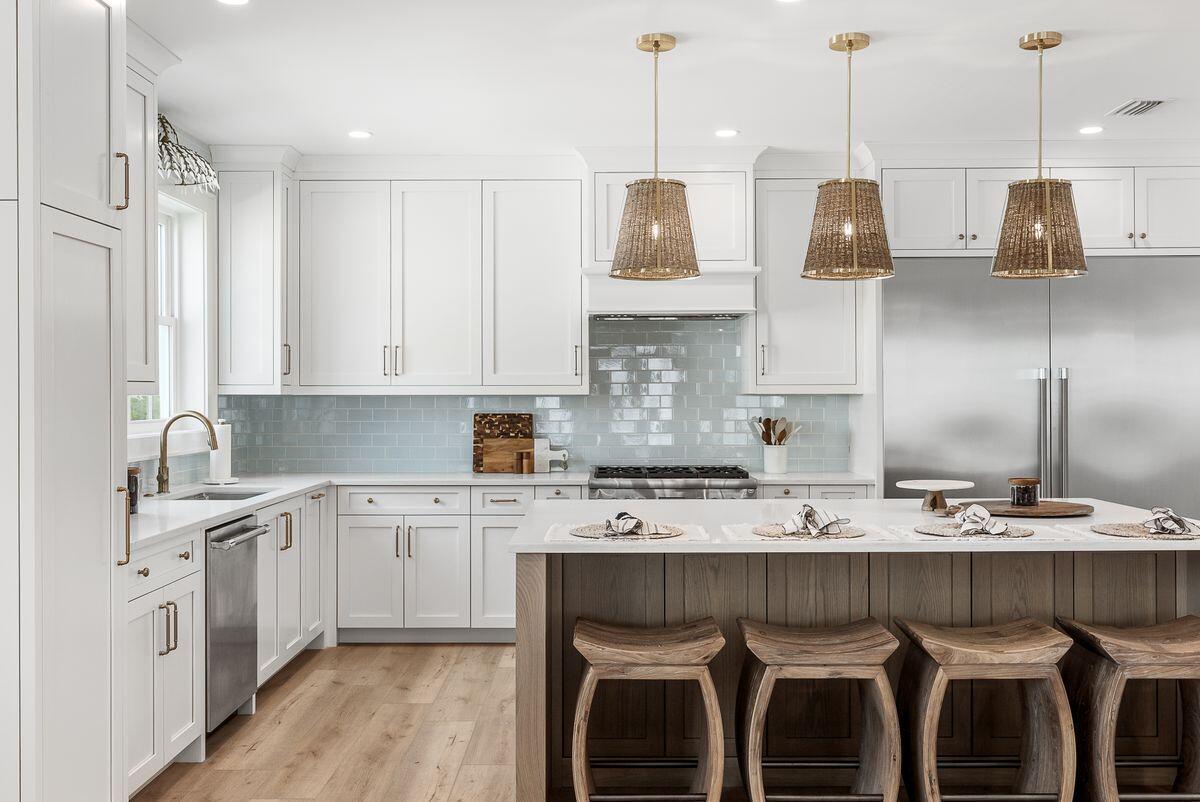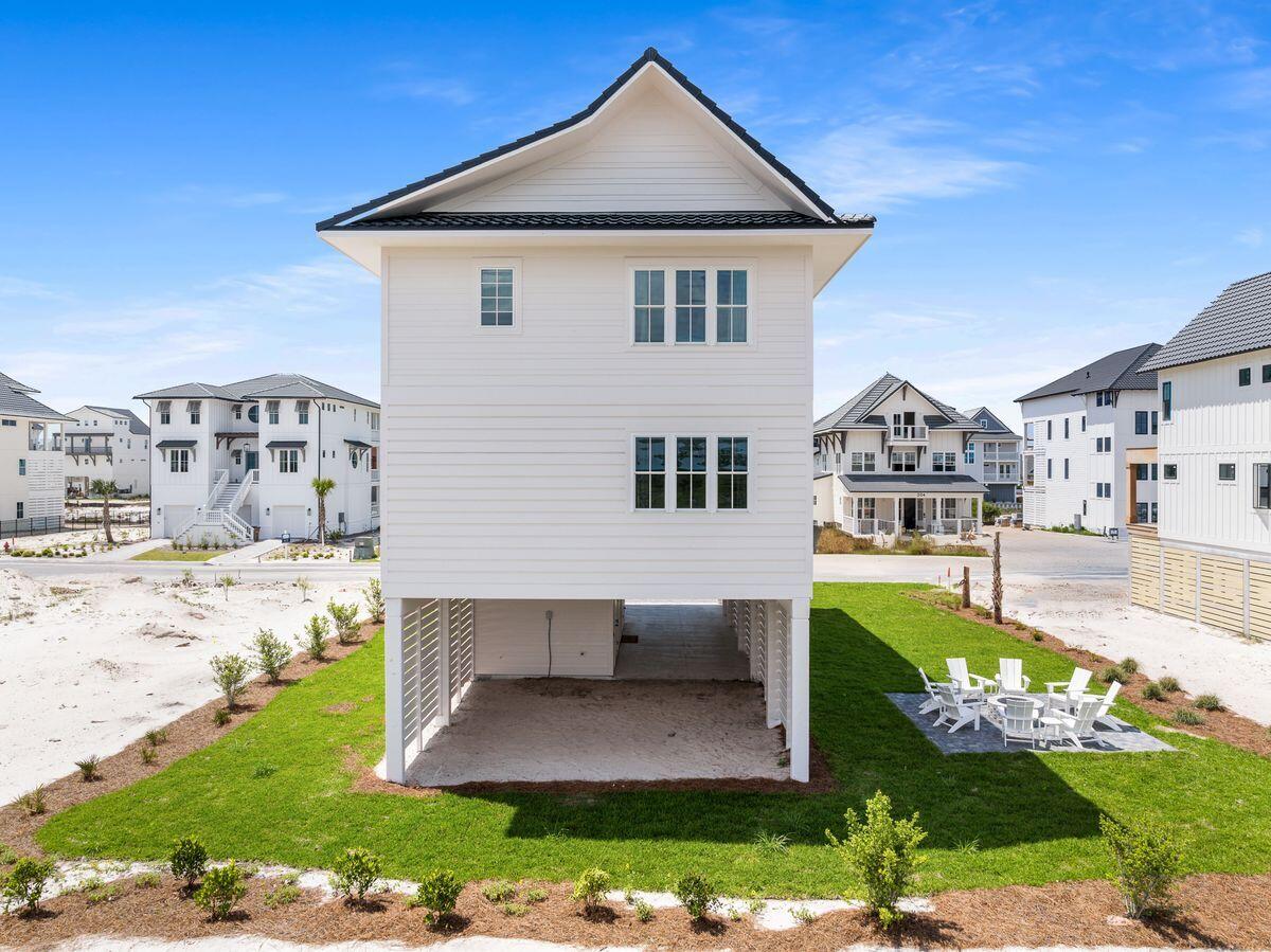 This thoughtfully crafted coastal haven rises just moments from the quiet shoreline, offering sunlit interiors, refined finishes, and outdoor spaces that turn evenings into memories. With multiple king suites, generous gathering areas, and breezy upper-level porches that catch soft gulf views, the home is designed to host large families and groups with comfort and style.A spacious fire pit anchors the backyard for starlit nights and relaxed conversation, while the chef-inspired kitchen, butler's pantry, and open living room set the stage for effortless entertaining. Across three beautifully planned levels, every detail invites unwinding, reconnecting, and savoring the slower rhythm of the coast. On the entry level, a welcoming foyer leads to ample under-house parking, ideal for guests arriving with beach gear or carts. The main living floor unfolds with an expansive gathering space, anchored by a polished kitchen with high-end appliances, a beverage cooler, a wet bar, and island seating for five. A dining area for 10 keeps everyone connected during meals, and a serene king suite completes this level.