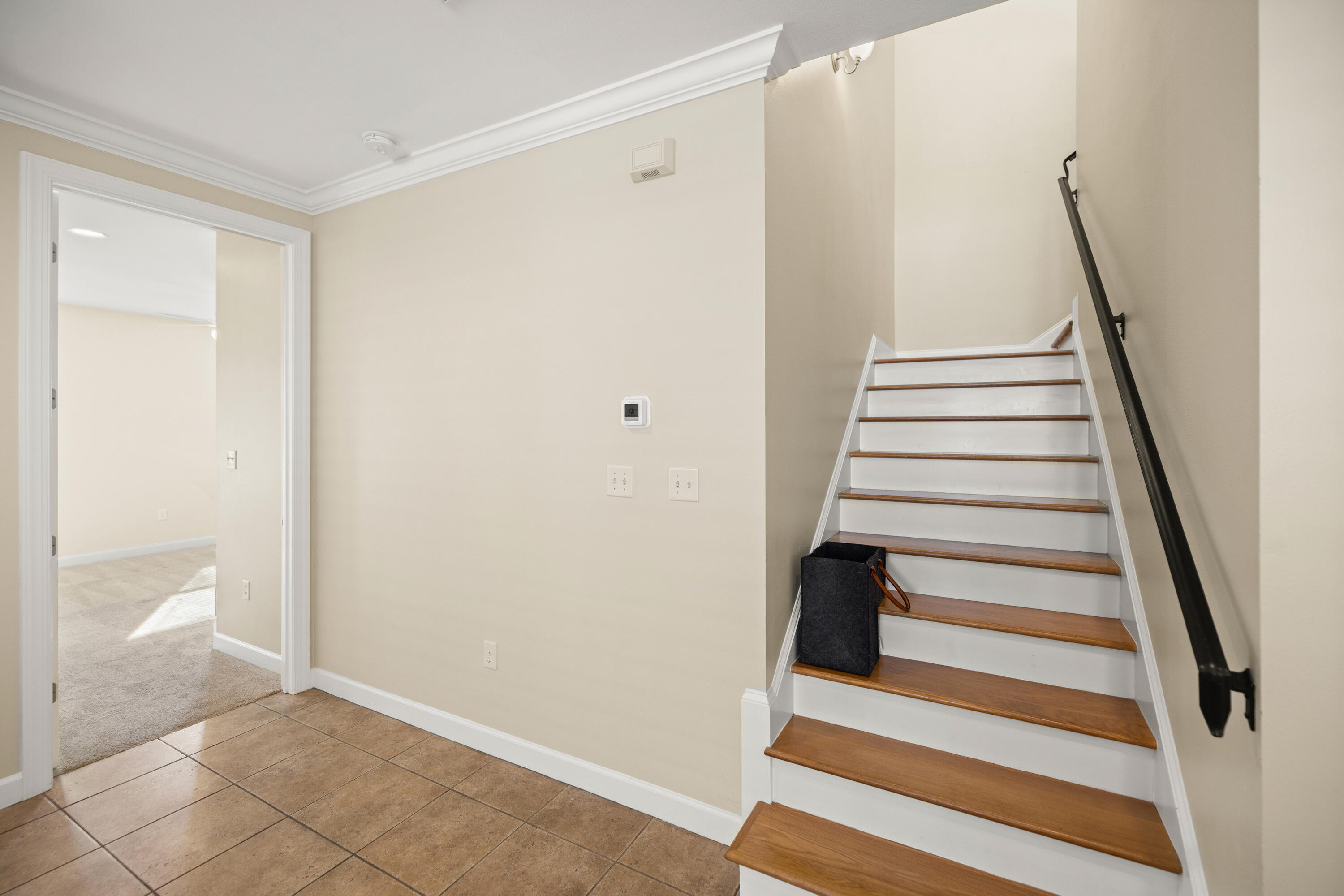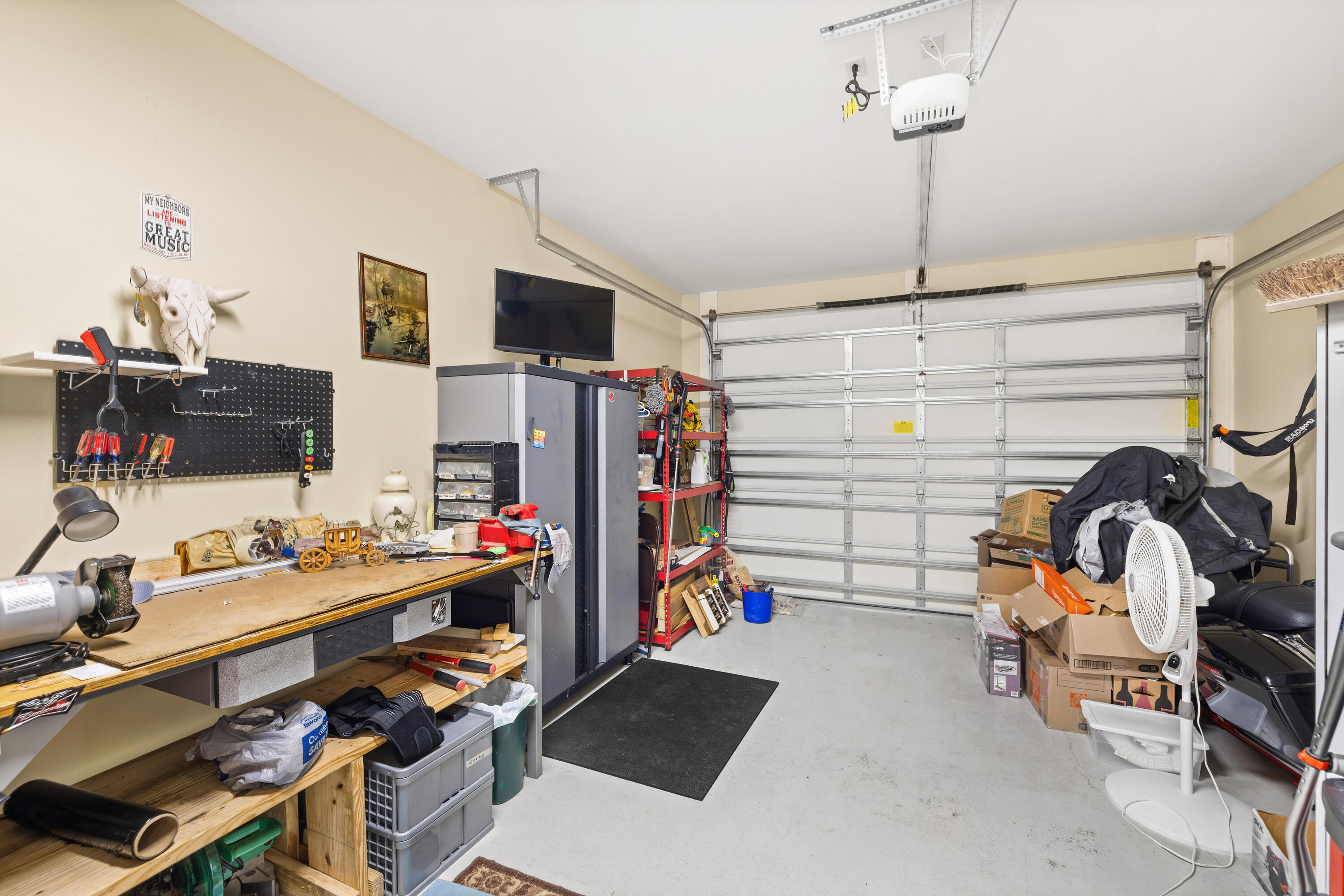 Upstairs, you will find two generously sized additional bedrooms with ample closet spaces and a full bathroom with ceramic tile flooring. This level also includes a small landing area that can serve as a cozy workspace, reading nook, or added storage area. An attached garage provides both parking and extra storage options. Tile flooring is featured in the main living areas, with carpet and ceiling fans in the bedrooms for comfort.