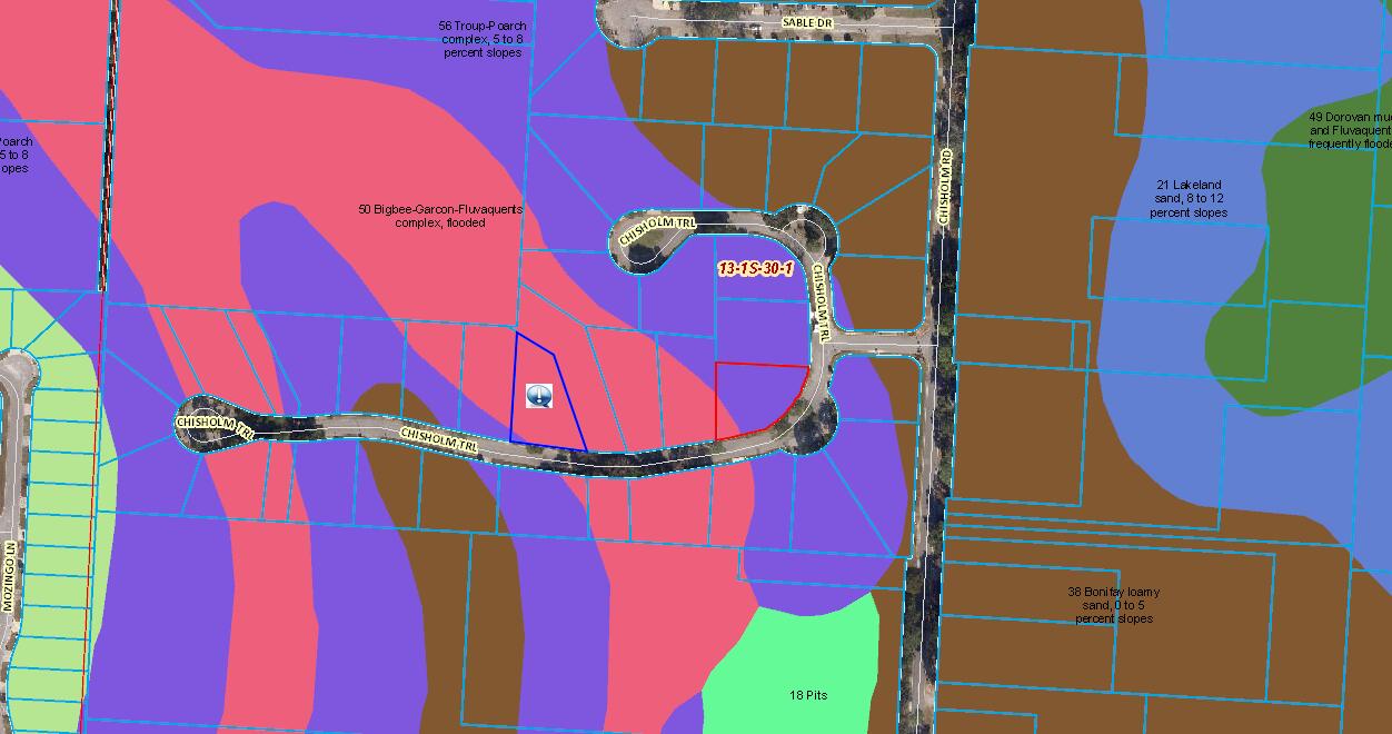 .2975 acre lot located in Chisholm Trail subdivision . Not in flood zone (x) Zoned HDMU . see photos for GIS pertinent information such as AREA wetland map, topo, soils, dimensions. SEPTIC is needed. Tap in fees due