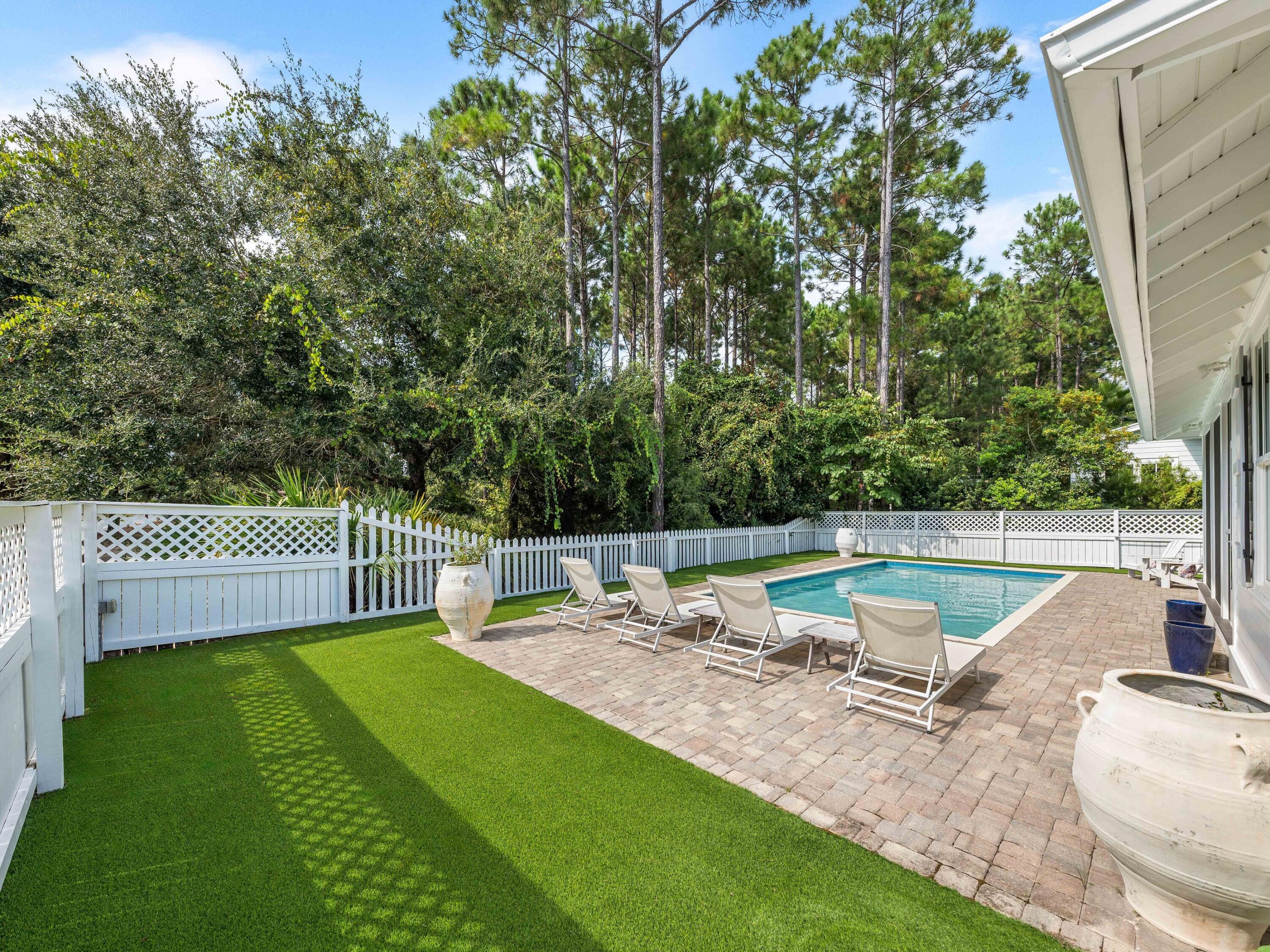 Discover classic coastal style at this immaculate 3-bedroom and 3-bath home positioned on a coveted corner location with a spacious 30 x 14 heated pool. Fronting a green space this home is a rarity in the community of Watersound Origins. A covered front porch welcomes you into open spaces with wood floors and a serene color palette. Abundant natural light shines through the multitude of windows. The spacious living room with custom fireplace and dining area both provide ample room to gather. The gourmet kitchen features quartz countertops, stainless steel appliances and additional custom cabinetry and counter space with a built-in wine fridge and trash compactor. Spend lazy afternoons on the screened porch fronting the backyard with spacious paver courtyard, heated pool and artificial turf. The oversized primary suite includes an ensuite with dual vanities, separate tub, shower and walk-in closet. Two additional guest bedrooms, two full baths and laundry complete the interior of the home. An attached two-car garage with extra storage makes it easy to store all the needs of the beachside lifestyle.